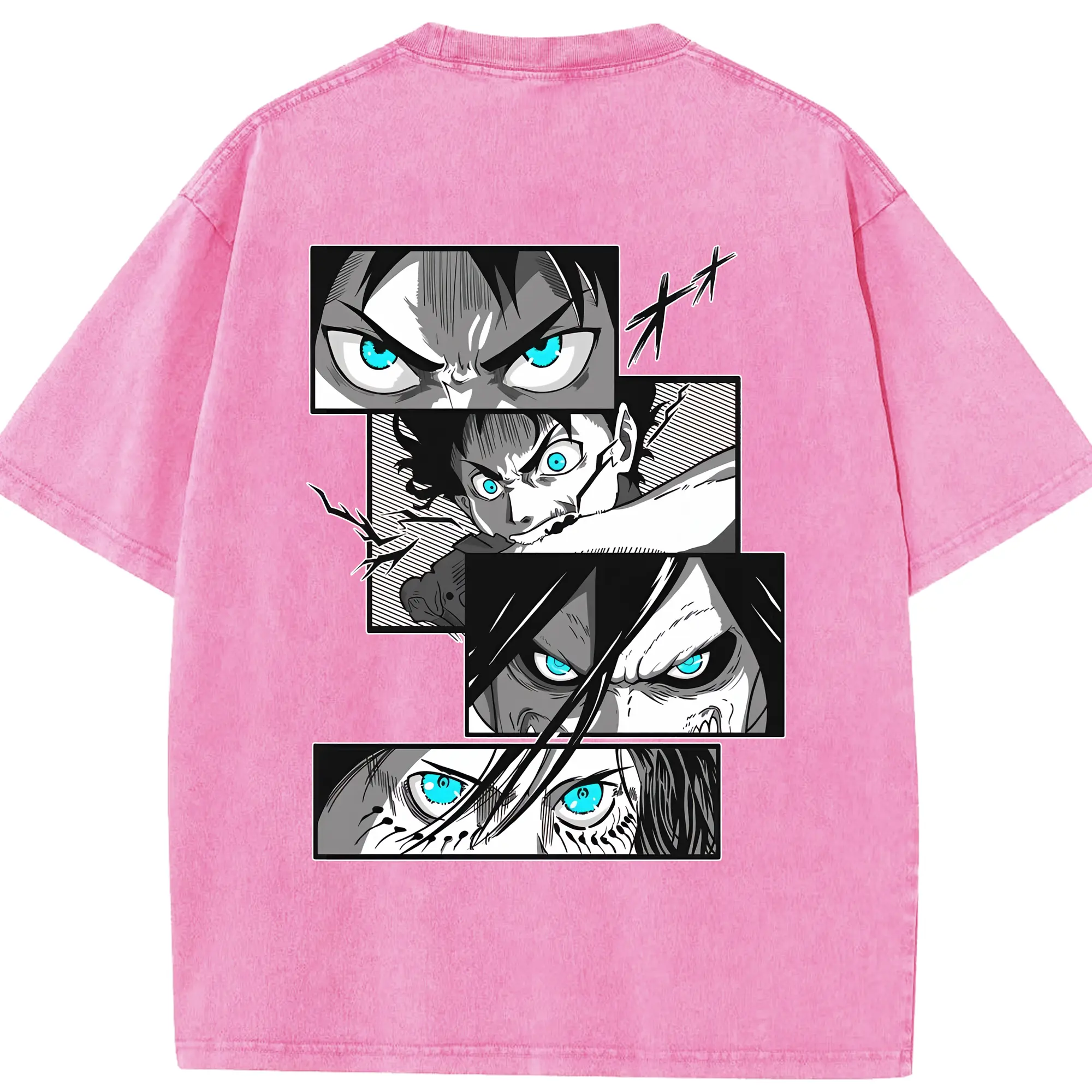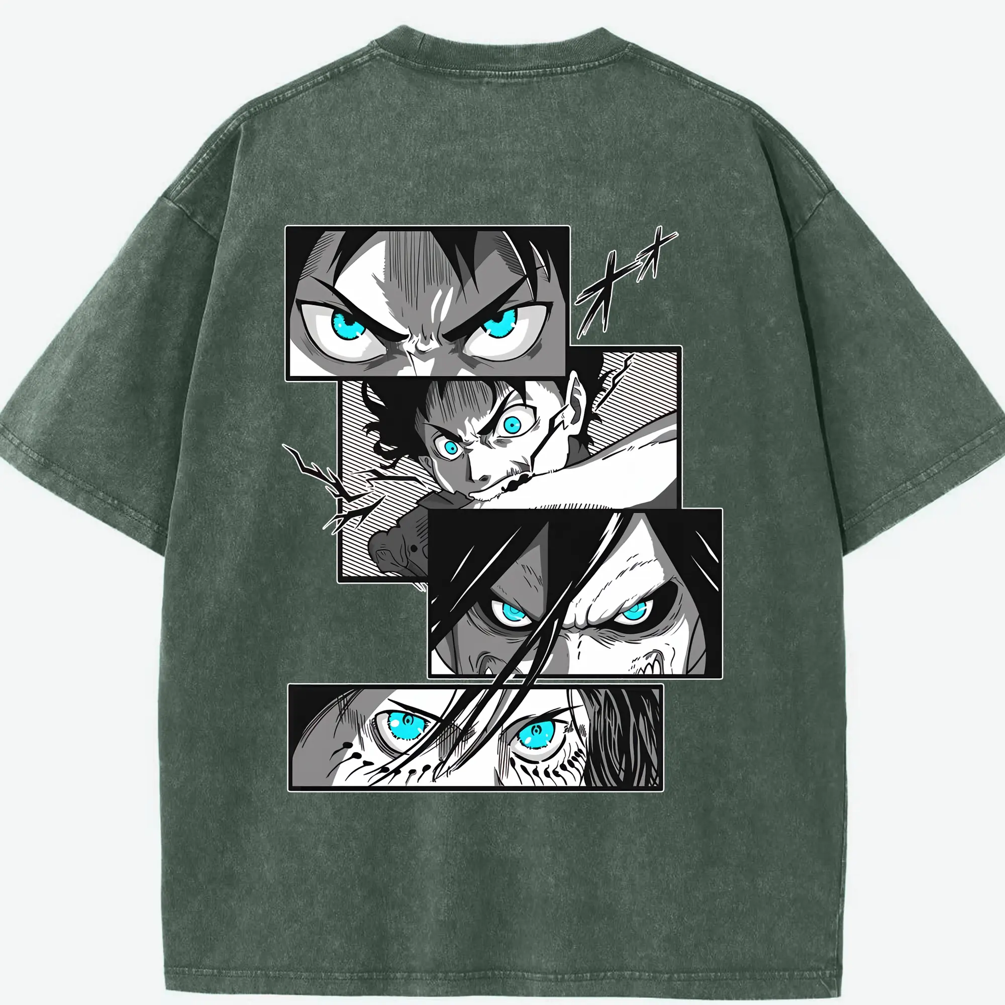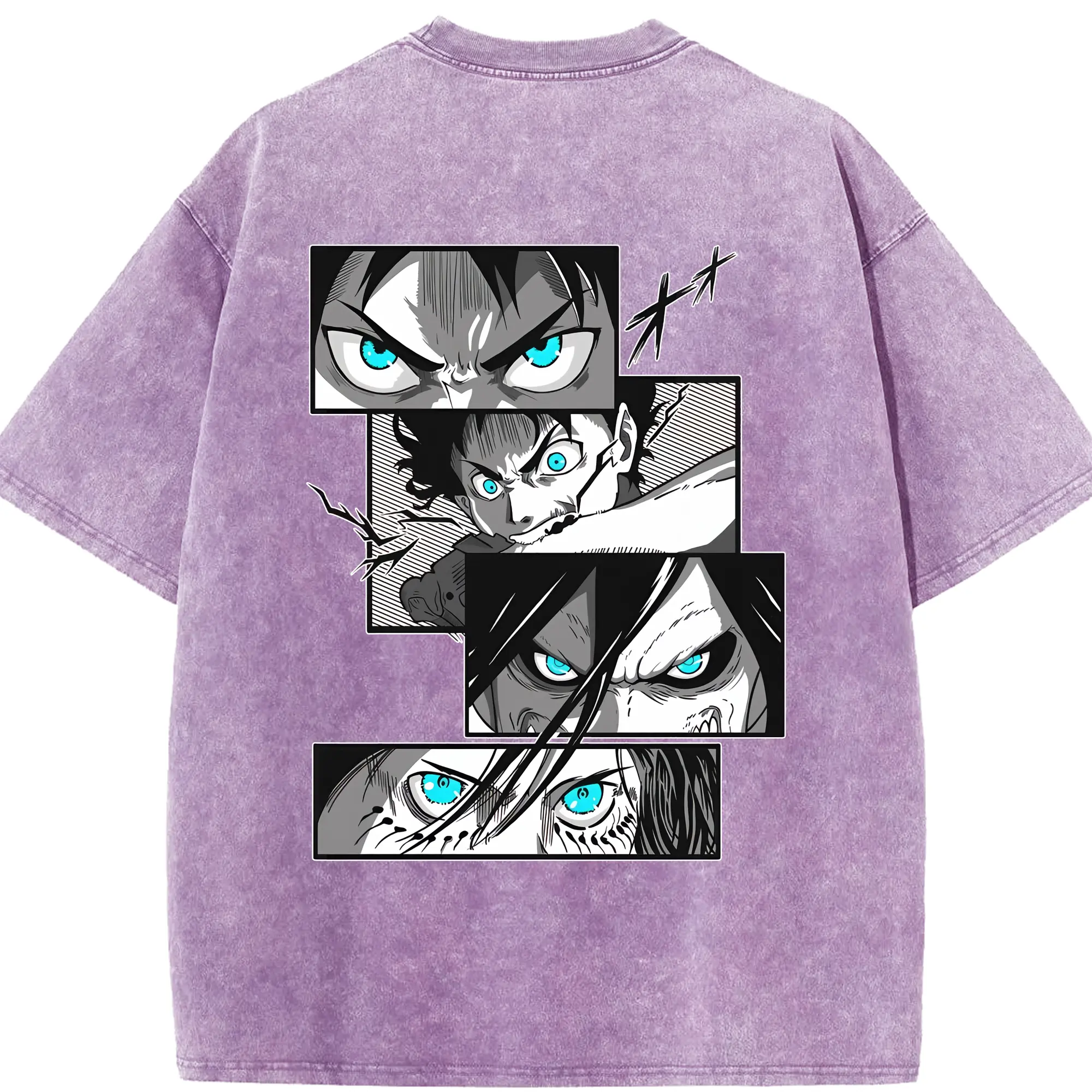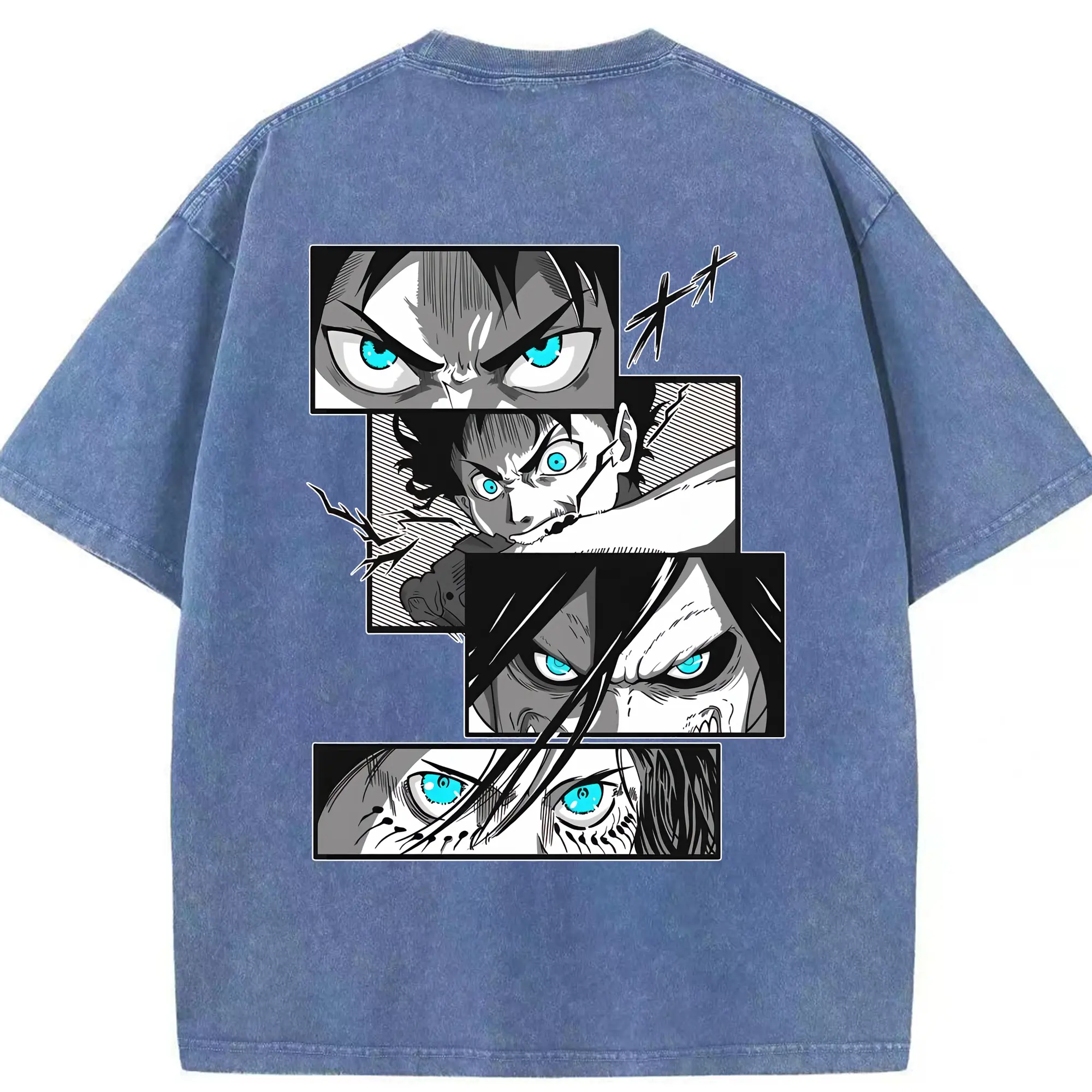 進撃の巨人 グッズ エレン・イェーガー - 綿100% ヴィンテージ風 半袖Tシャツ ・ フロントプリント ・ 柔らか肌触り ・ 通気性 快適 ・ スポーツ カジュアル 外出用