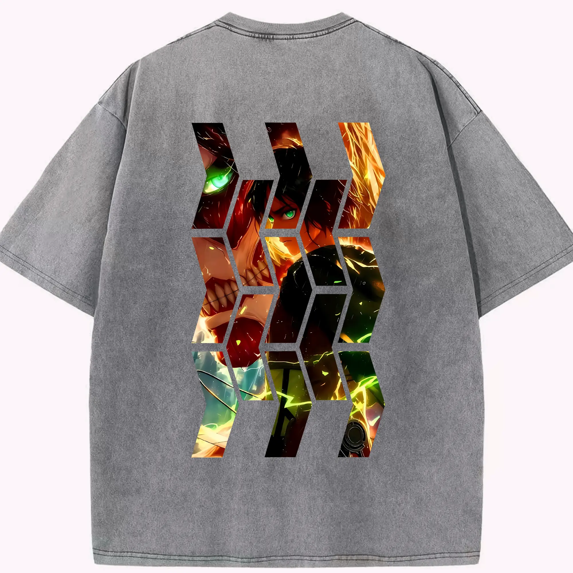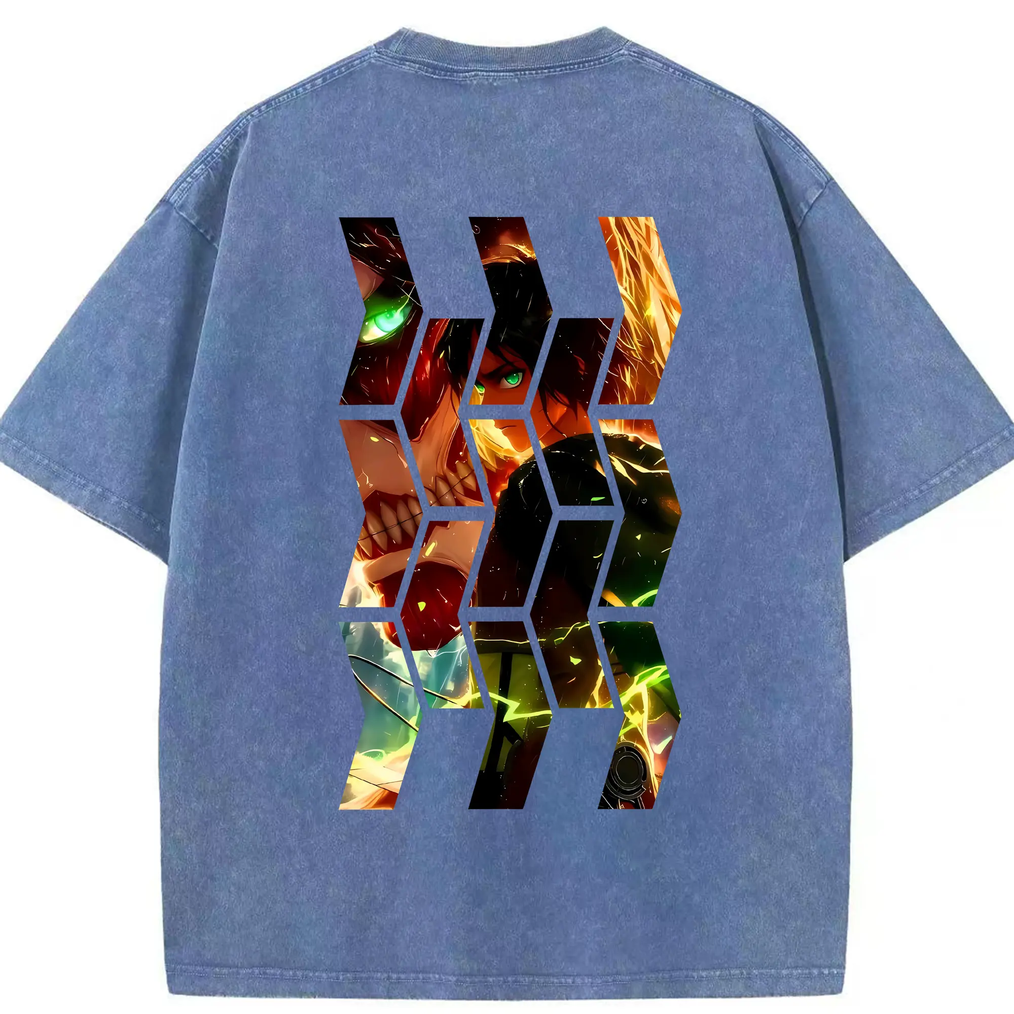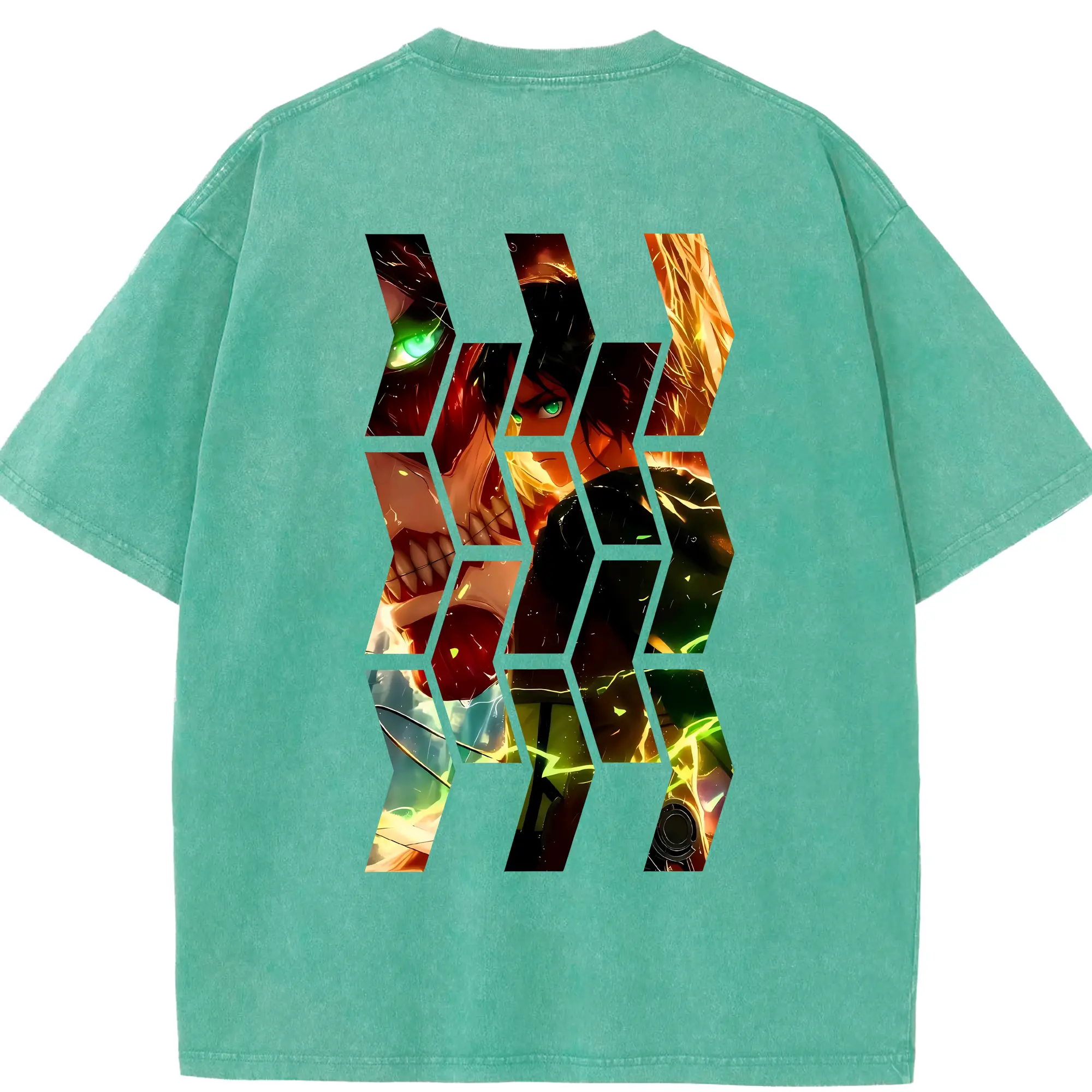進撃の巨人 グッズ エレン・イェーガー - 綿100% ヴィンテージ風 半袖Tシャツ ・ フロントプリント ・ 柔らか肌触り ・ 通気性 快適 ・ スポーツ カジュアル 外出用