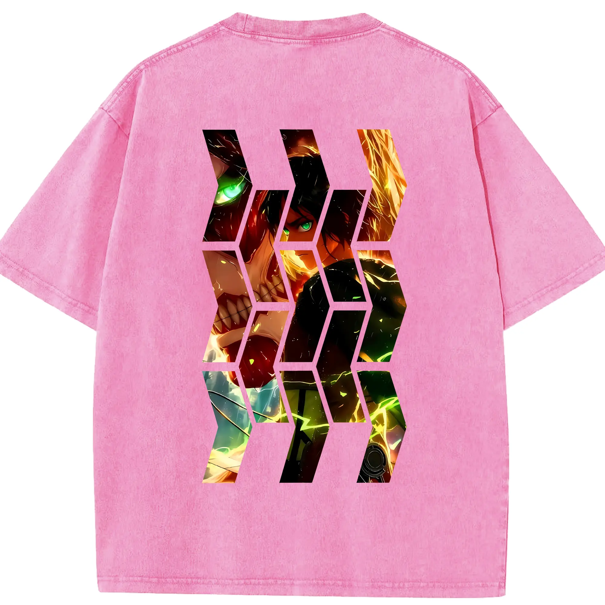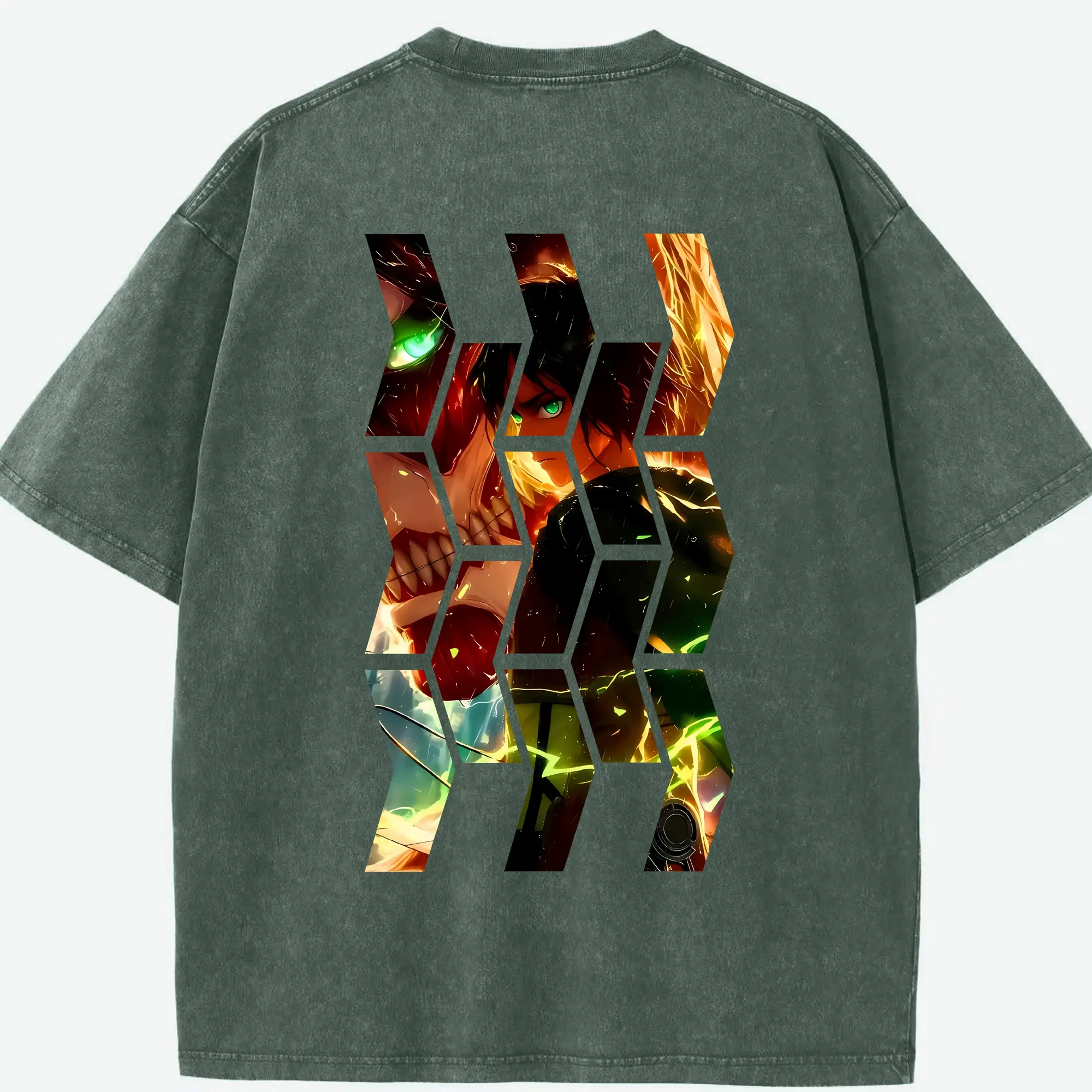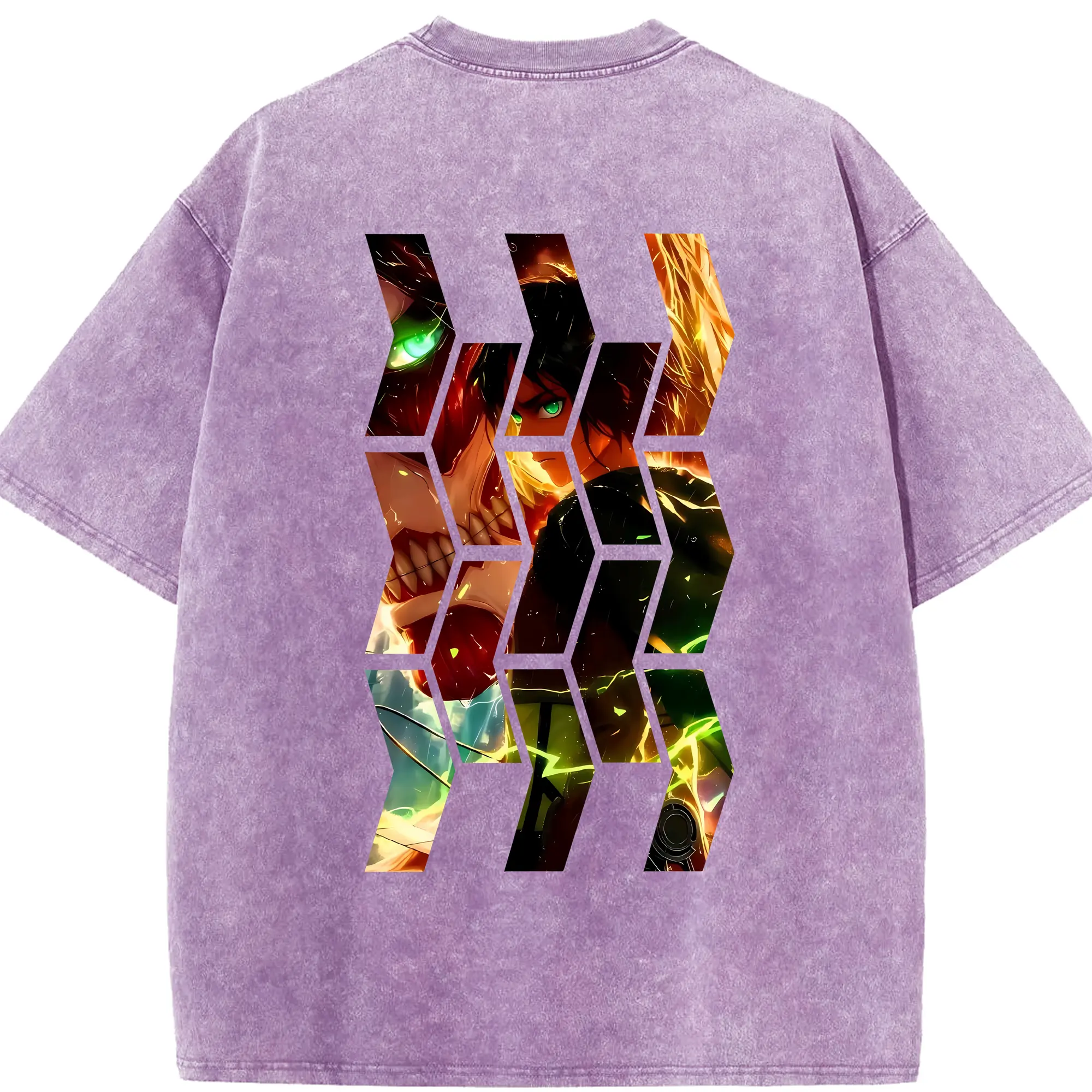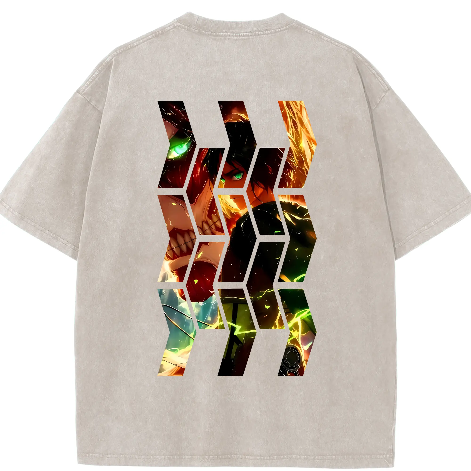 進撃の巨人 グッズ エレン・イェーガー - 綿100% ヴィンテージ風 半袖Tシャツ ・ フロントプリント ・ 柔らか肌触り ・ 通気性 快適 ・ スポーツ カジュアル 外出用