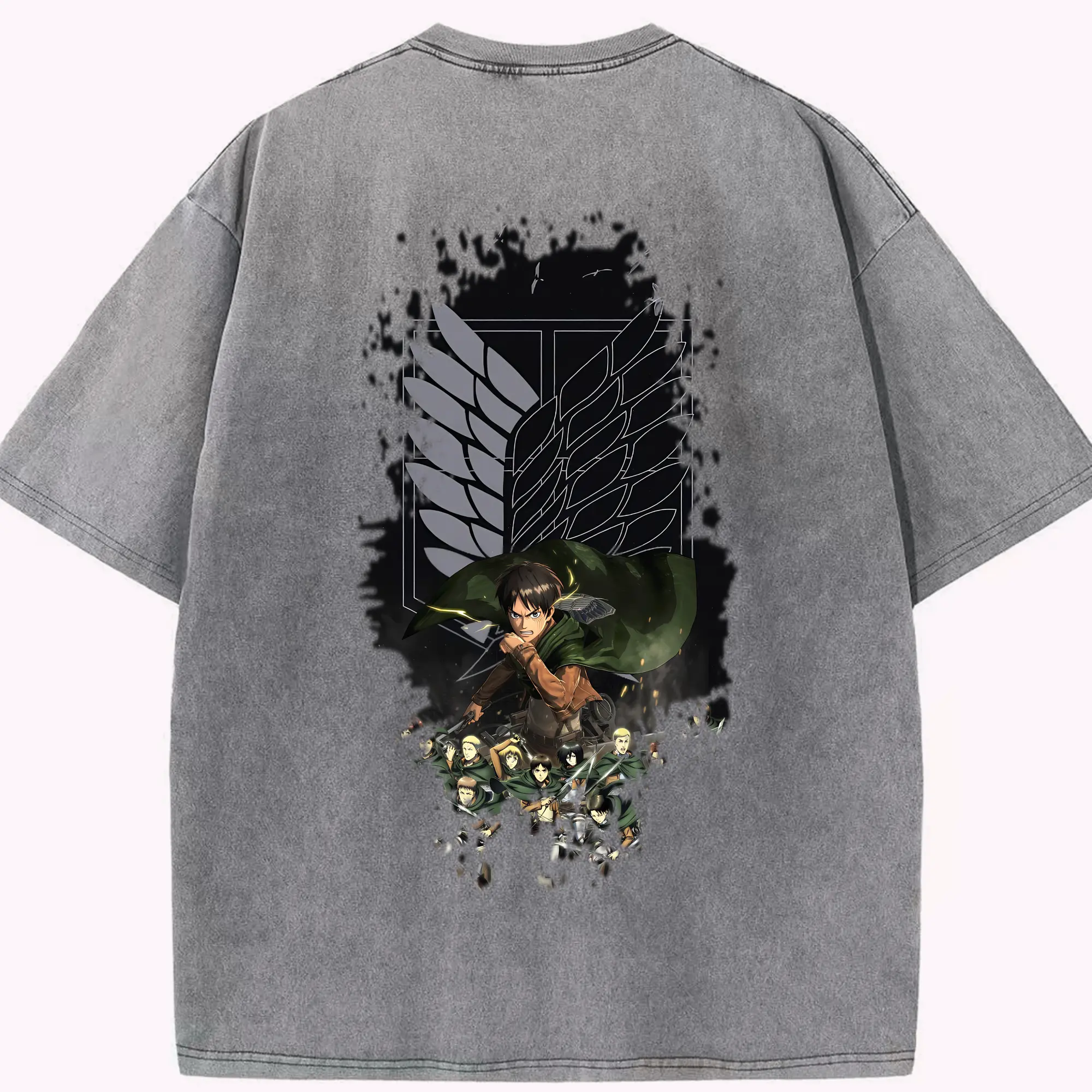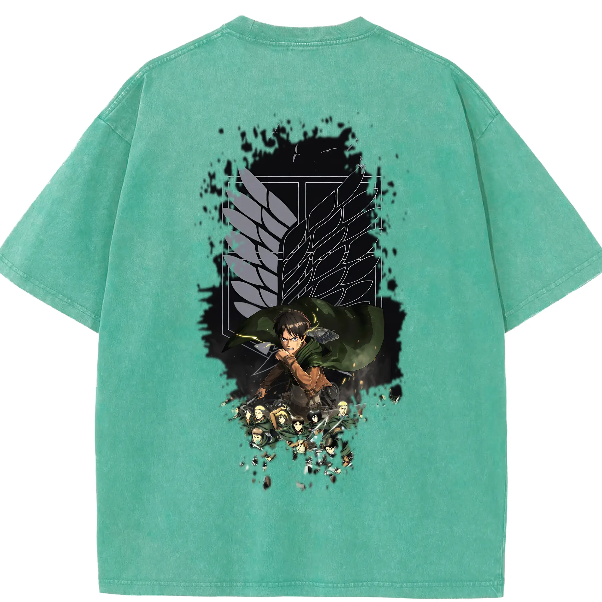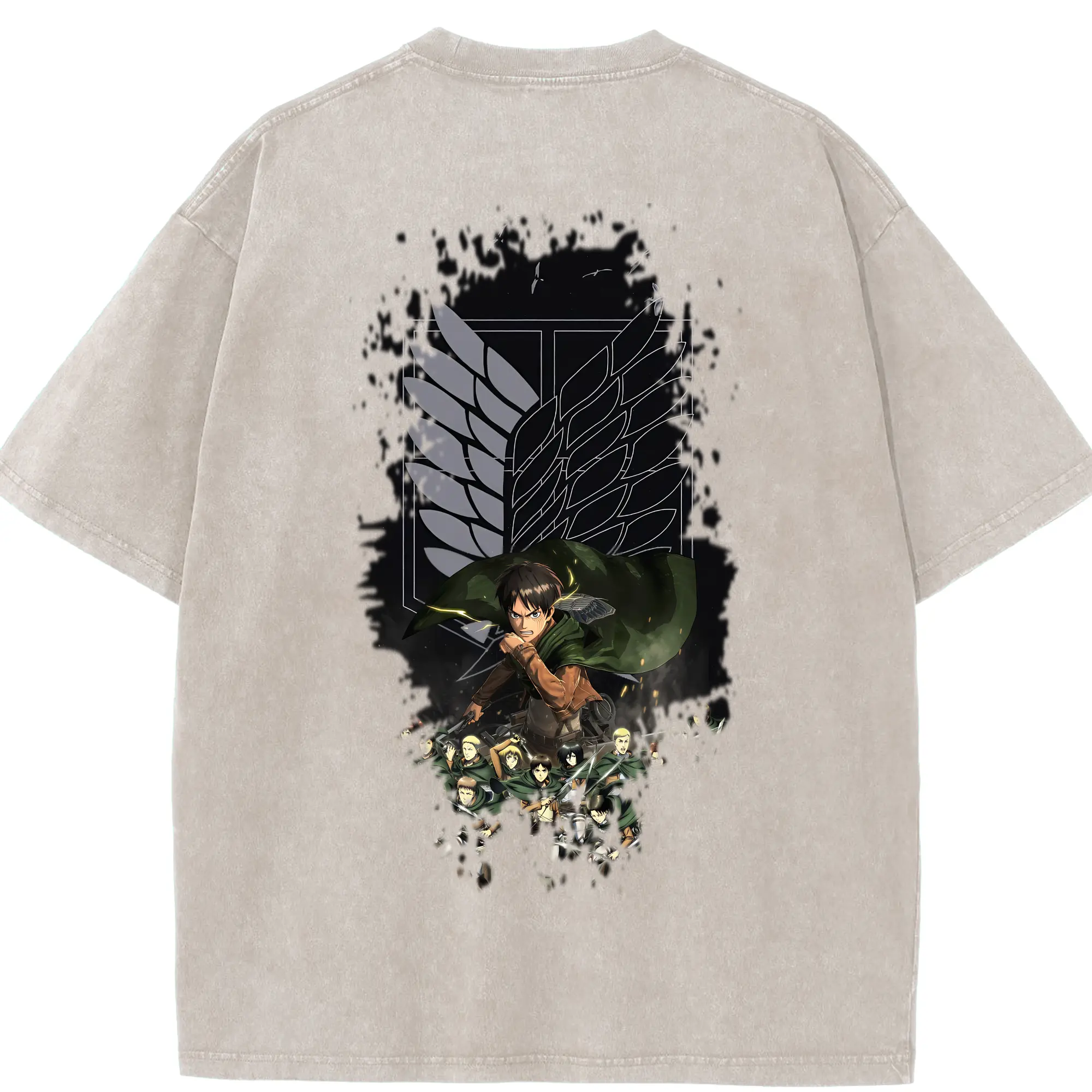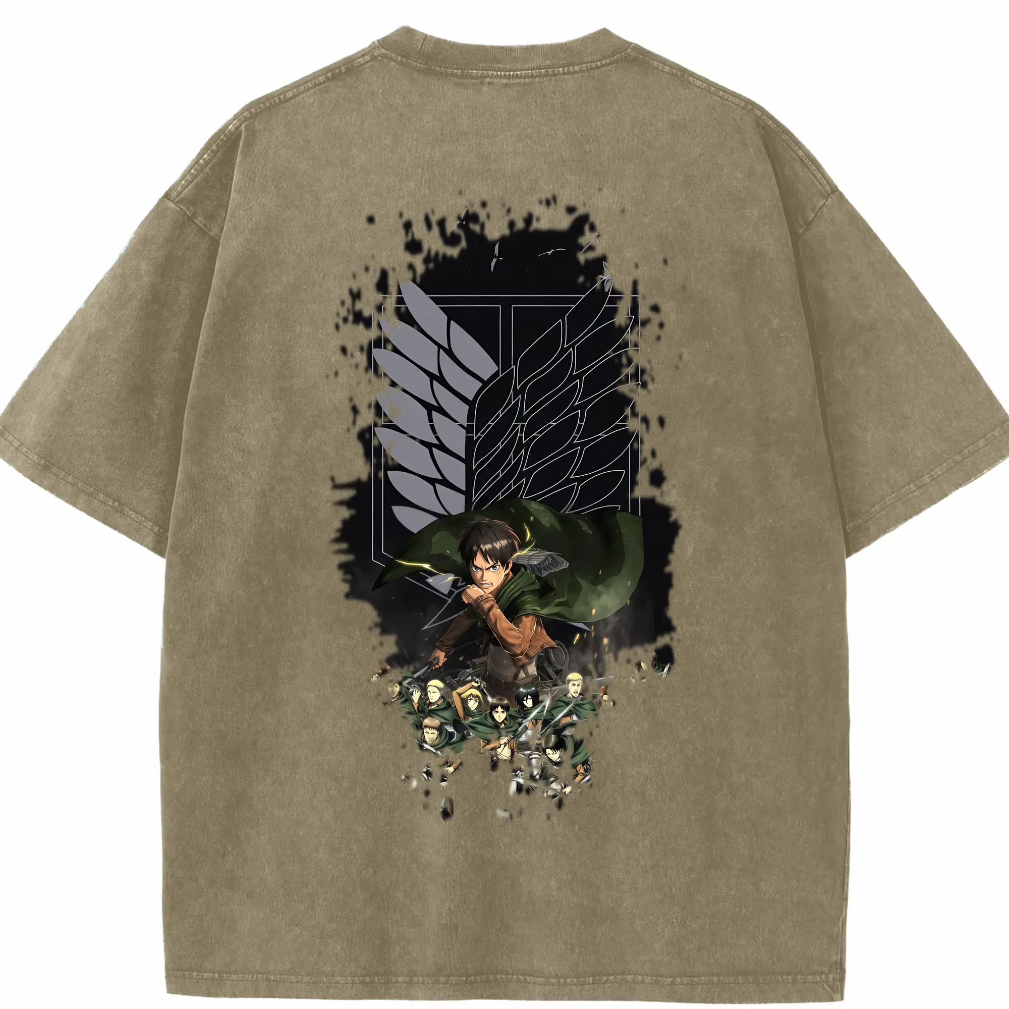 進撃の巨人 グッズ エレン・イェーガー - 綿100% ヴィンテージ風 半袖Tシャツ ・ フロントプリント ・ 柔らか肌触り ・ 通気性 快適 ・ スポーツ カジュアル 外出用