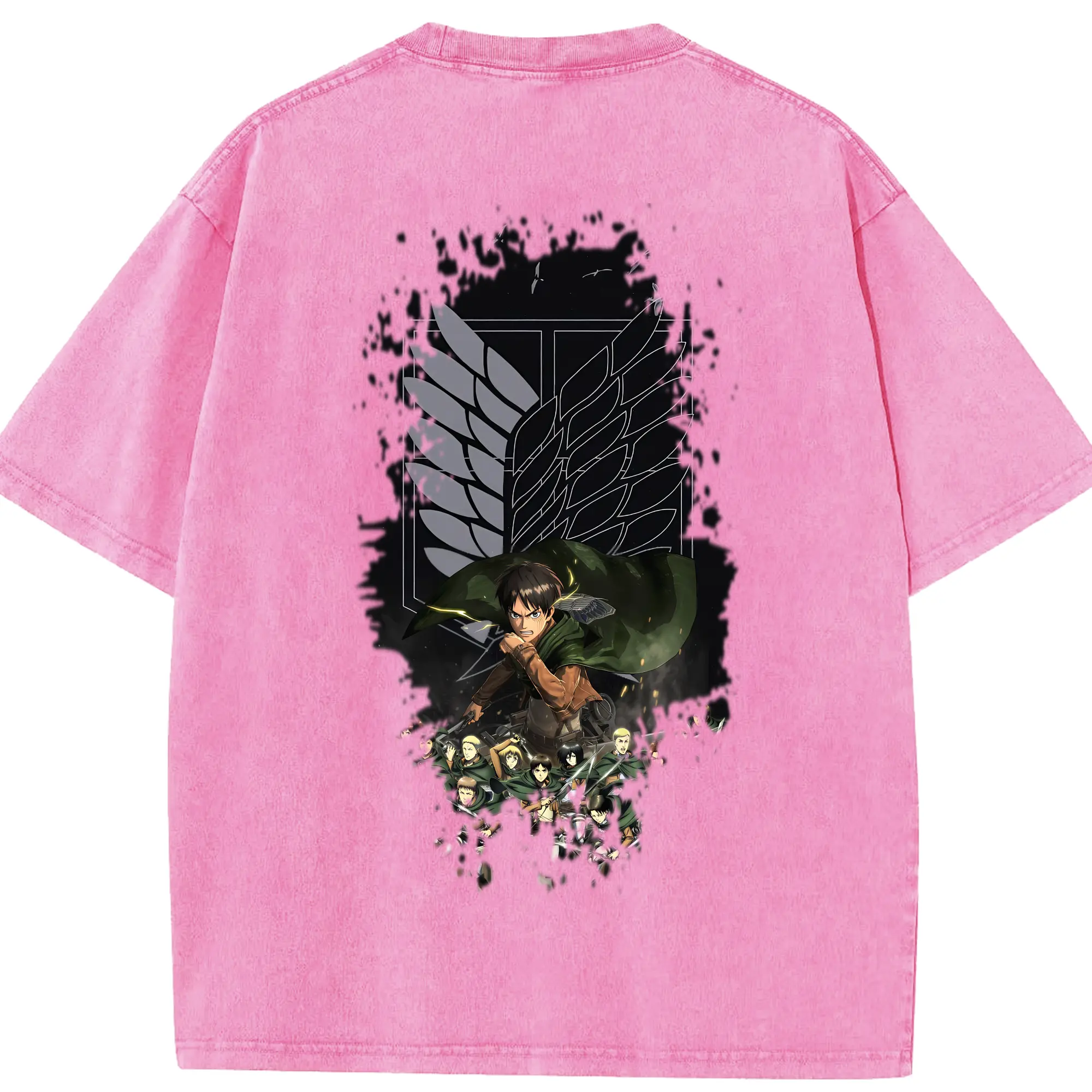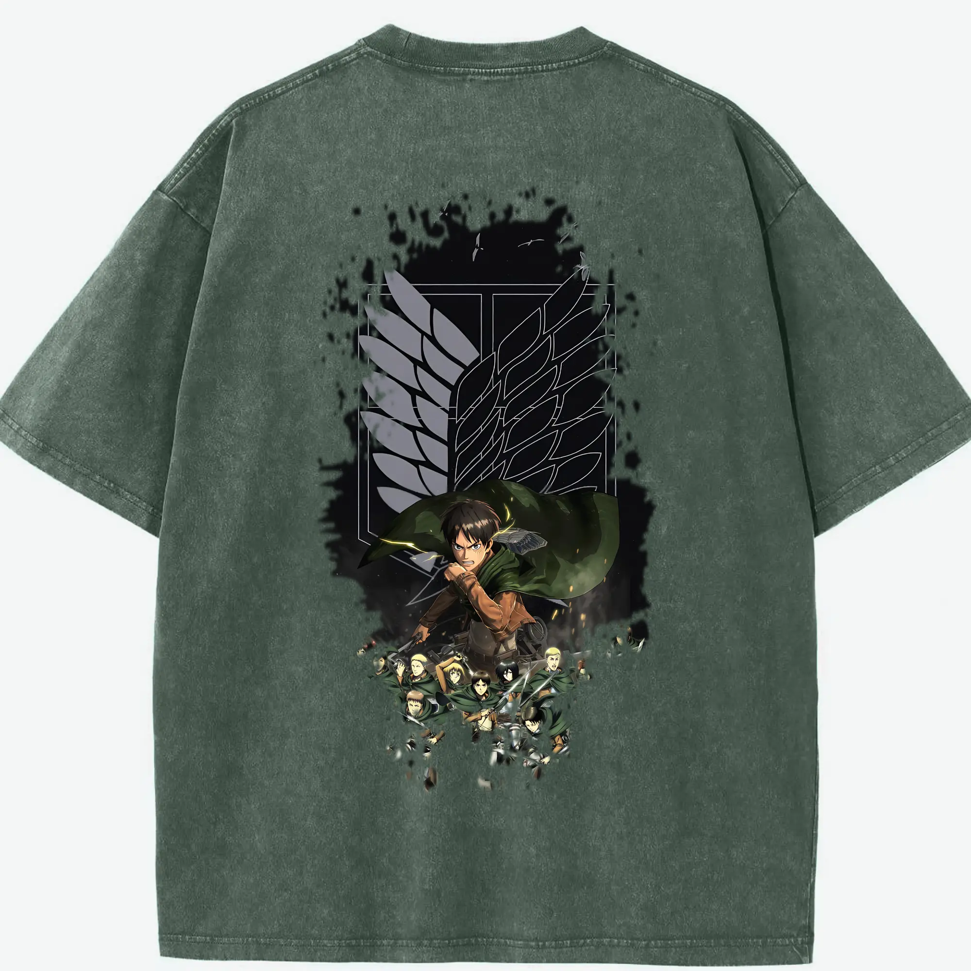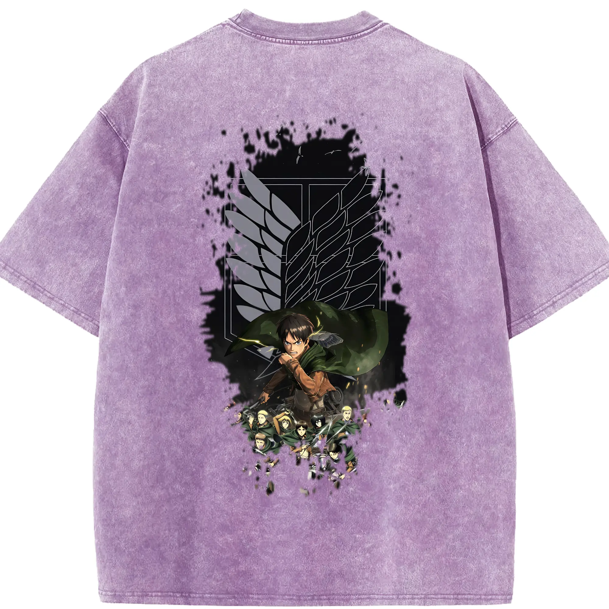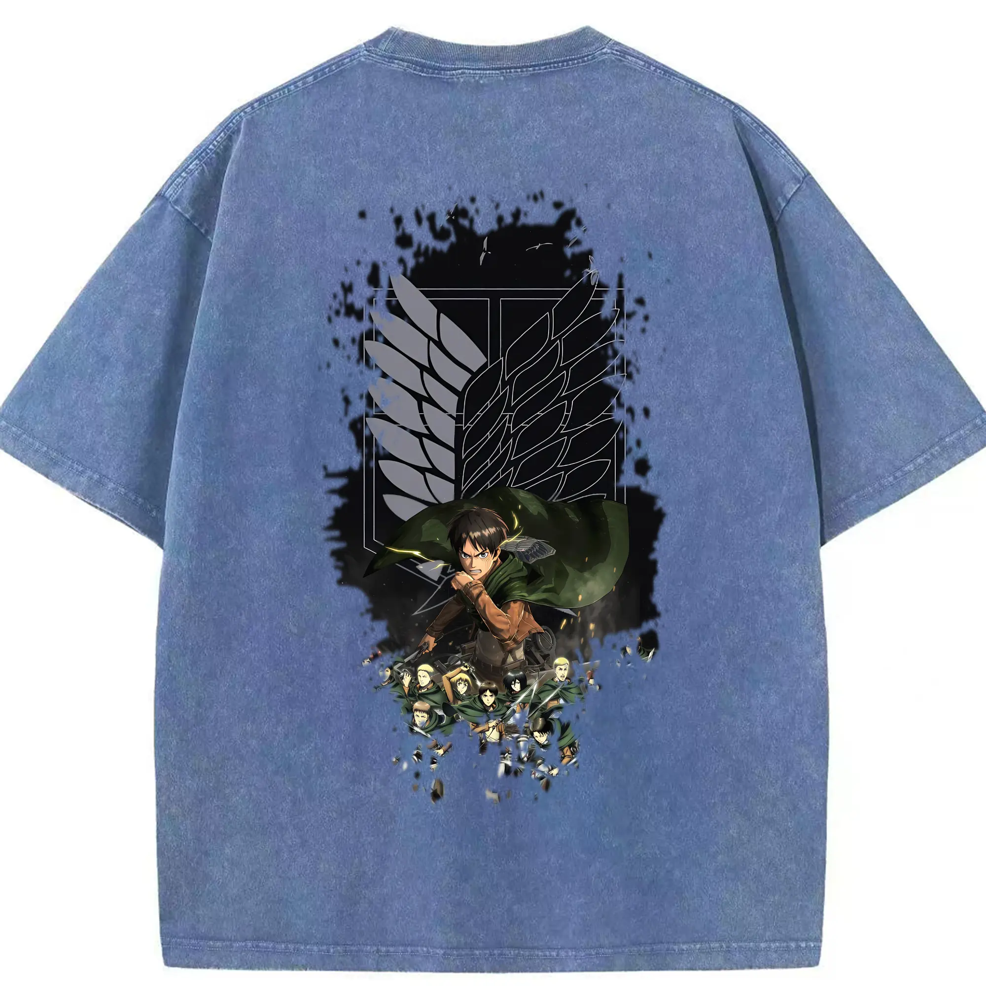 進撃の巨人 グッズ エレン・イェーガー - 綿100% ヴィンテージ風 半袖Tシャツ ・ フロントプリント ・ 柔らか肌触り ・ 通気性 快適 ・ スポーツ カジュアル 外出用