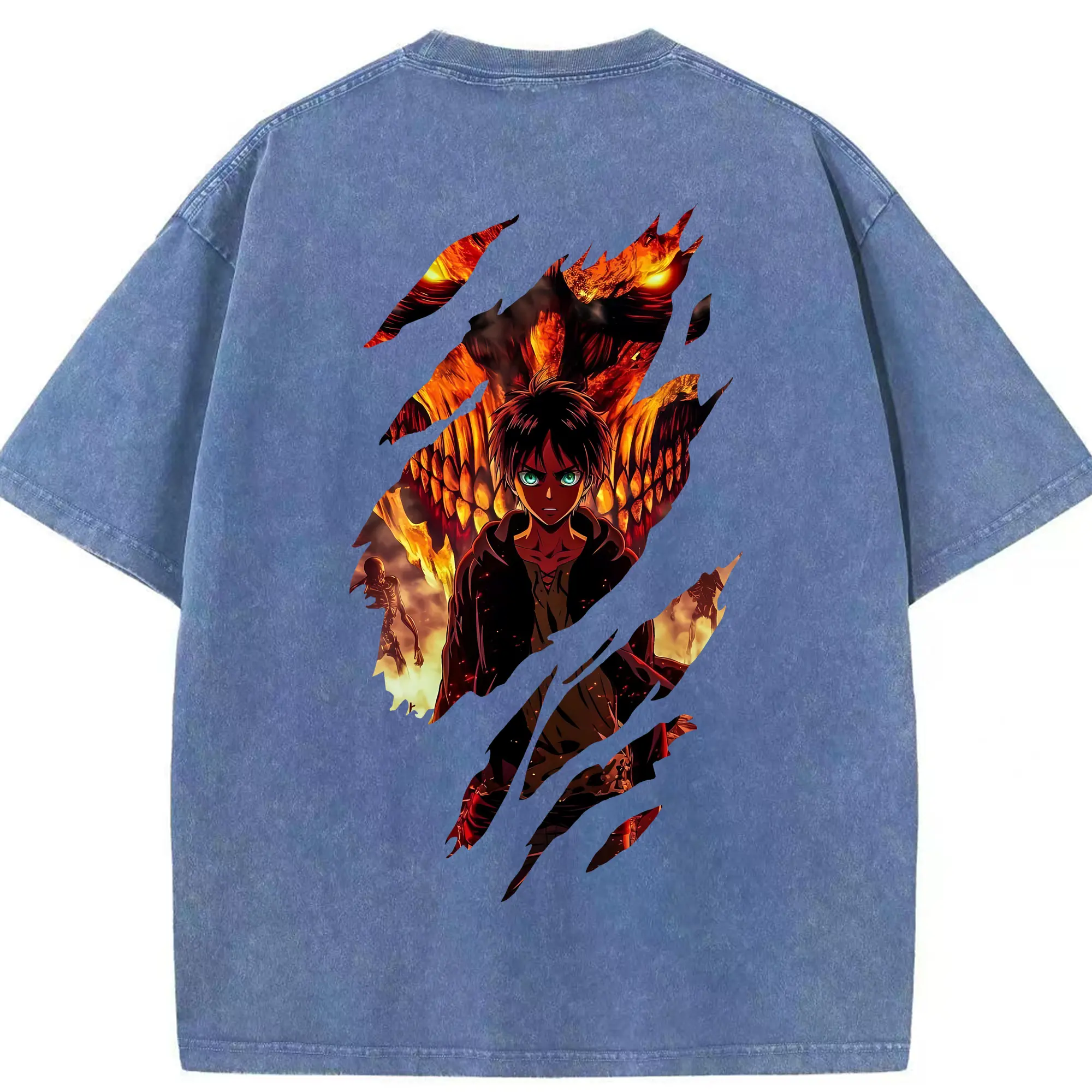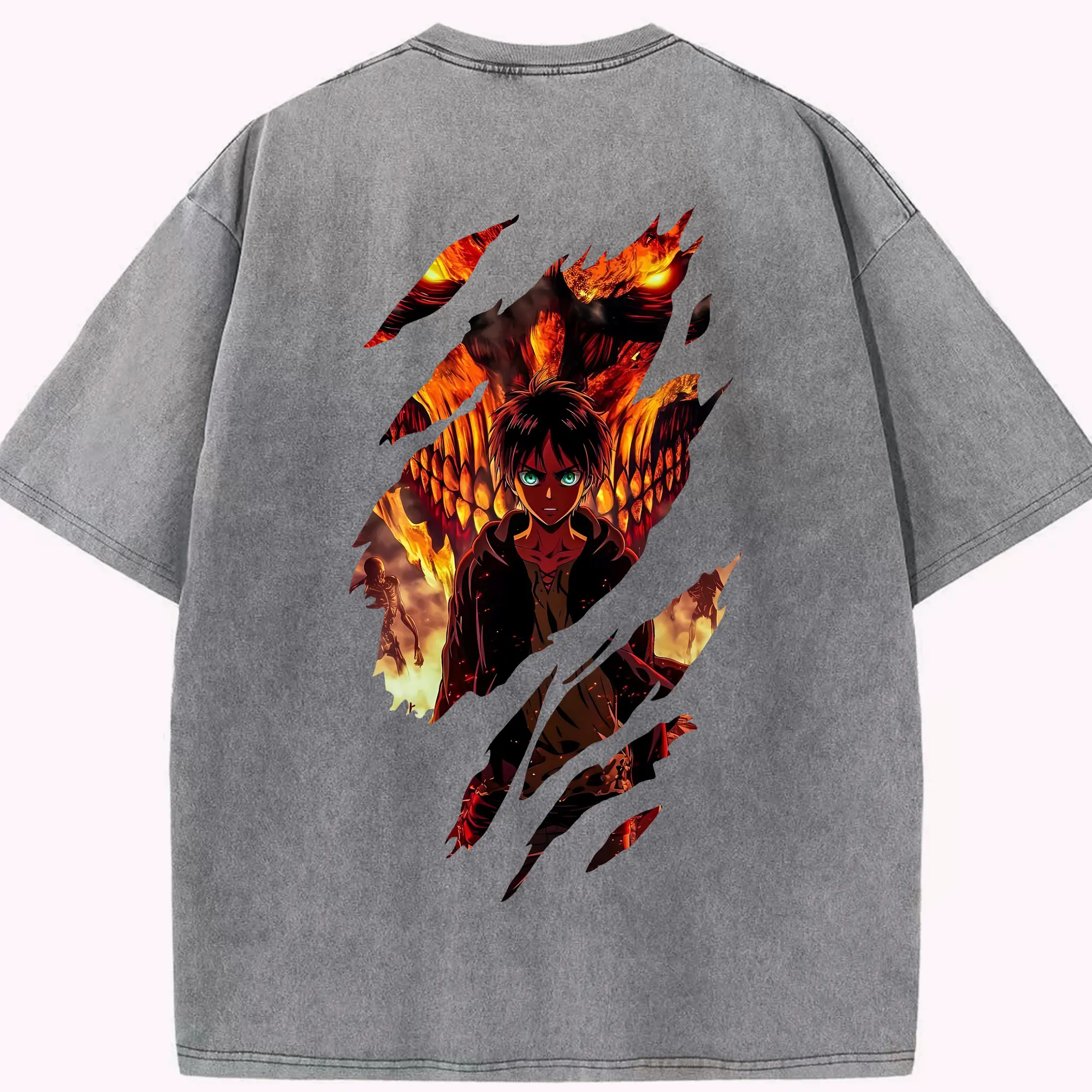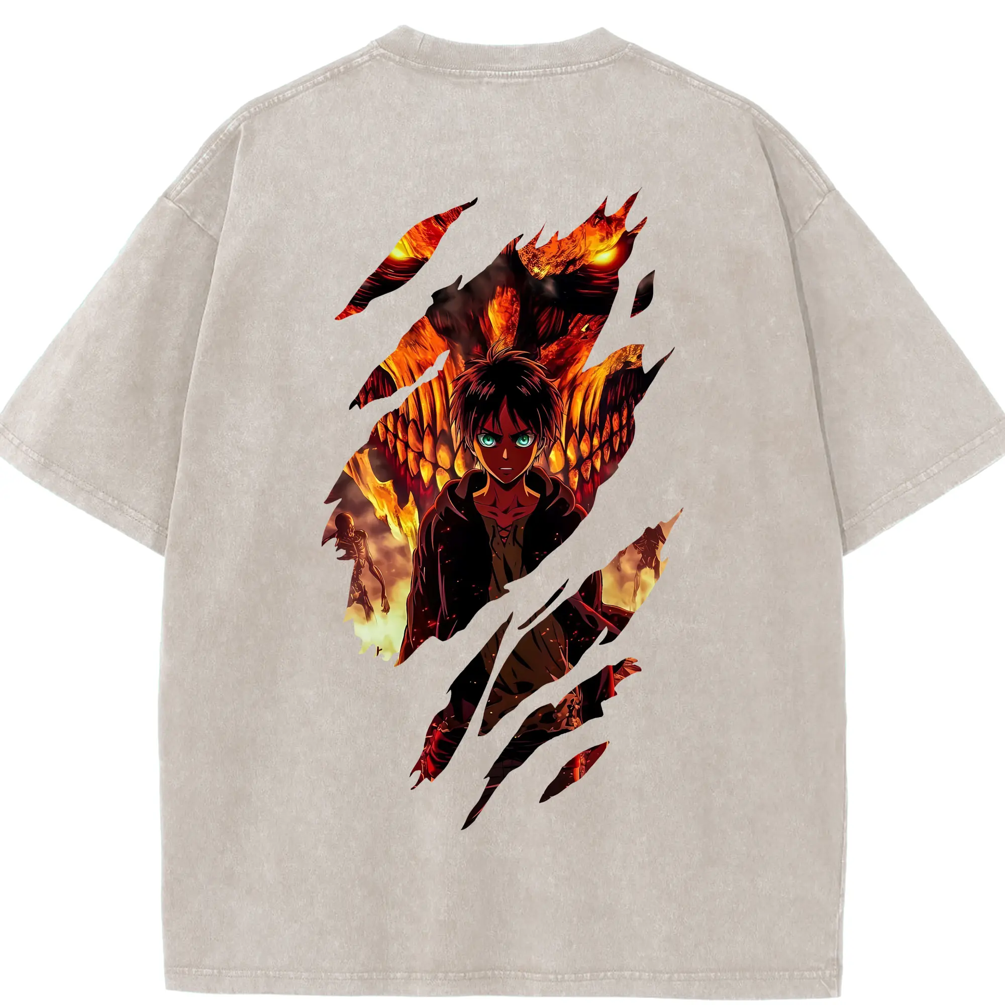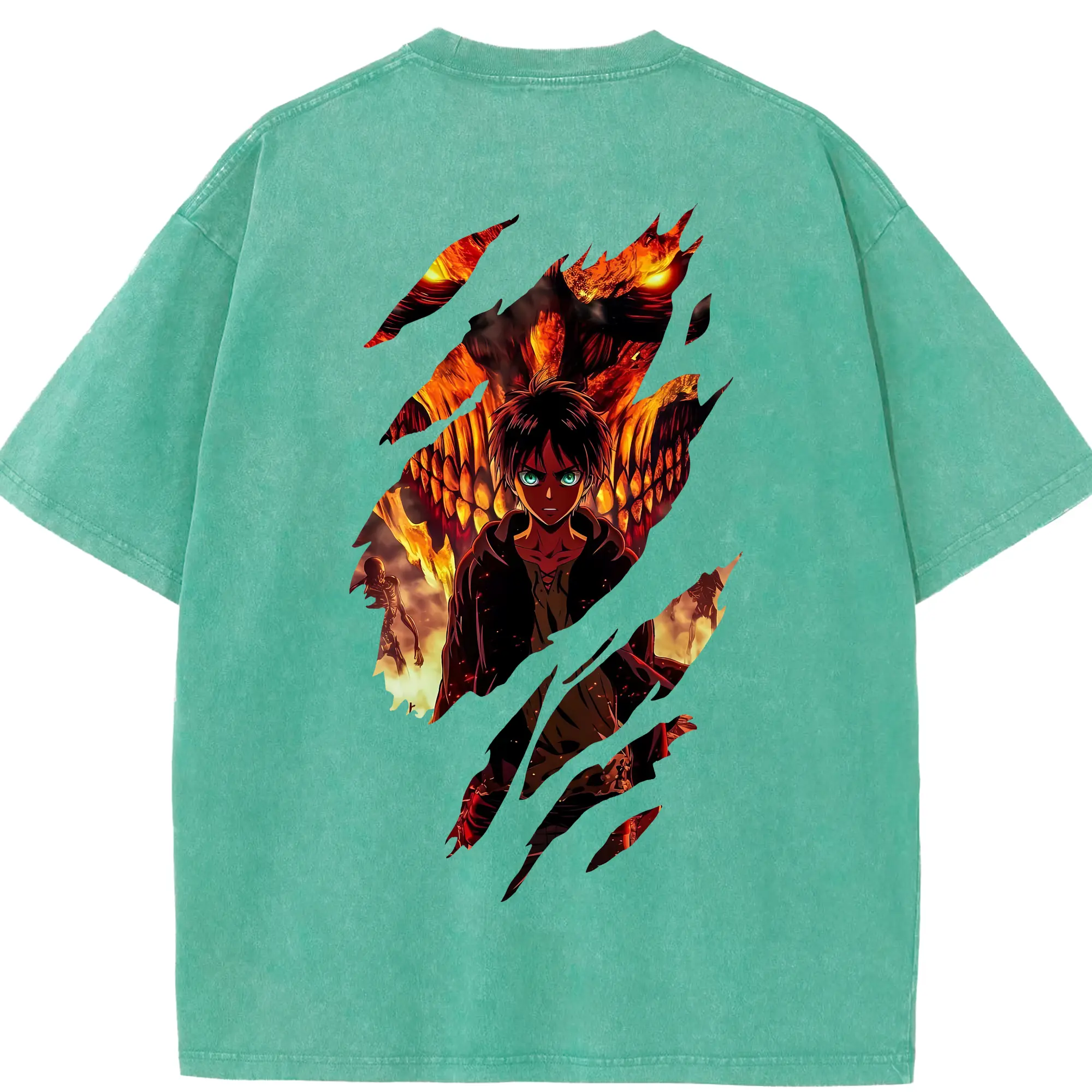 進撃の巨人 グッズ エレン・イェーガー - 綿100% ヴィンテージ風 半袖Tシャツ ・ フロントプリント ・ 柔らか肌触り ・ 通気性 快適 ・ スポーツ カジュアル 外出用