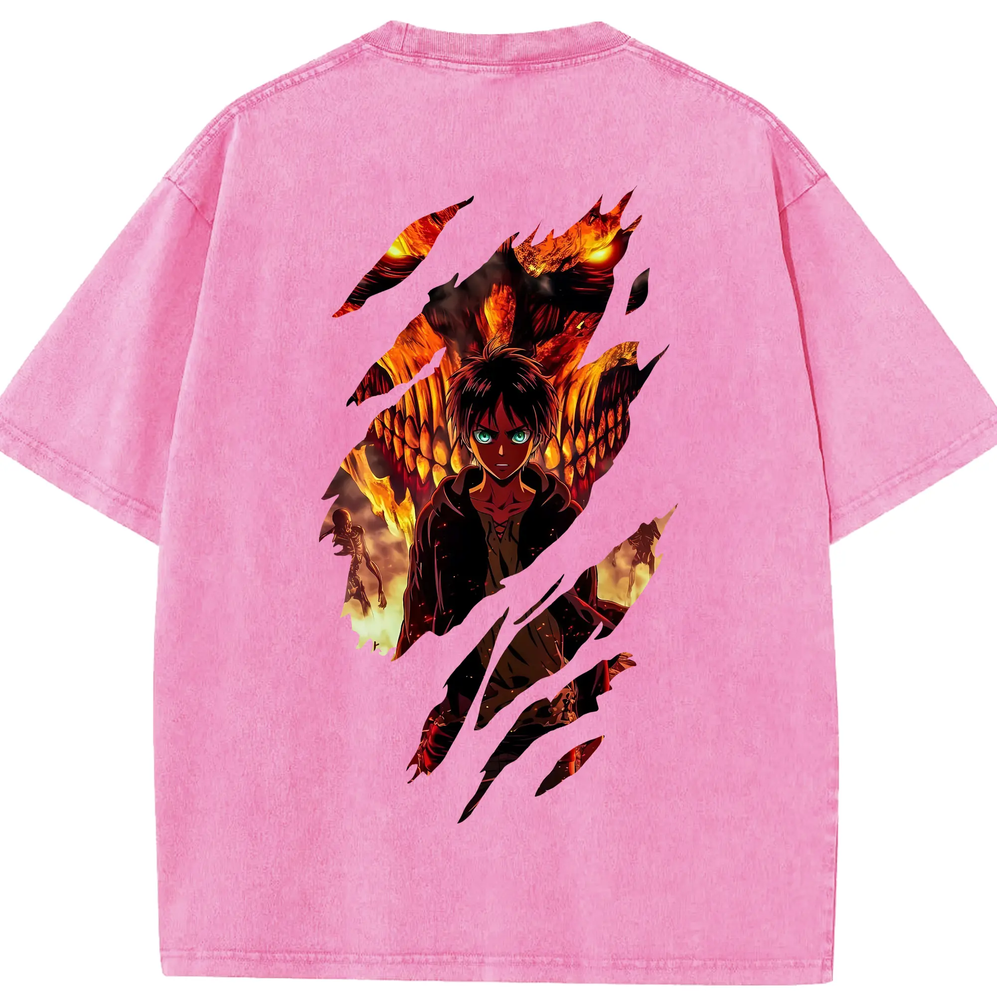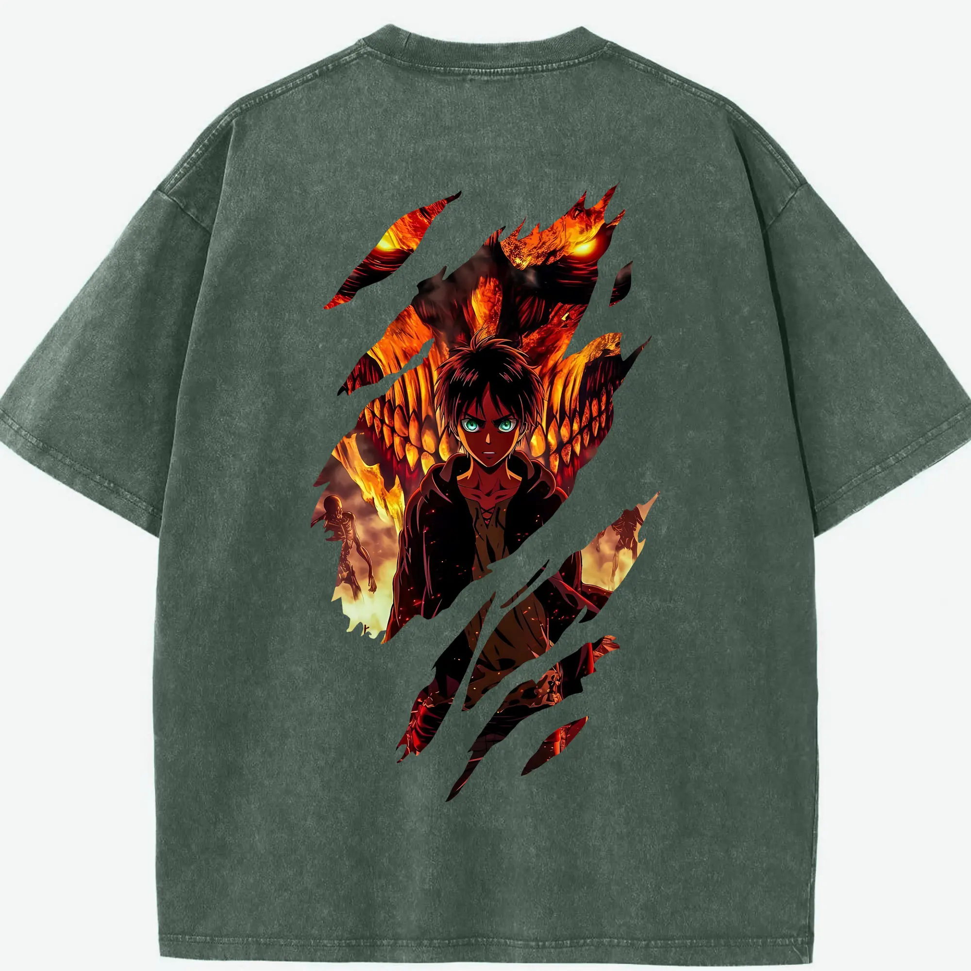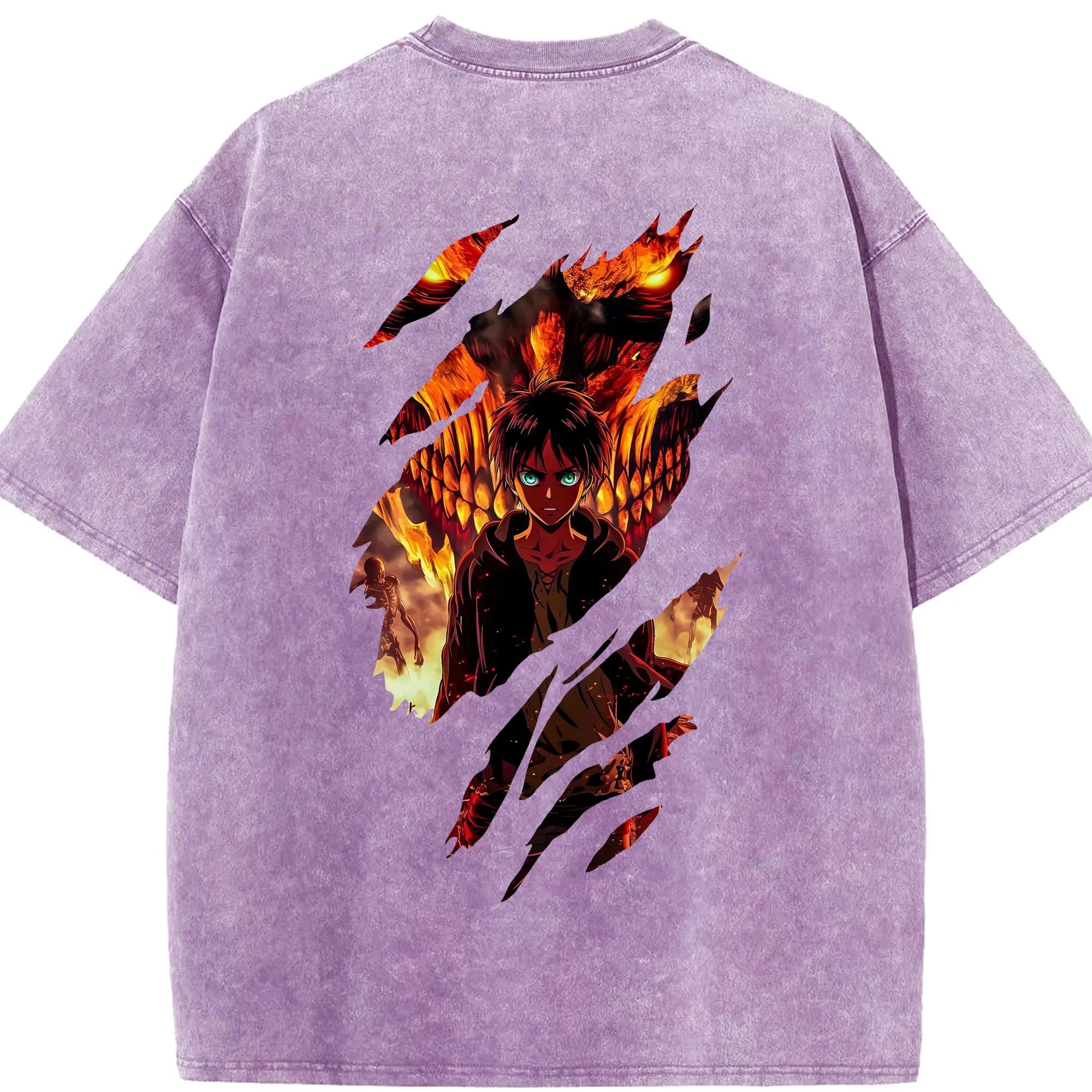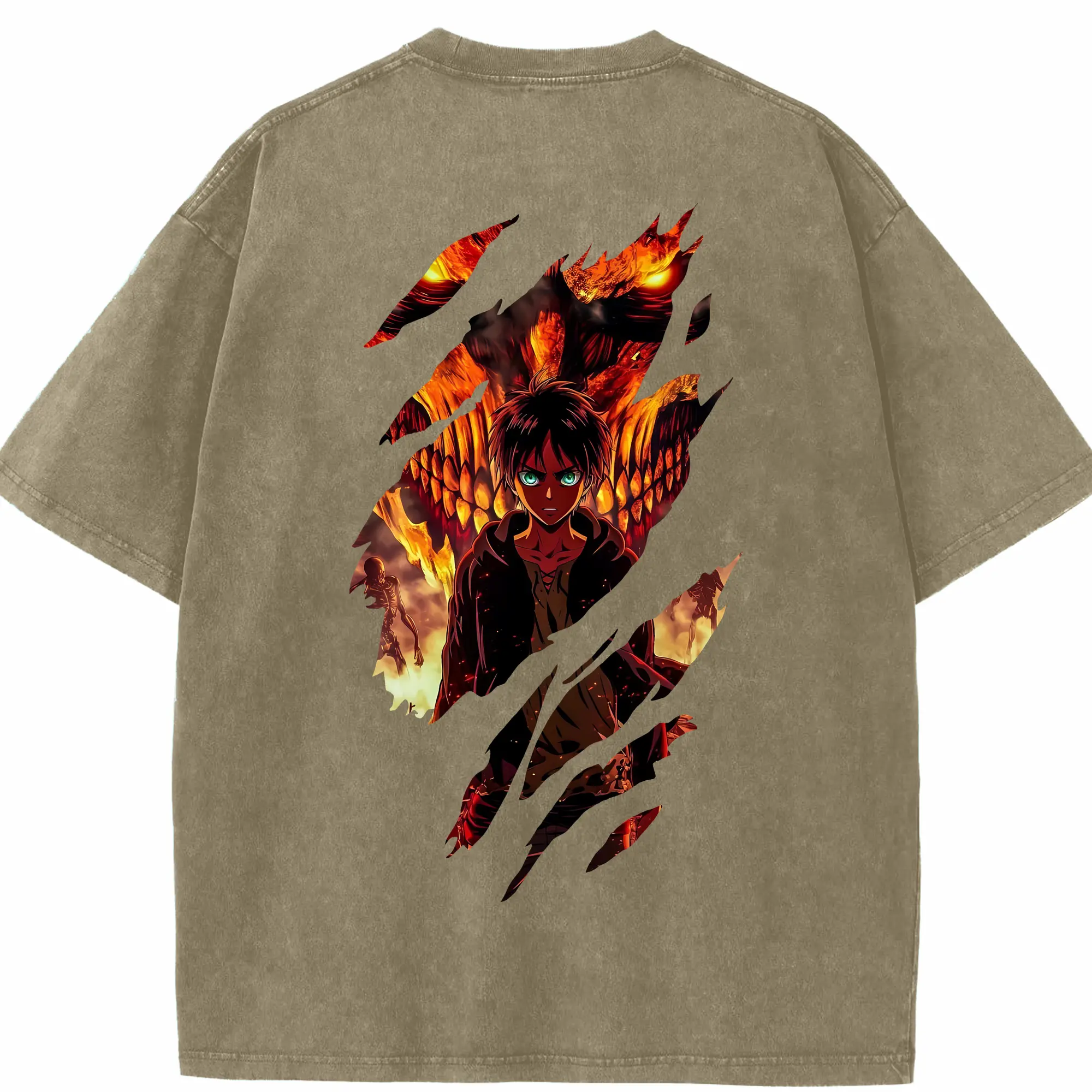進撃の巨人 グッズ エレン・イェーガー - 綿100% ヴィンテージ風 半袖Tシャツ ・ フロントプリント ・ 柔らか肌触り ・ 通気性 快適 ・ スポーツ カジュアル 外出用