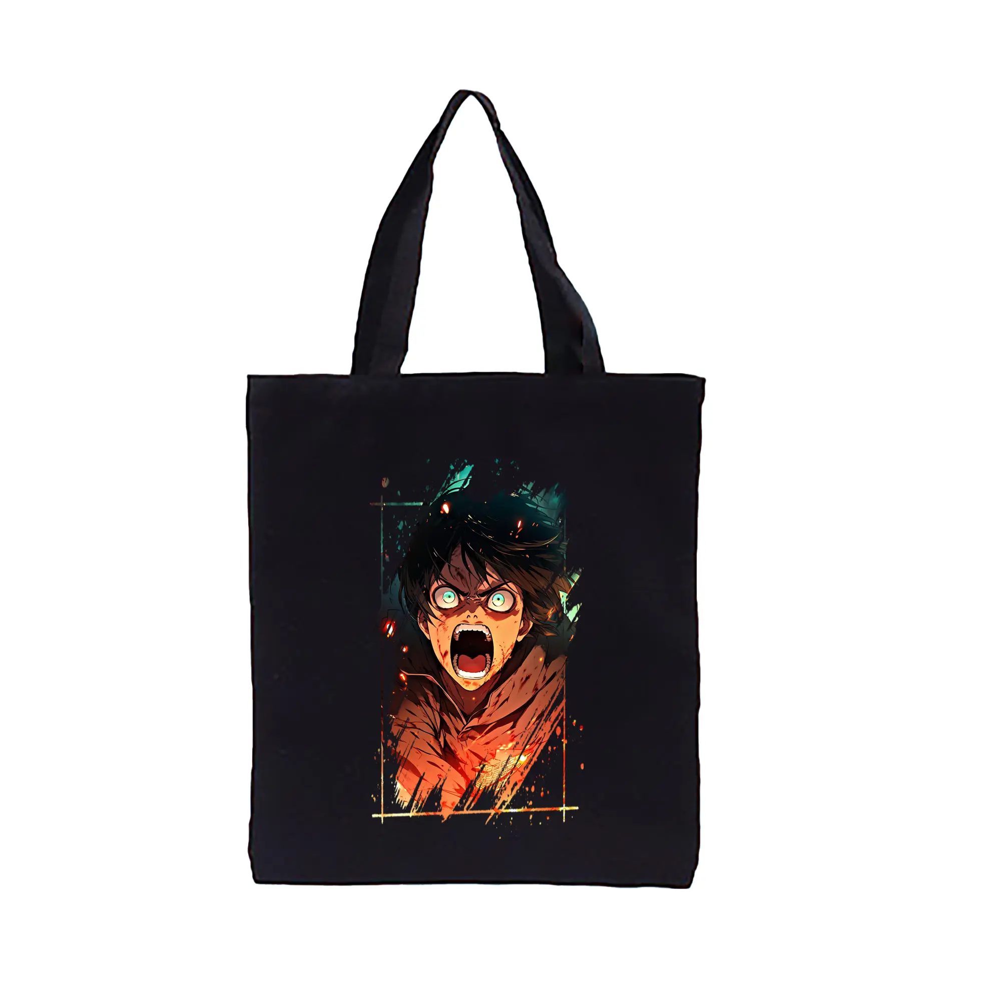 進撃の巨人 グッズ エレン・イェーガー - 縦型キャンバス手提げバッグ(トートバッグ) ・ キャンバス素材 ・ ショッピング用 ・ 軽量 丈夫 お手入れ簡単