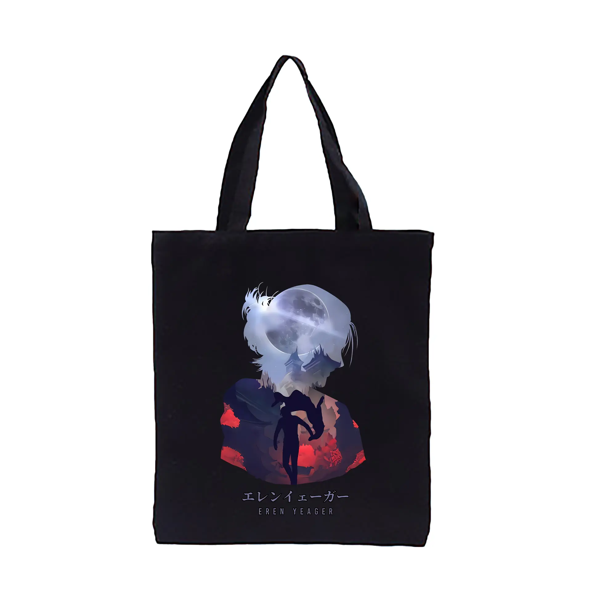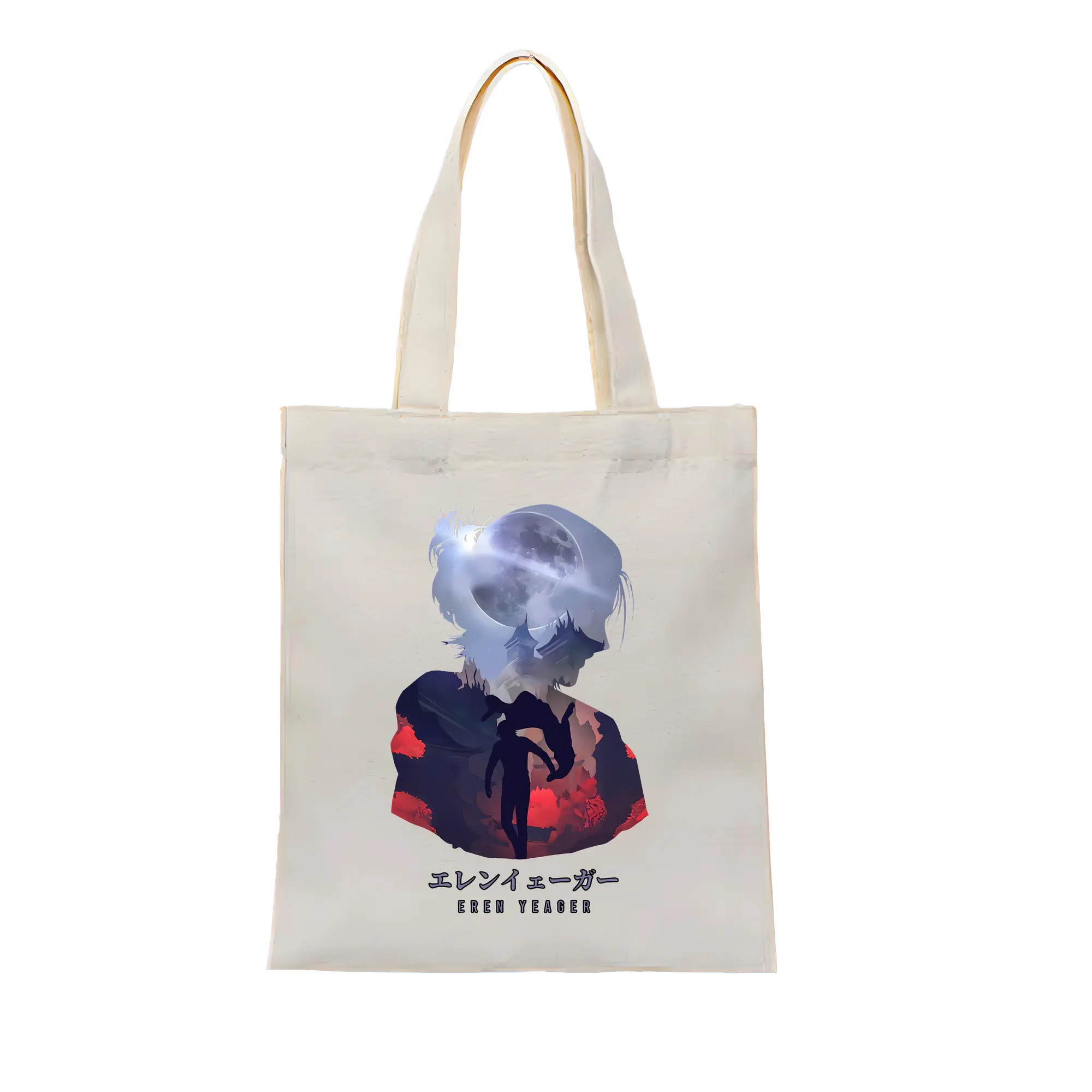 進撃の巨人 グッズ エレン・イェーガー - 縦型キャンバス手提げバッグ(トートバッグ) ・ キャンバス素材 ・ ショッピング用 ・ 軽量 丈夫 お手入れ簡単