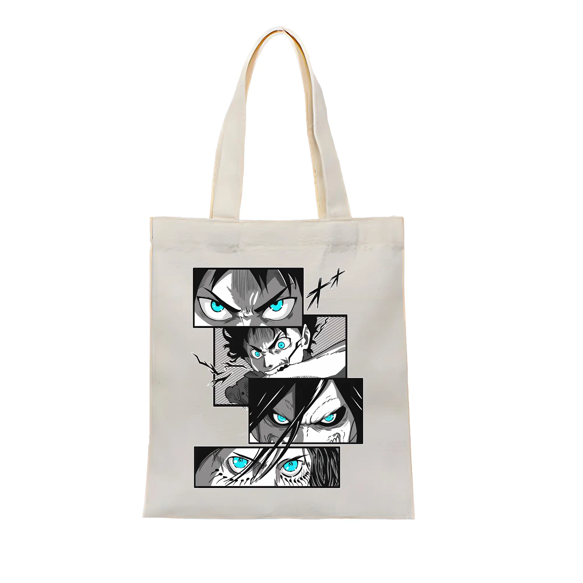 進撃の巨人 グッズ エレン・イェーガー - 縦型キャンバス手提げバッグ(トートバッグ) ・ キャンバス素材 ・ ショッピング用 ・ 軽量 丈夫 お手入れ簡単