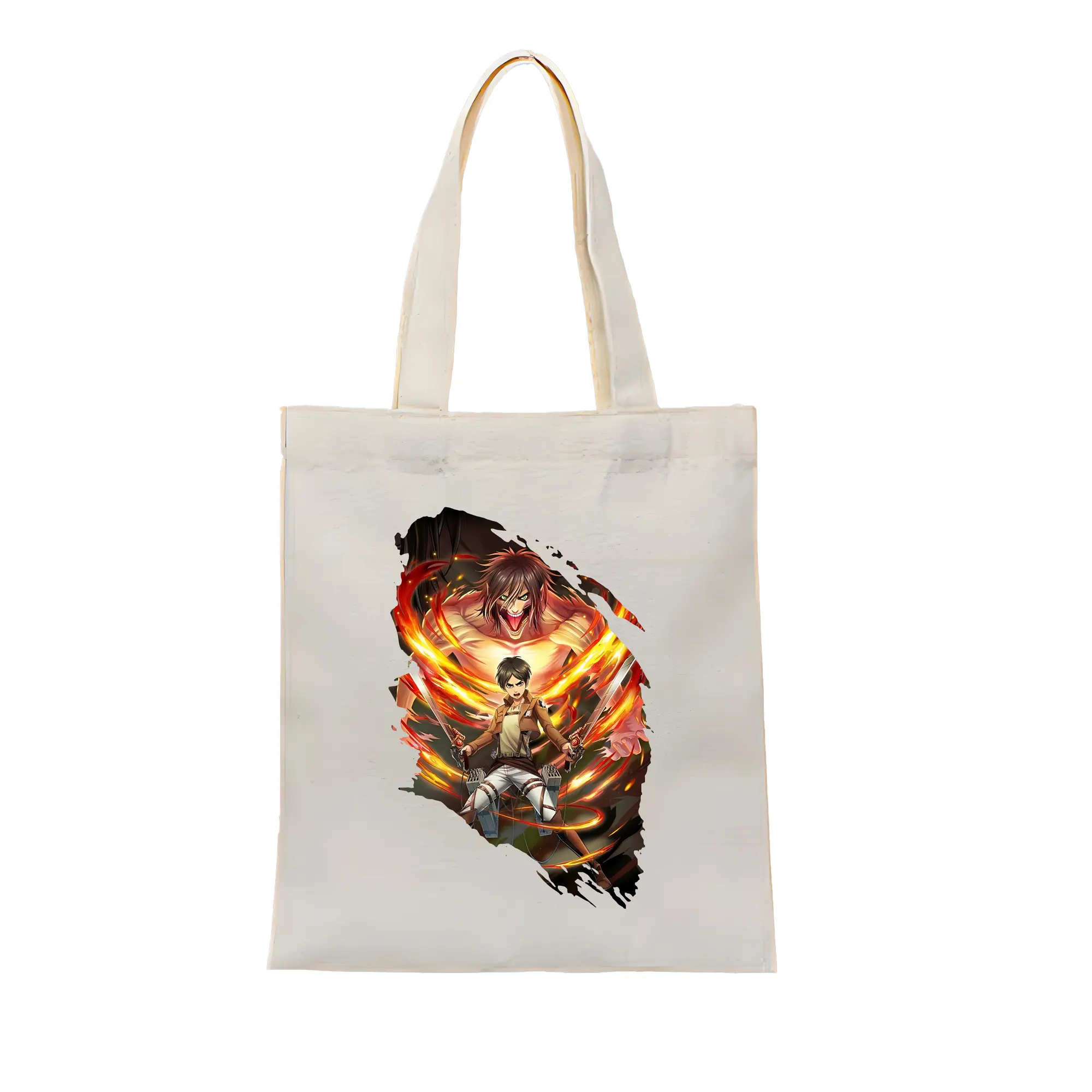 進撃の巨人 グッズ エレン・イェーガー - 縦型キャンバス手提げバッグ(トートバッグ) ・ キャンバス素材 ・ ショッピング用 ・ 軽量 丈夫 お手入れ簡単