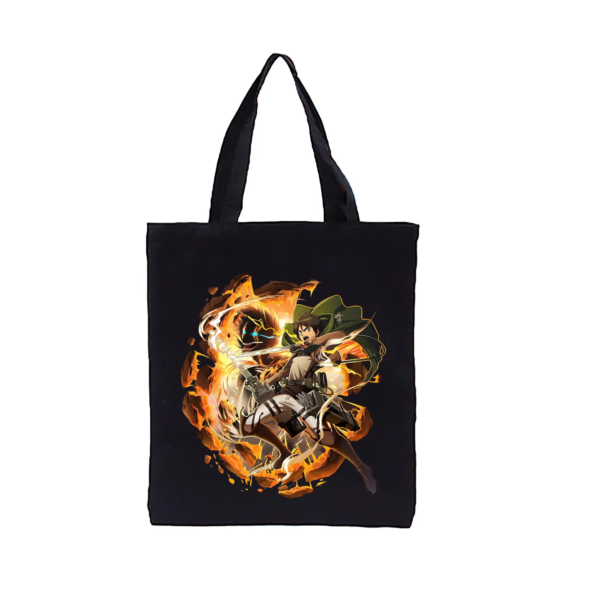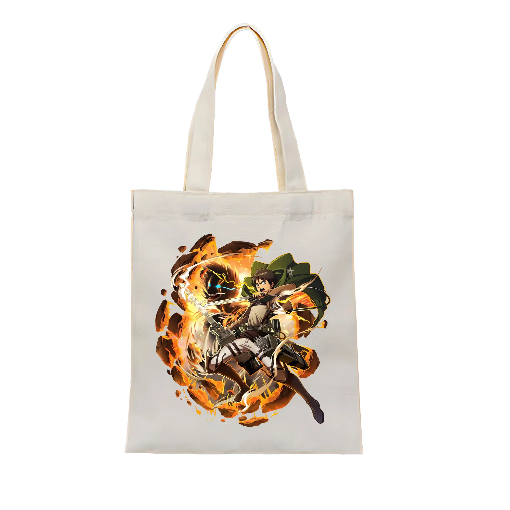進撃の巨人 グッズ エレン・イェーガー - 縦型キャンバス手提げバッグ(トートバッグ) ・ キャンバス素材 ・ ショッピング用 ・ 軽量 丈夫 お手入れ簡単