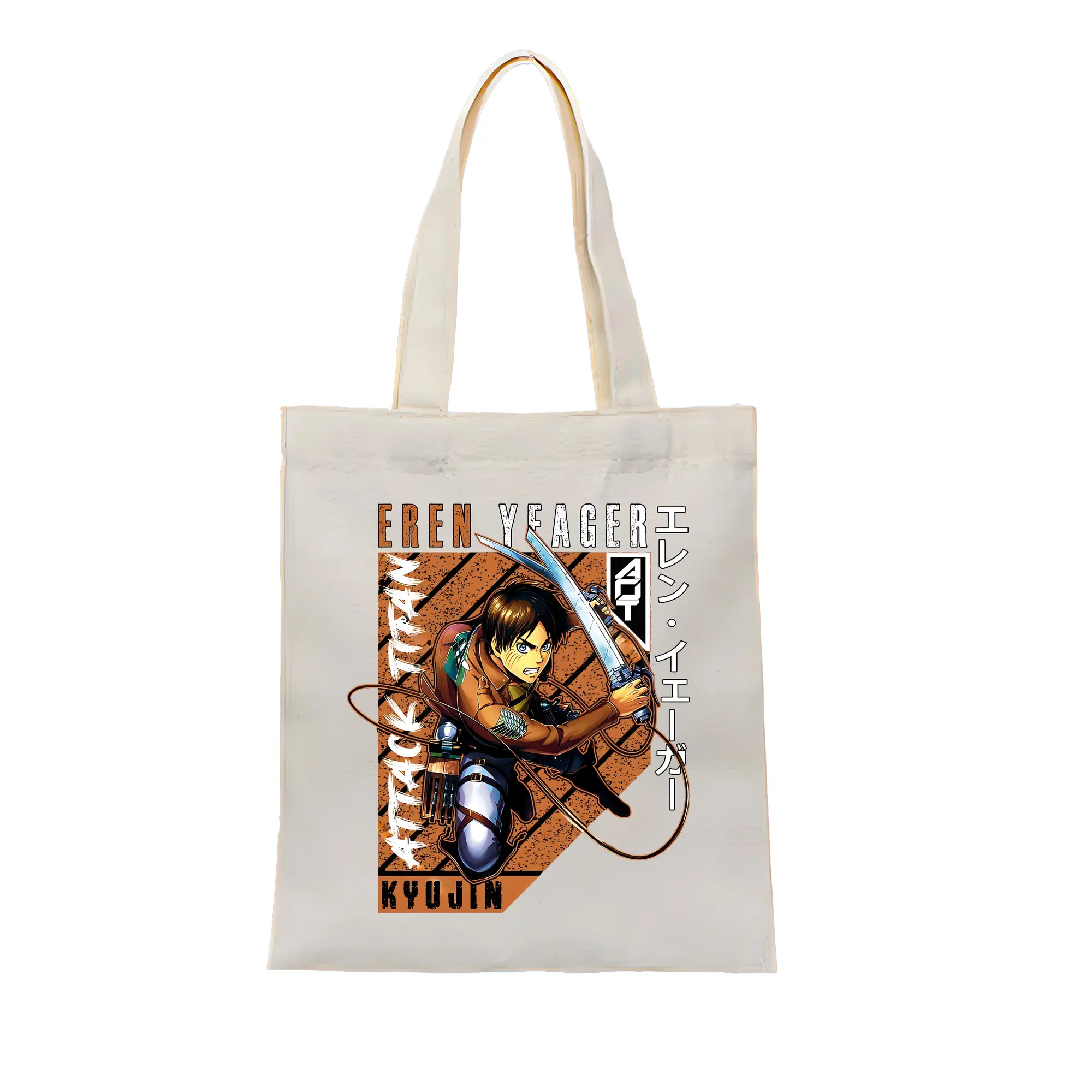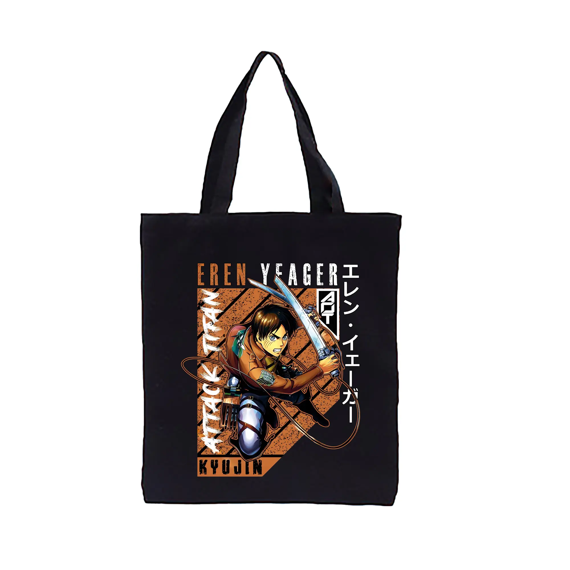 進撃の巨人 グッズ エレン・イェーガー - 縦型キャンバス手提げバッグ(トートバッグ) ・ キャンバス素材 ・ ショッピング用 ・ 軽量 丈夫 お手入れ簡単