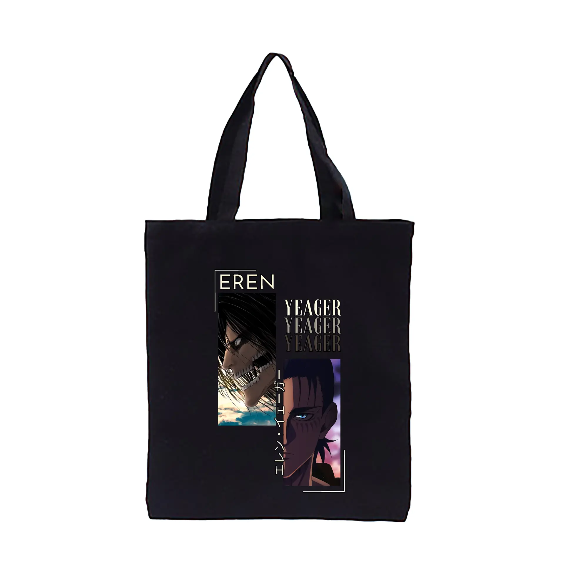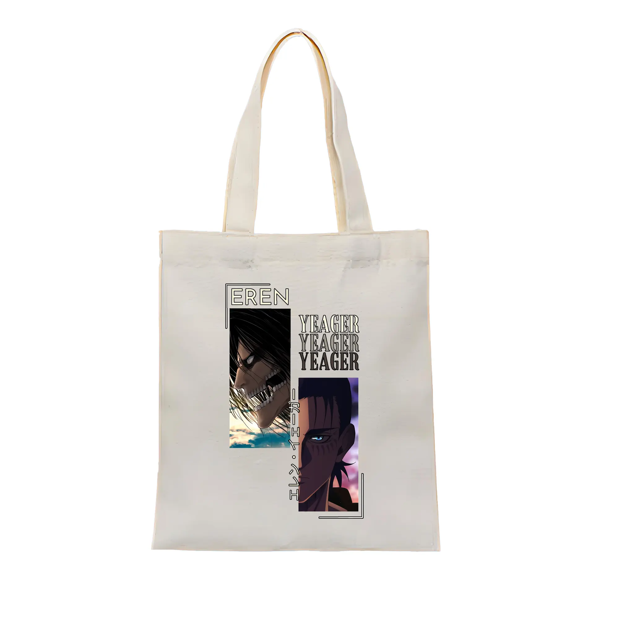 進撃の巨人 グッズ エレン・イェーガー - 縦型キャンバス手提げバッグ(トートバッグ) ・ キャンバス素材 ・ ショッピング用 ・ 軽量 丈夫 お手入れ簡単