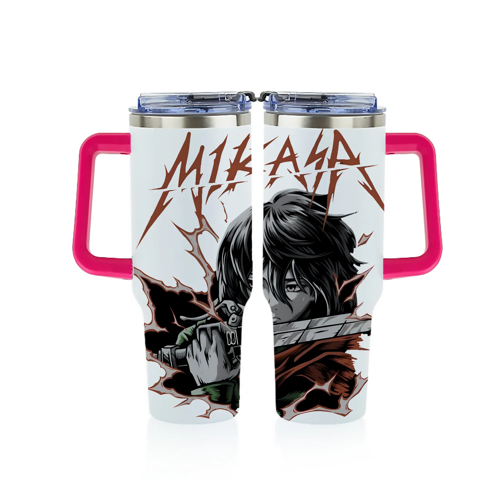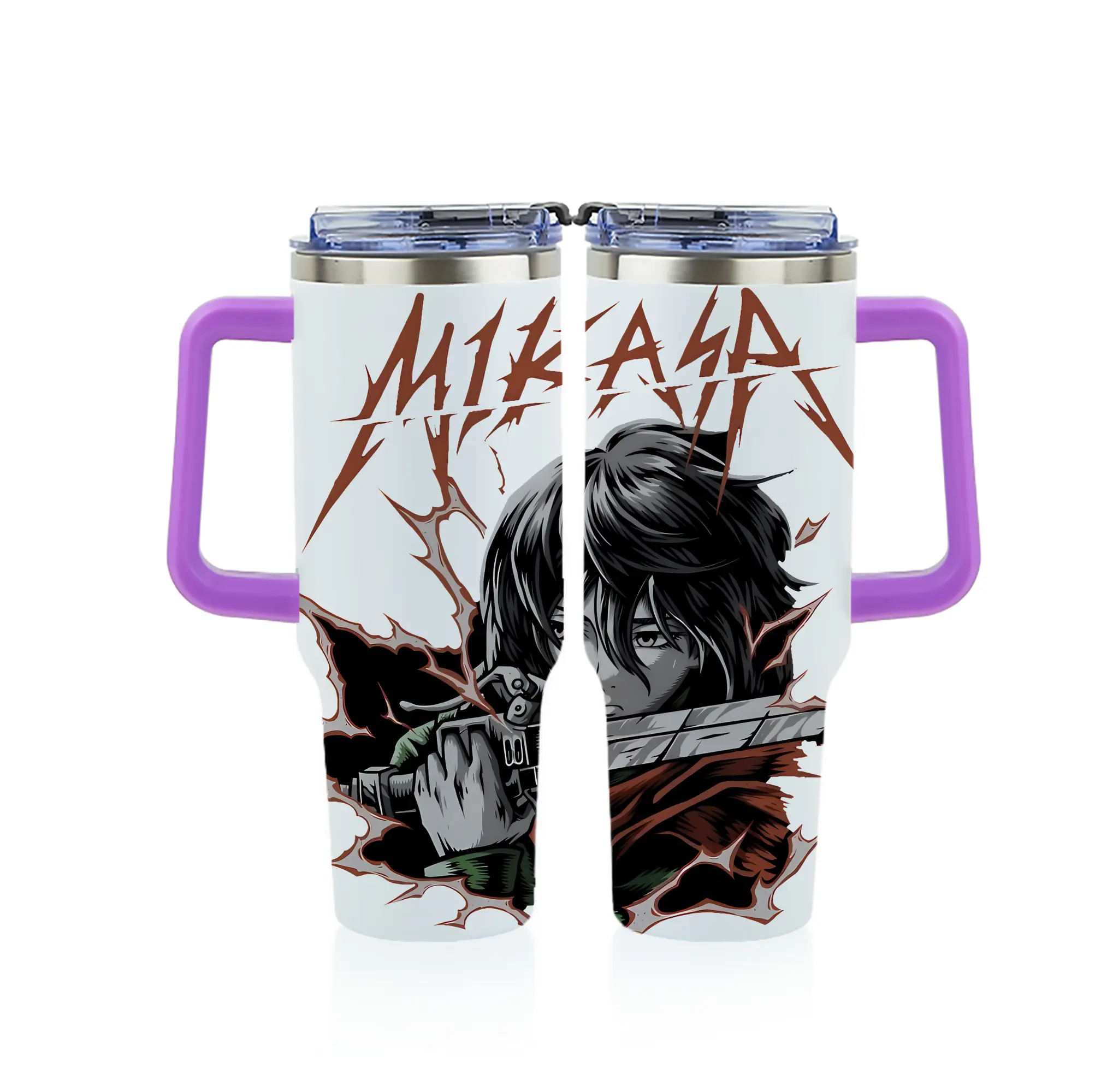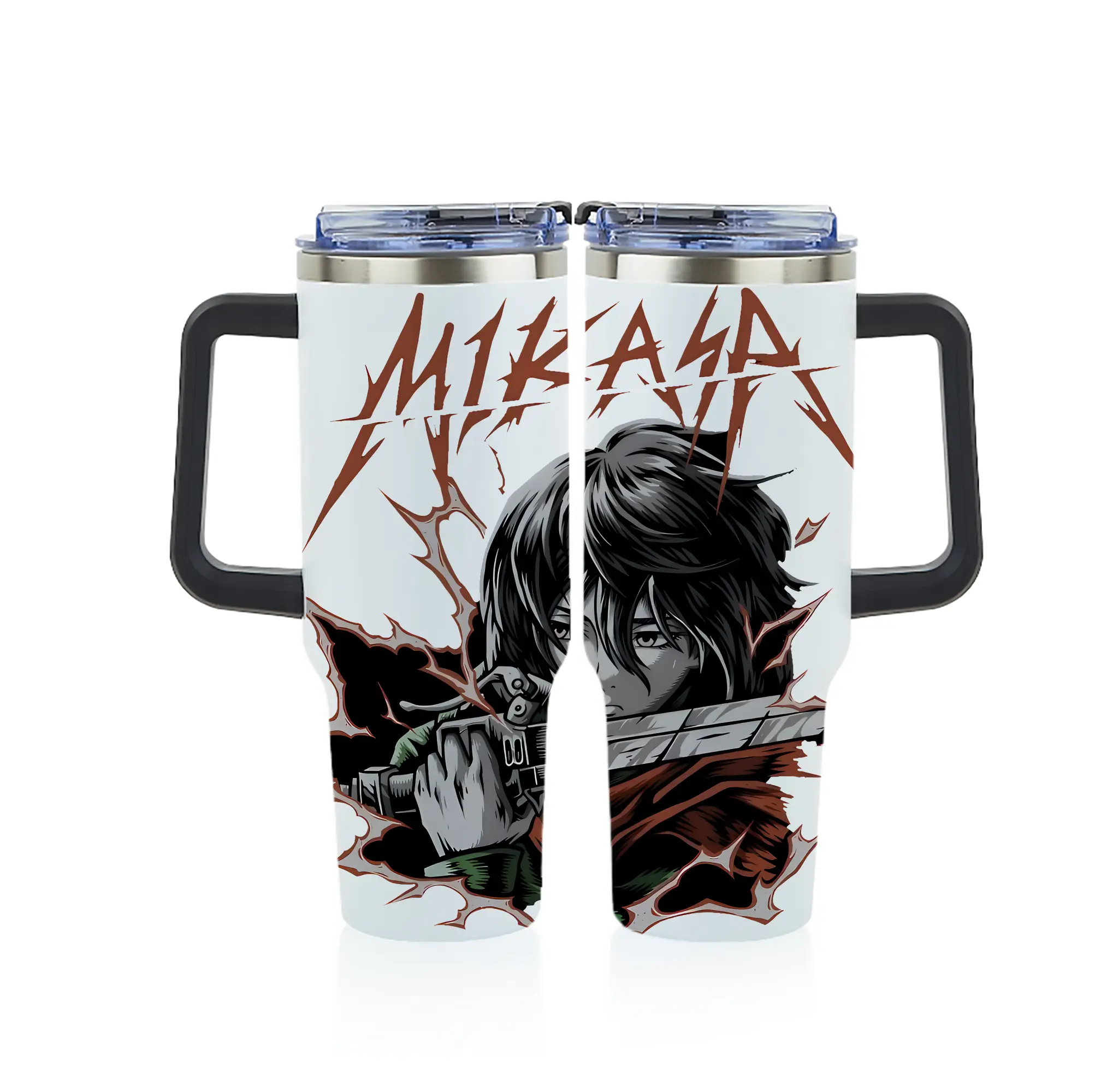 進撃の巨人 グッズ ミカサ・アッカーマン - 1200mL フルプリント車用タンブラー ・ 304ステンレス 内側 ・ 201ステンレス 外側 ・ 保温 保冷 ・ 通勤 ドライブ アウトドア用