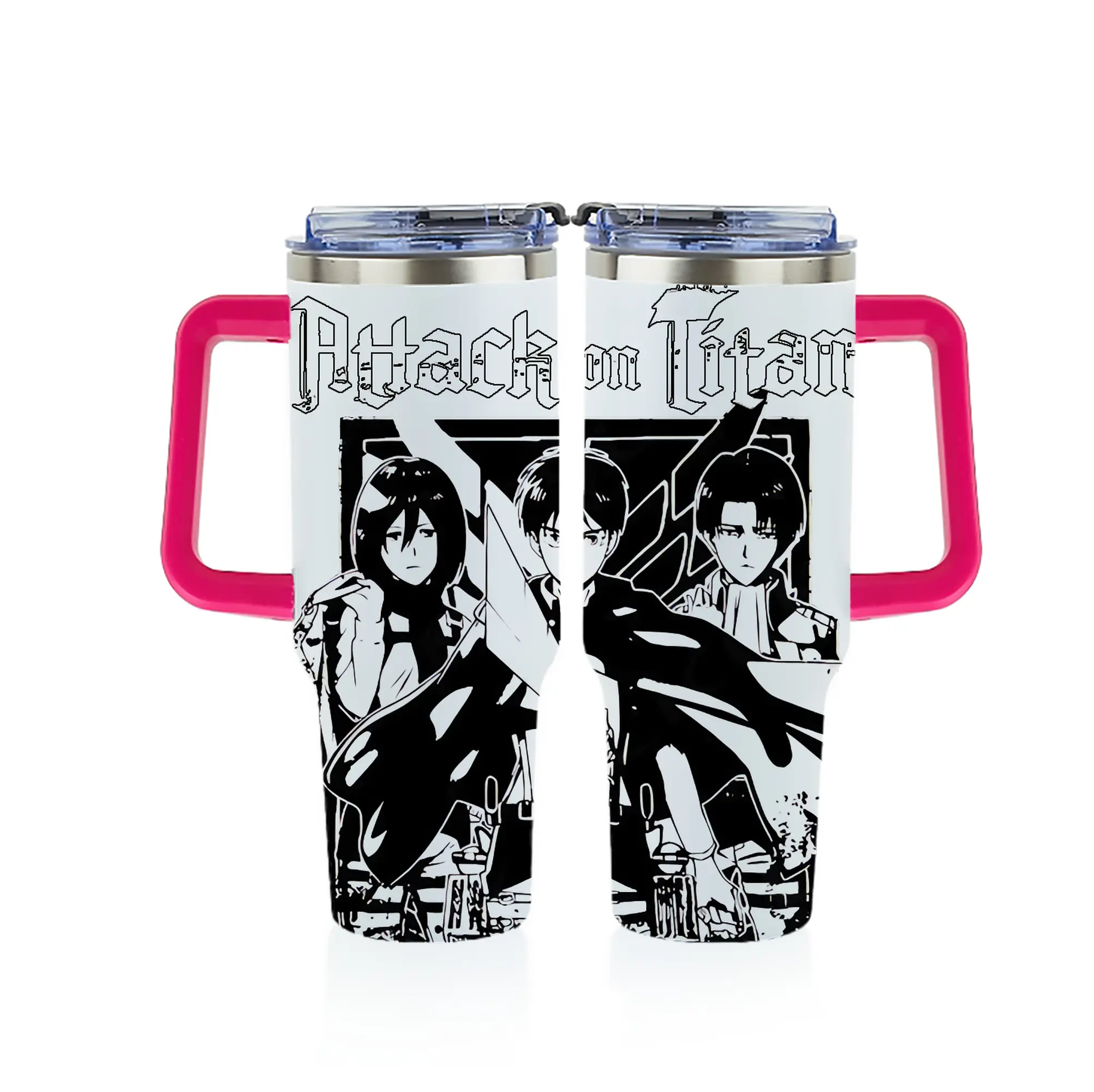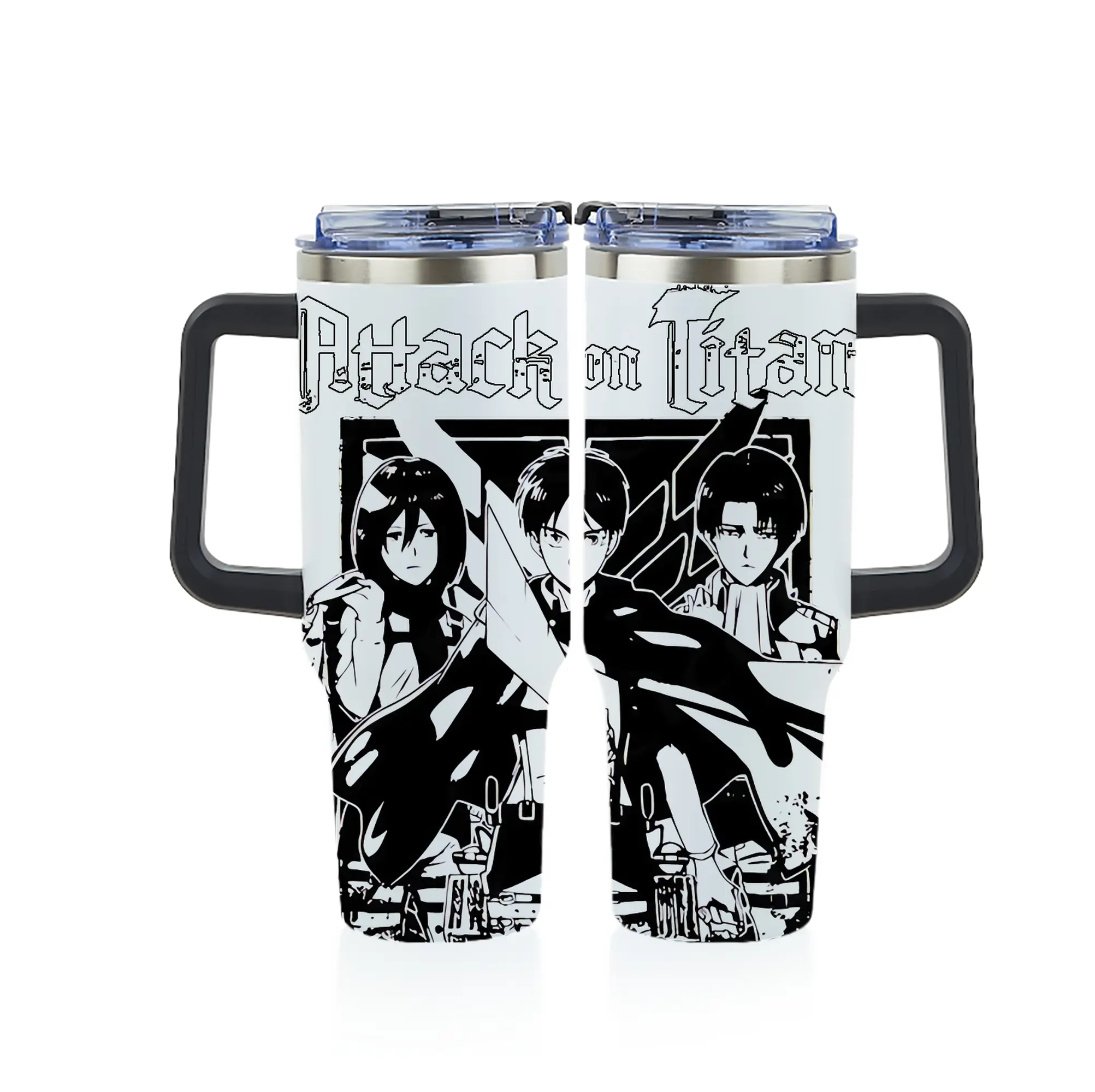 進撃の巨人 グッズ ミカサ・アッカーマン - 1200mL フルプリント車用タンブラー ・ 304ステンレス 内側 ・ 201ステンレス 外側 ・ 保温 保冷 ・ 通勤 ドライブ アウトドア用