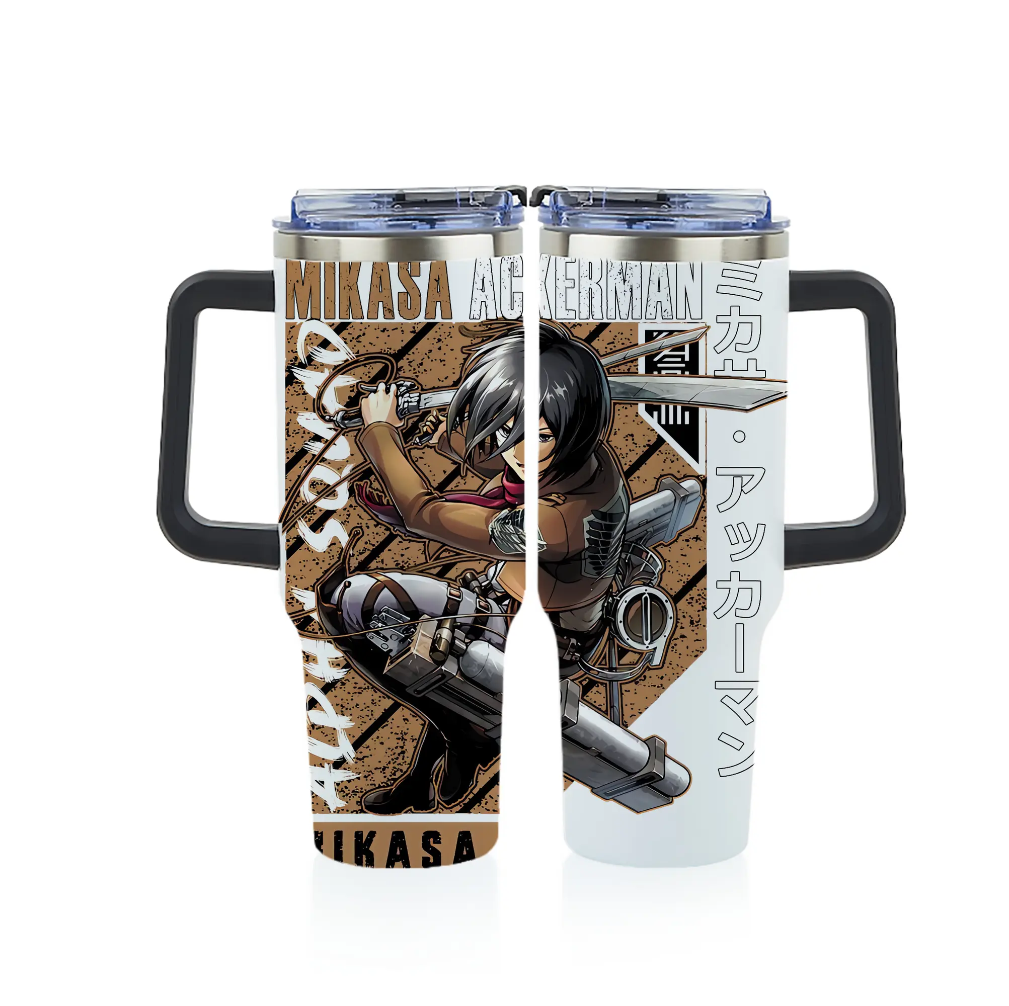 進撃の巨人 グッズ ミカサ・アッカーマン - 1200mL フルプリント車用タンブラー ・ 304ステンレス 内側 ・ 201ステンレス 外側 ・ 保温 保冷 ・ 通勤 ドライブ アウトドア用