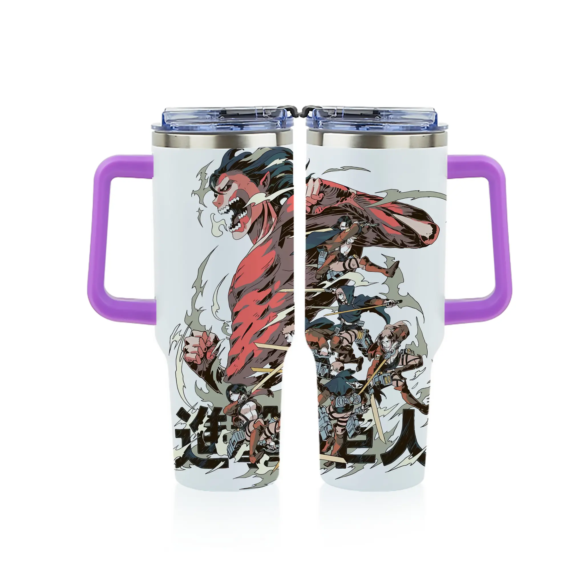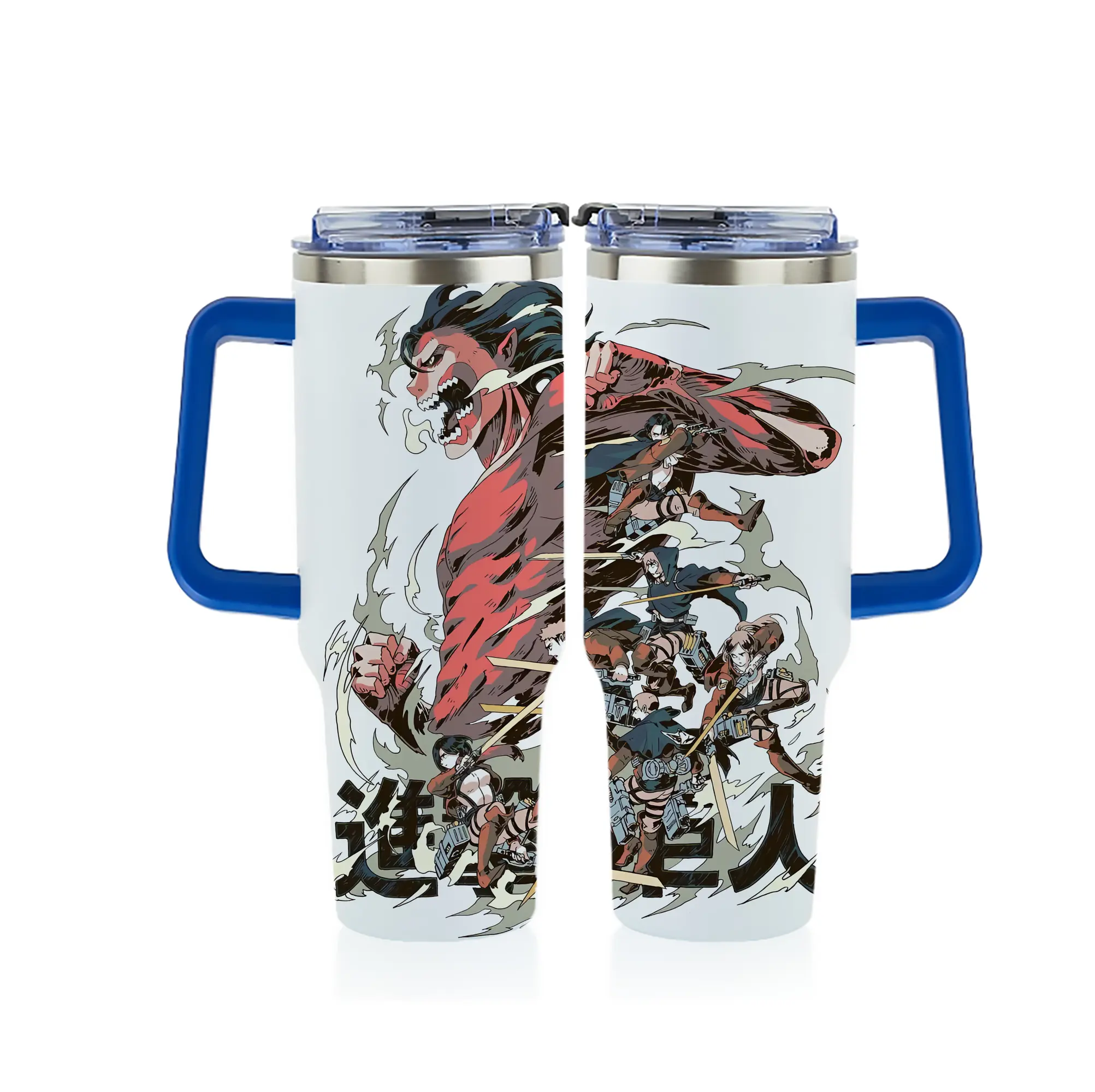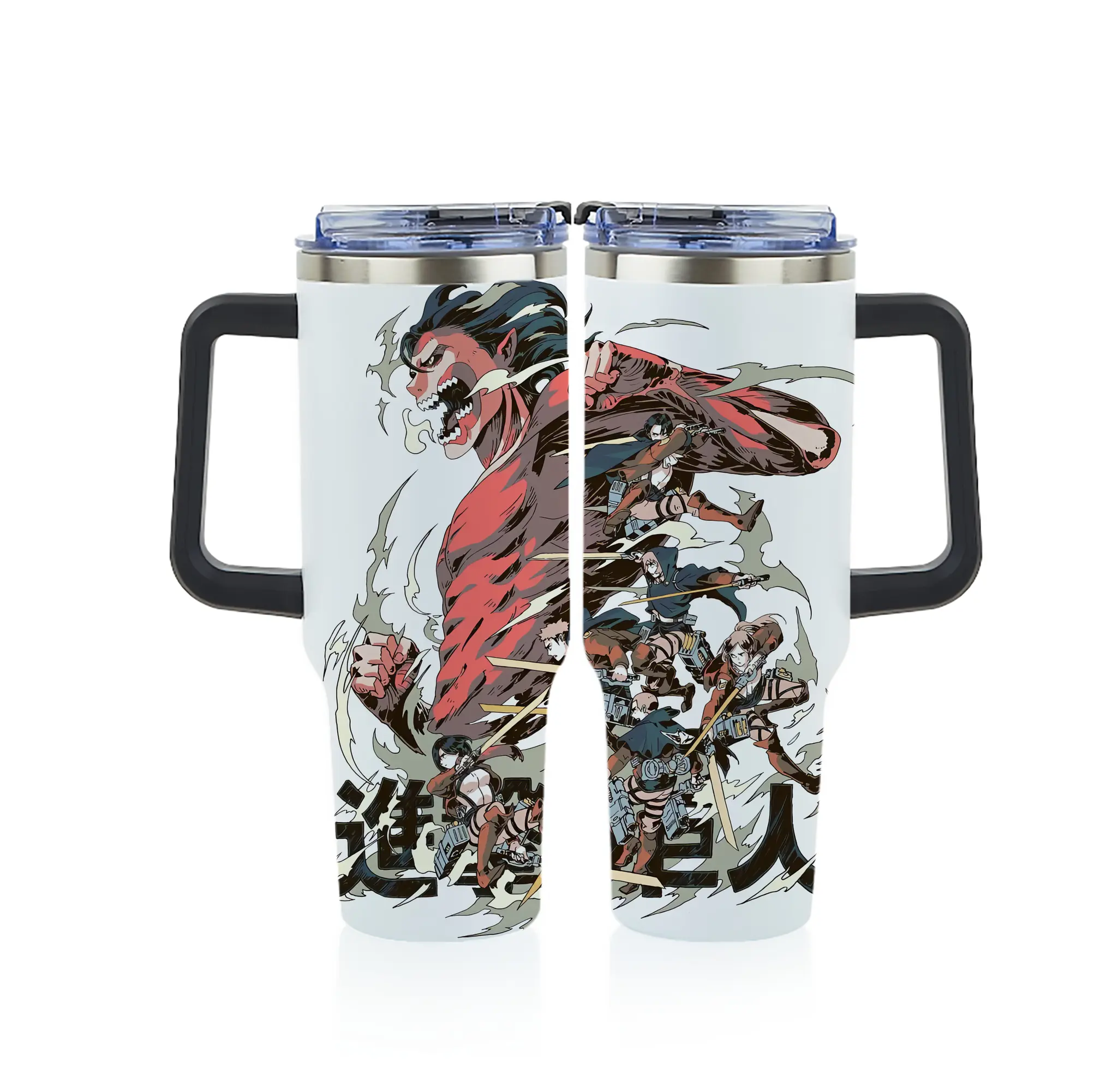 進撃の巨人 グッズ ミカサ・アッカーマン - 1200mL フルプリント車用タンブラー ・ 304ステンレス 内側 ・ 201ステンレス 外側 ・ 保温 保冷 ・ 通勤 ドライブ アウトドア用