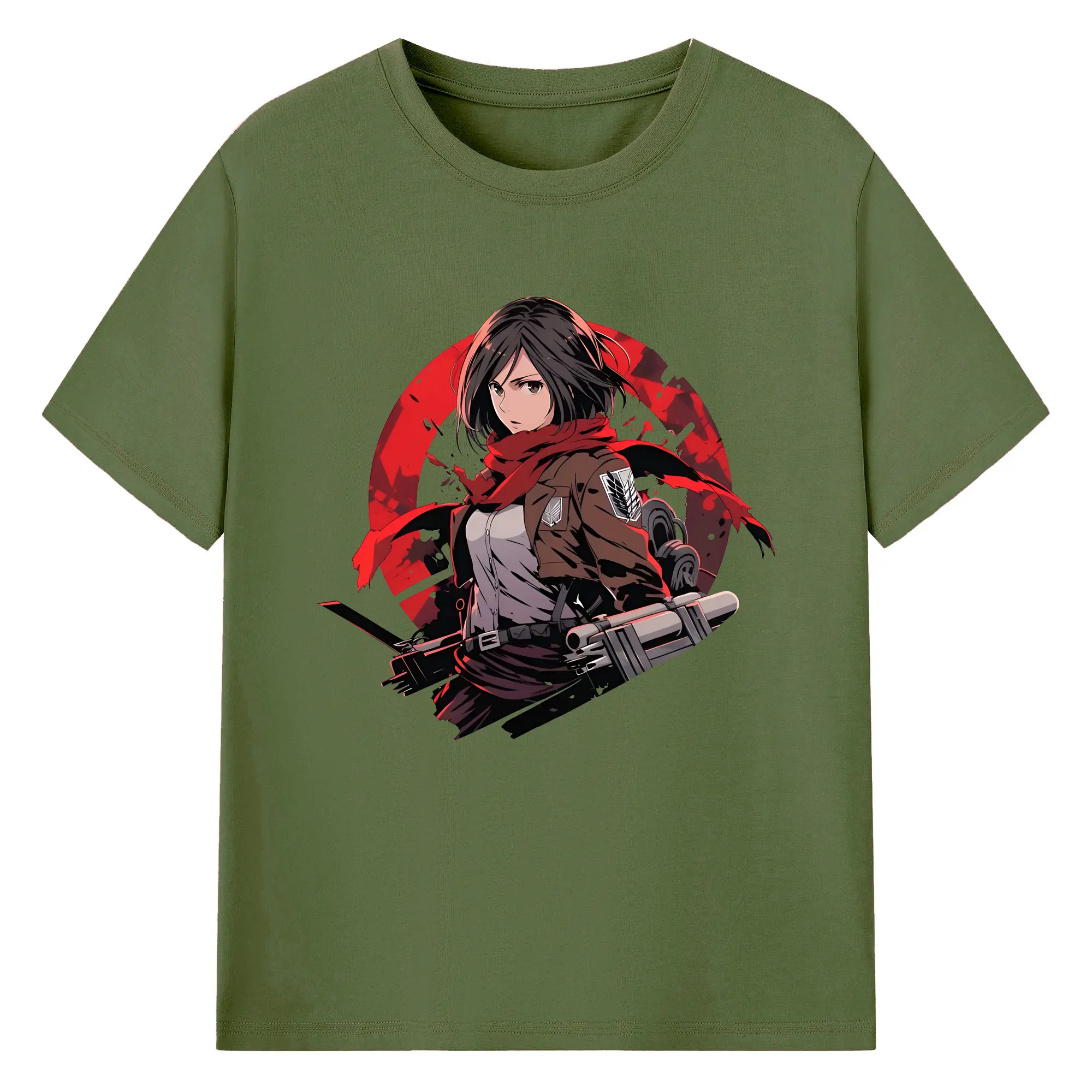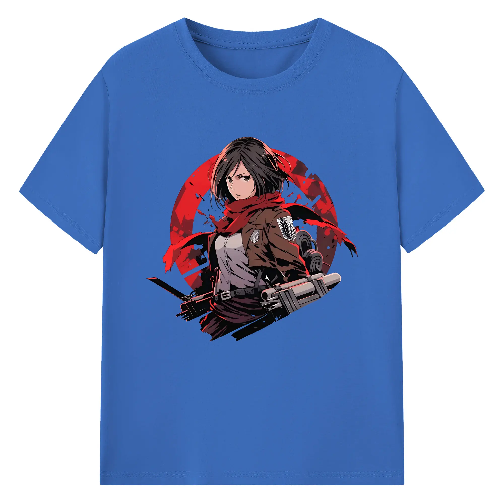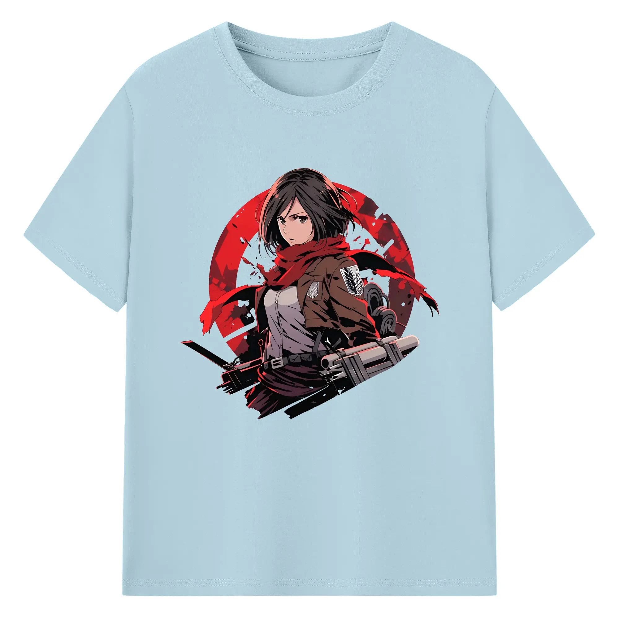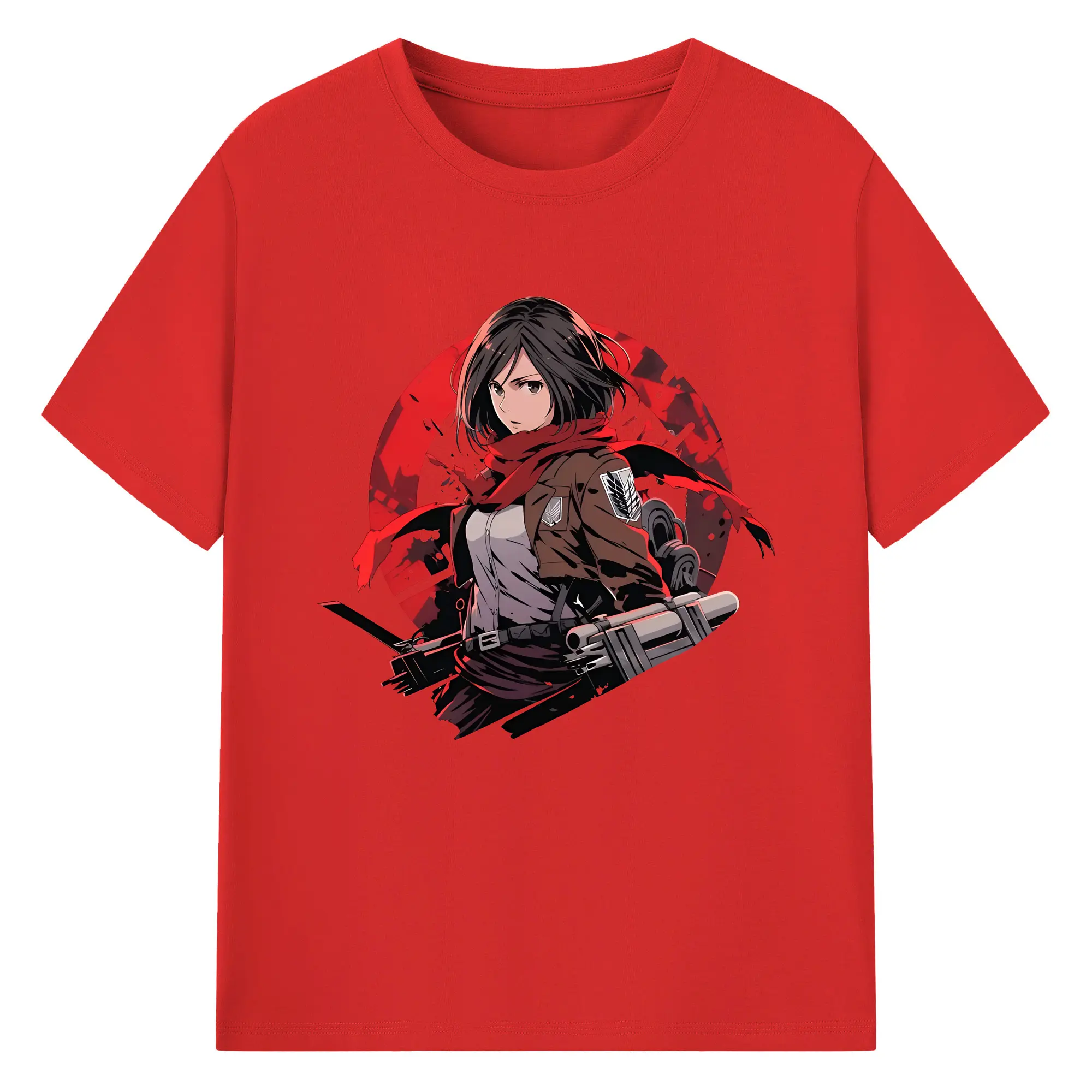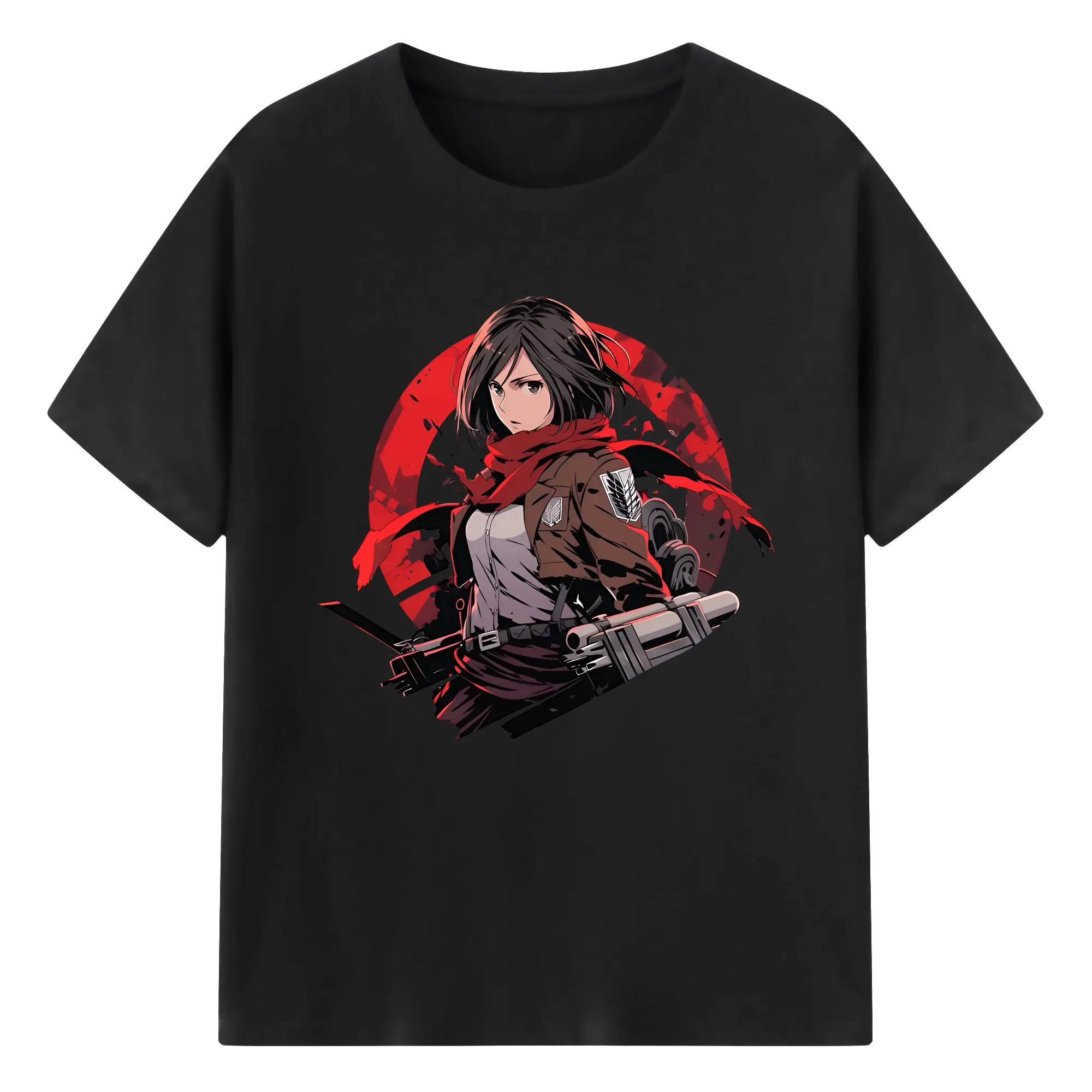 進撃の巨人 グッズ ミカサ・アッカーマン - 綿100% 半袖Tシャツ ・ バックプリント ・ 快適 通気性 ・ 日常使い 散歩 スポーツ用