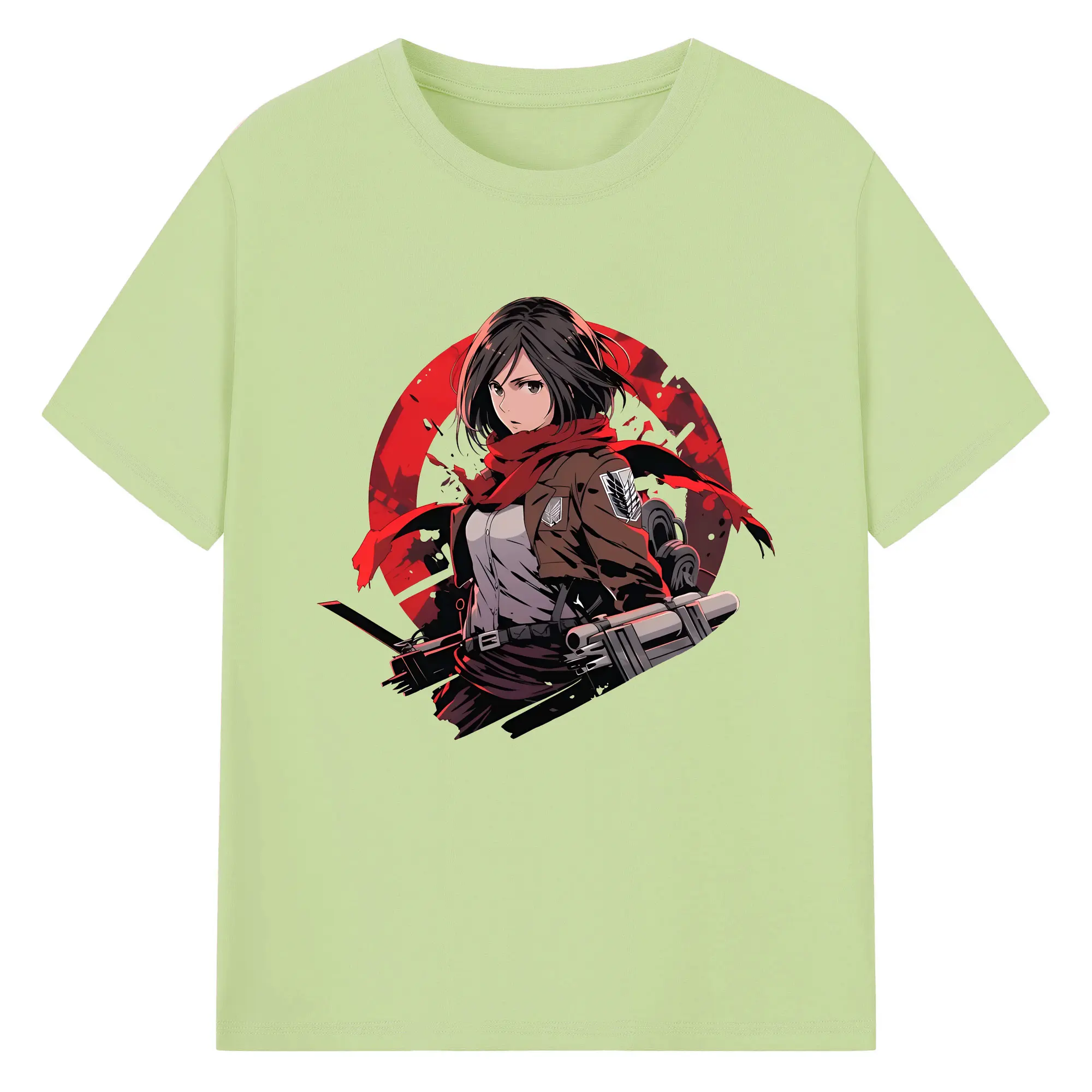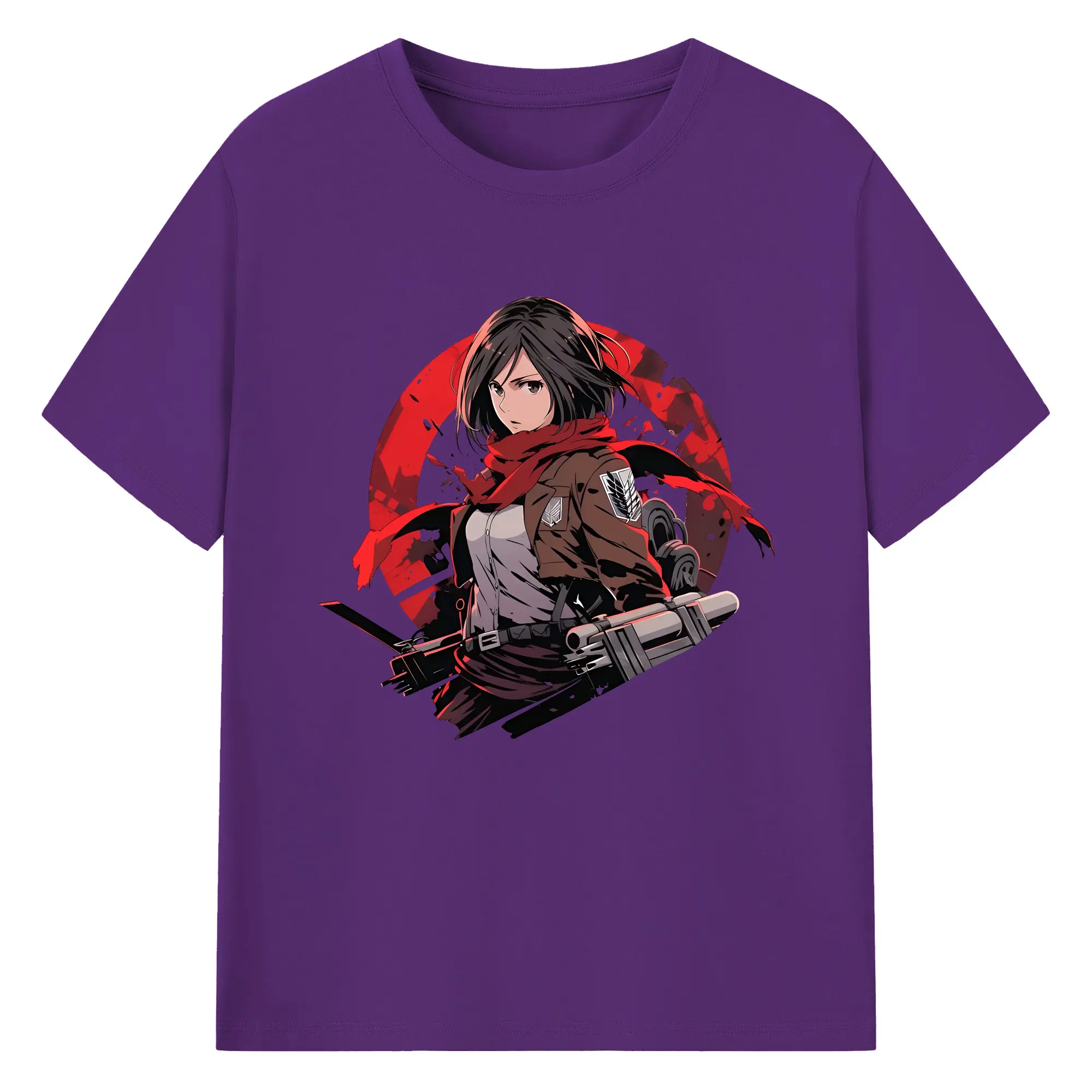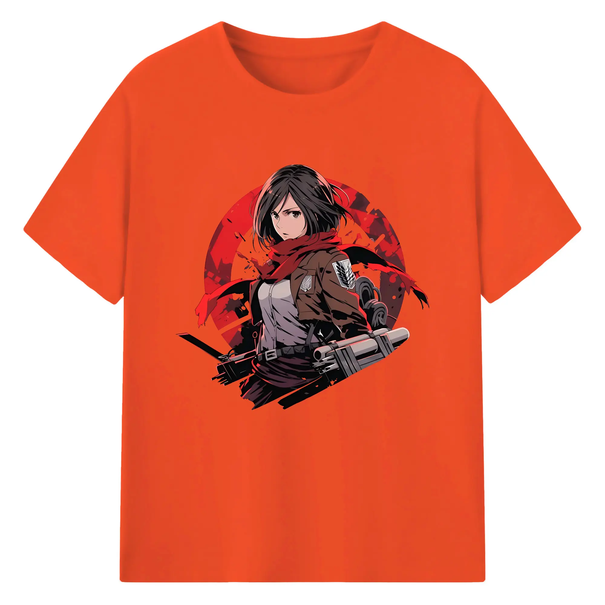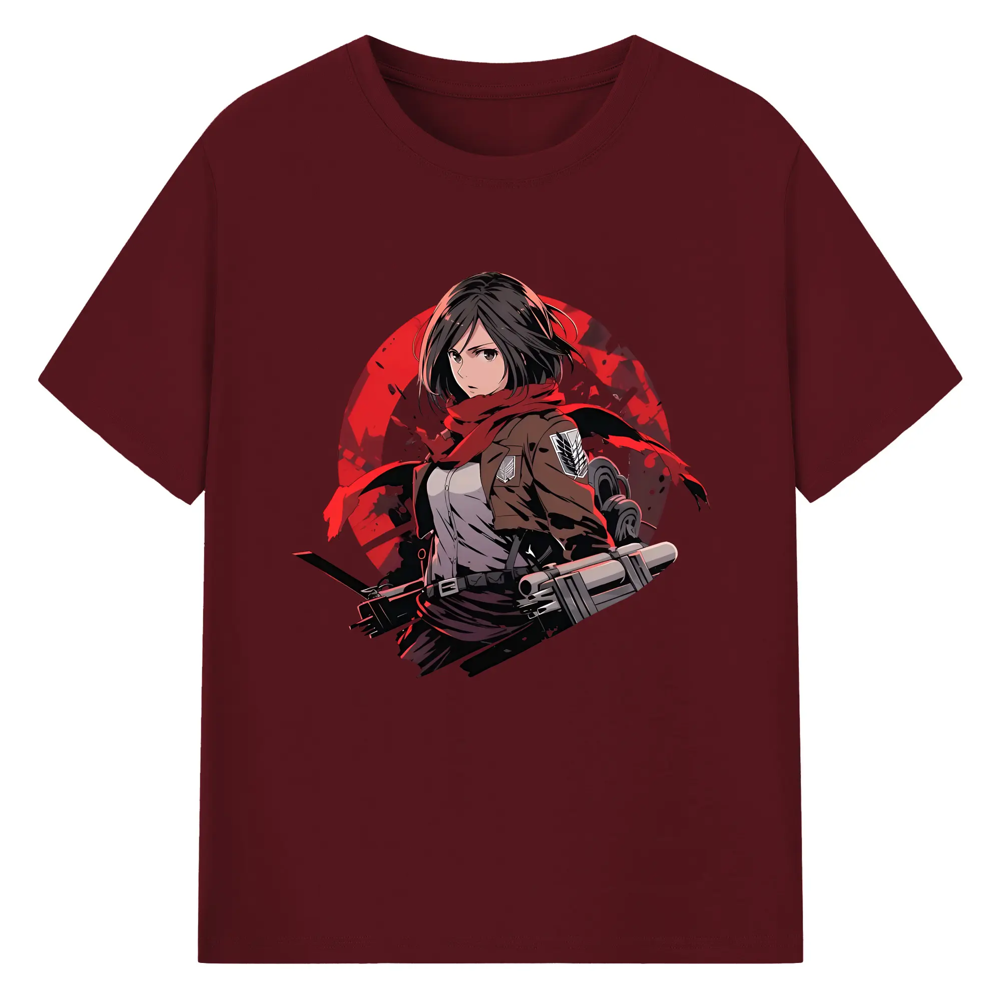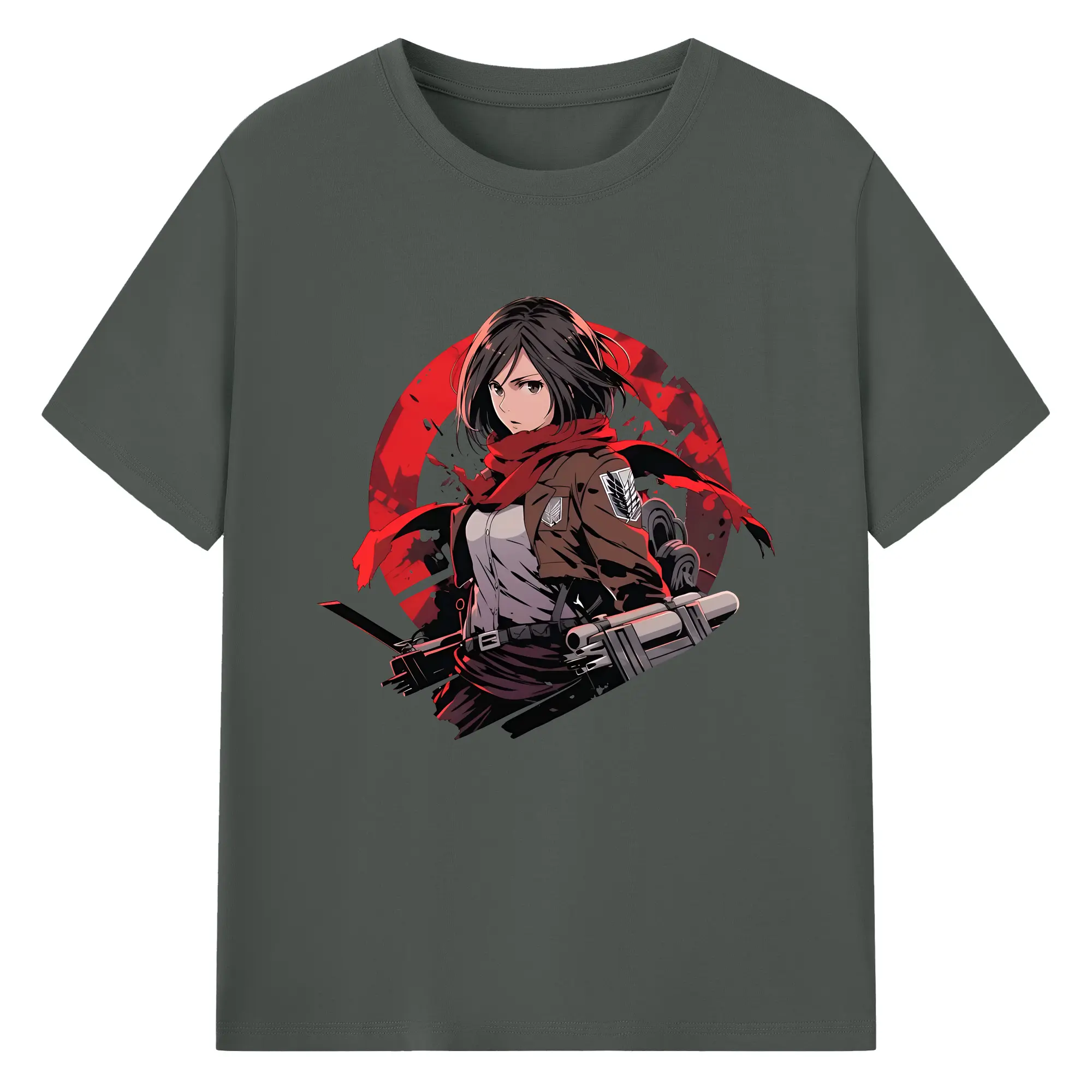 進撃の巨人 グッズ ミカサ・アッカーマン - 綿100% 半袖Tシャツ ・ バックプリント ・ 快適 通気性 ・ 日常使い 散歩 スポーツ用