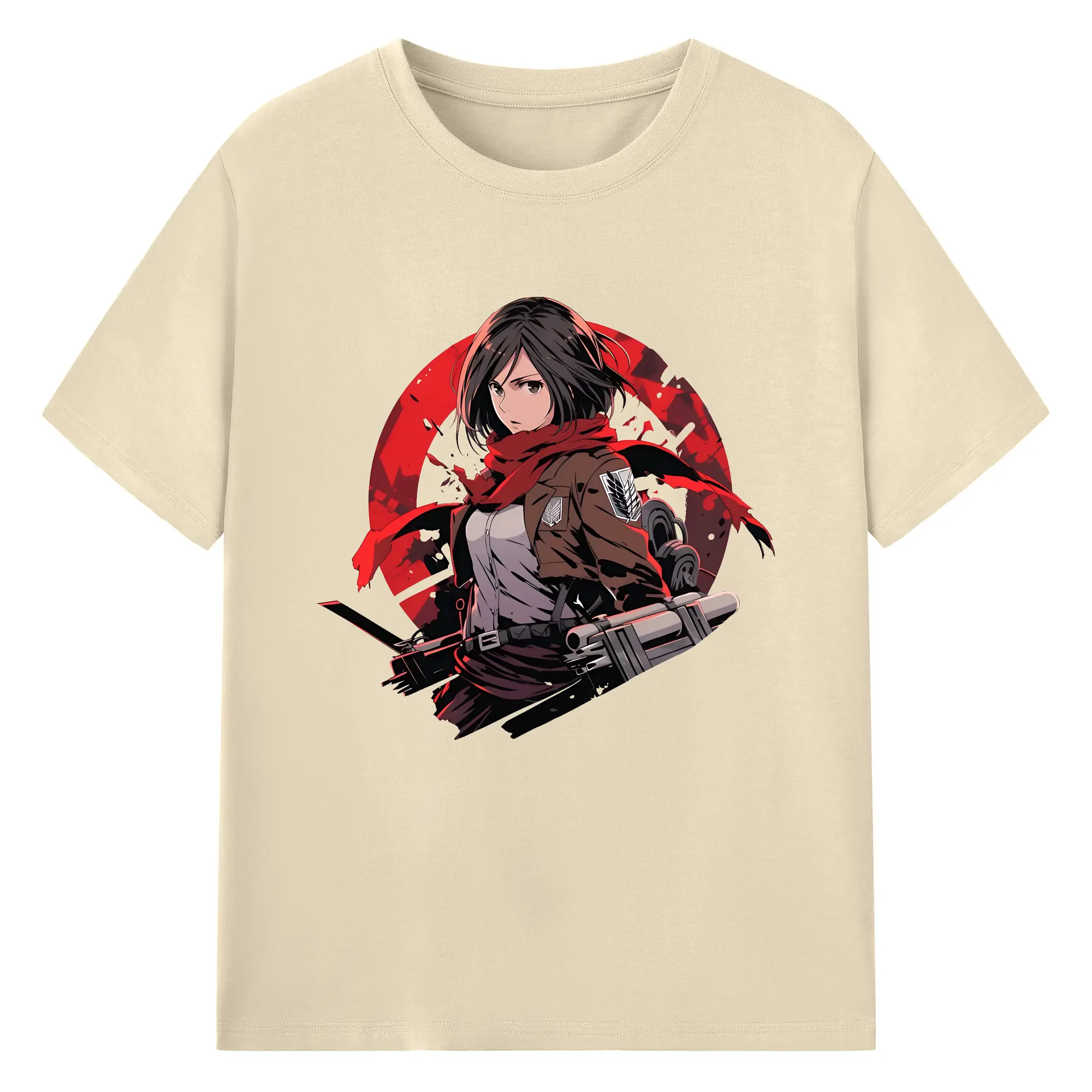進撃の巨人 グッズ ミカサ・アッカーマン - 綿100% ヴィンテージ風 半袖Tシャツ ・ フロントプリント ・ 柔らか肌触り ・ 通気性 快適 ・ スポーツ カジュアル 外出用