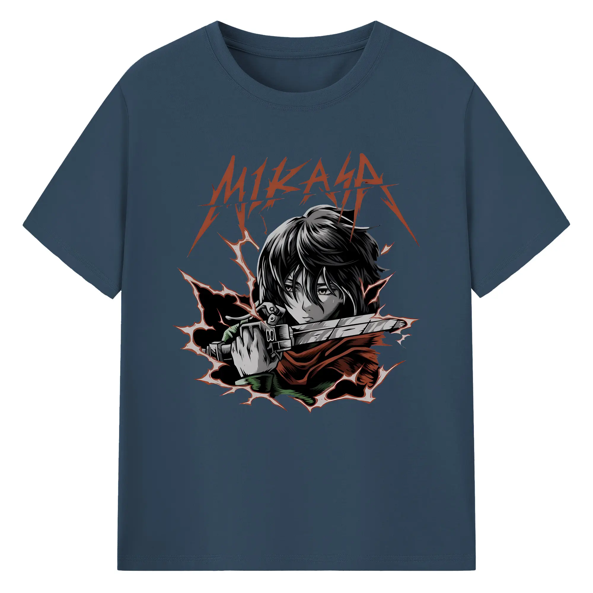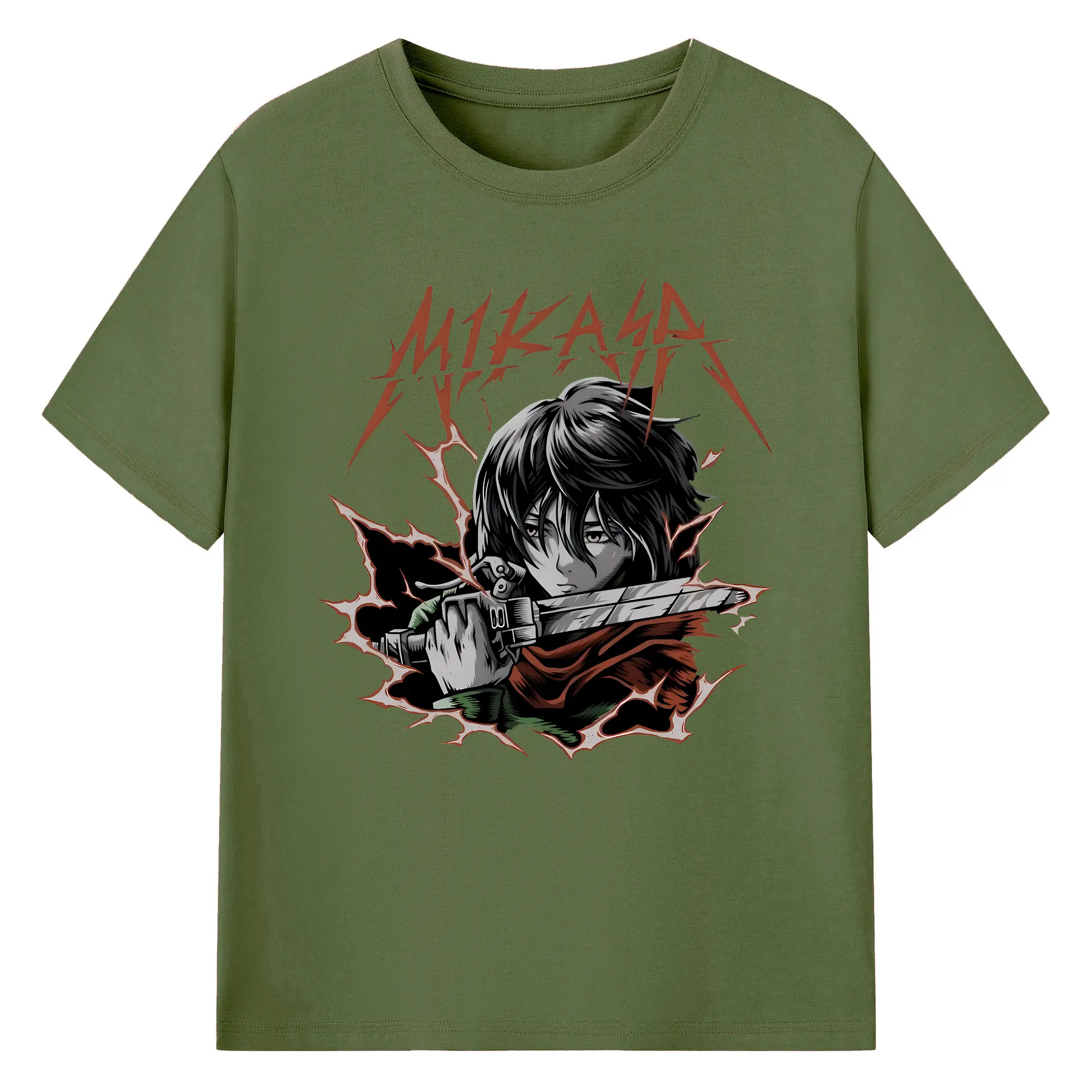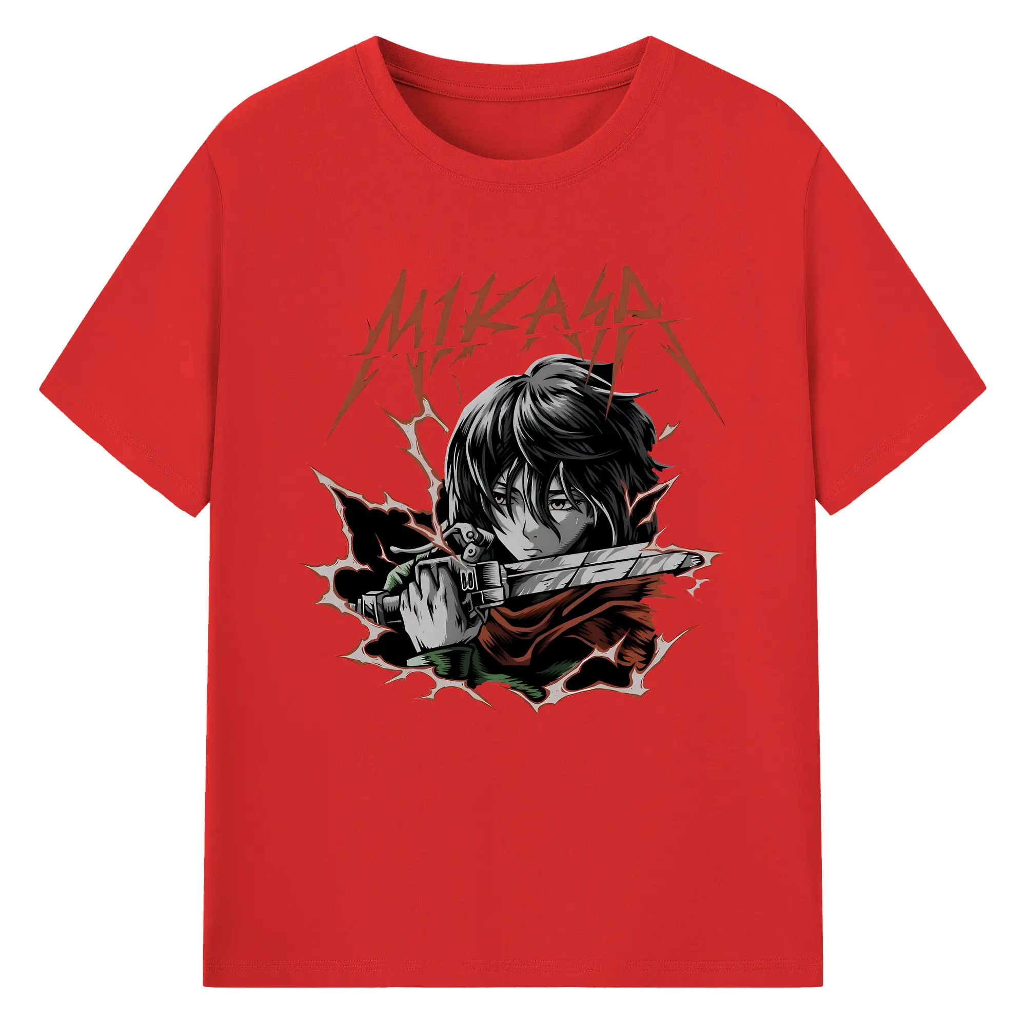 進撃の巨人 グッズ ミカサ・アッカーマン - 綿100% 半袖Tシャツ ・ バックプリント ・ 快適 通気性 ・ 日常使い 散歩 スポーツ用