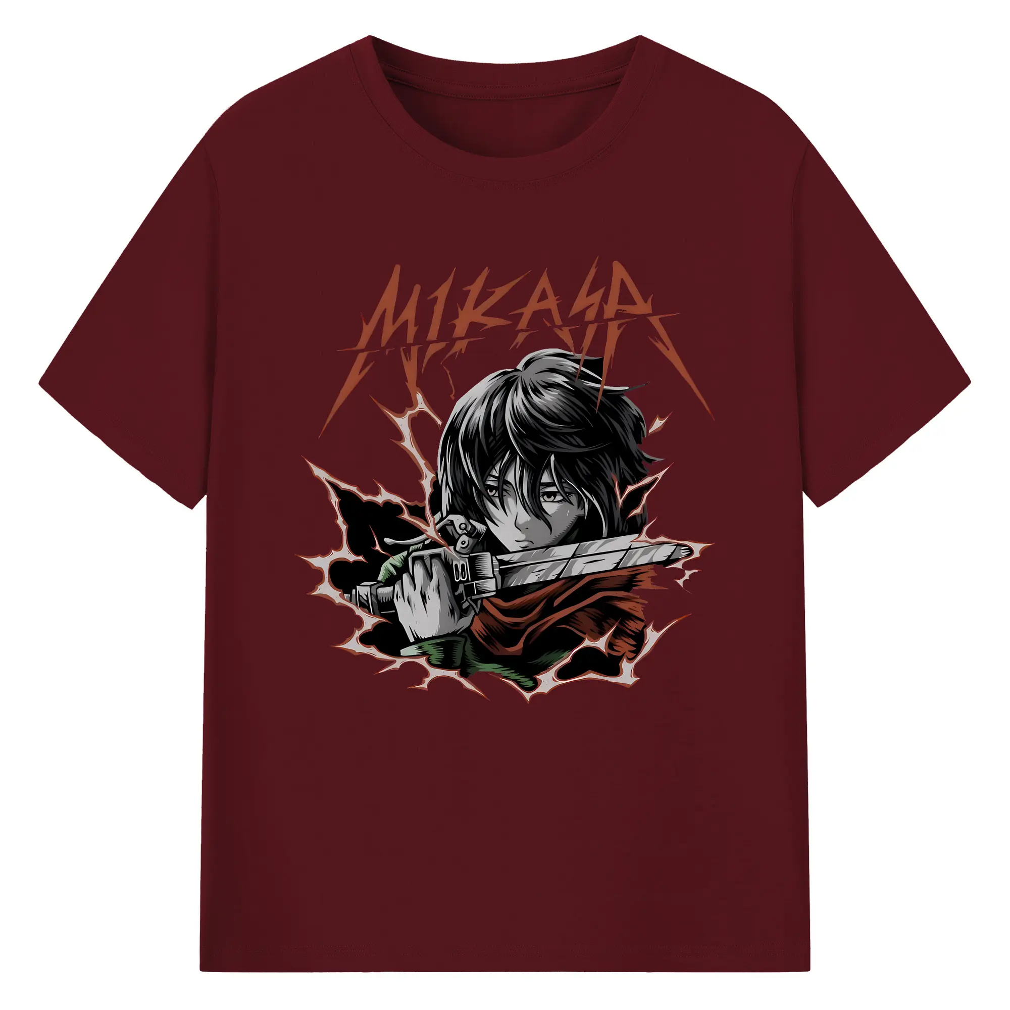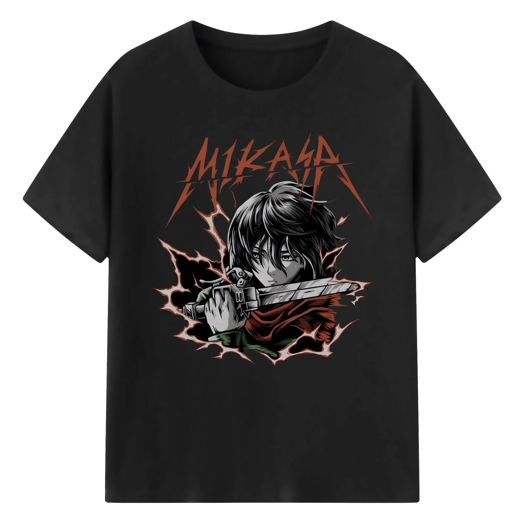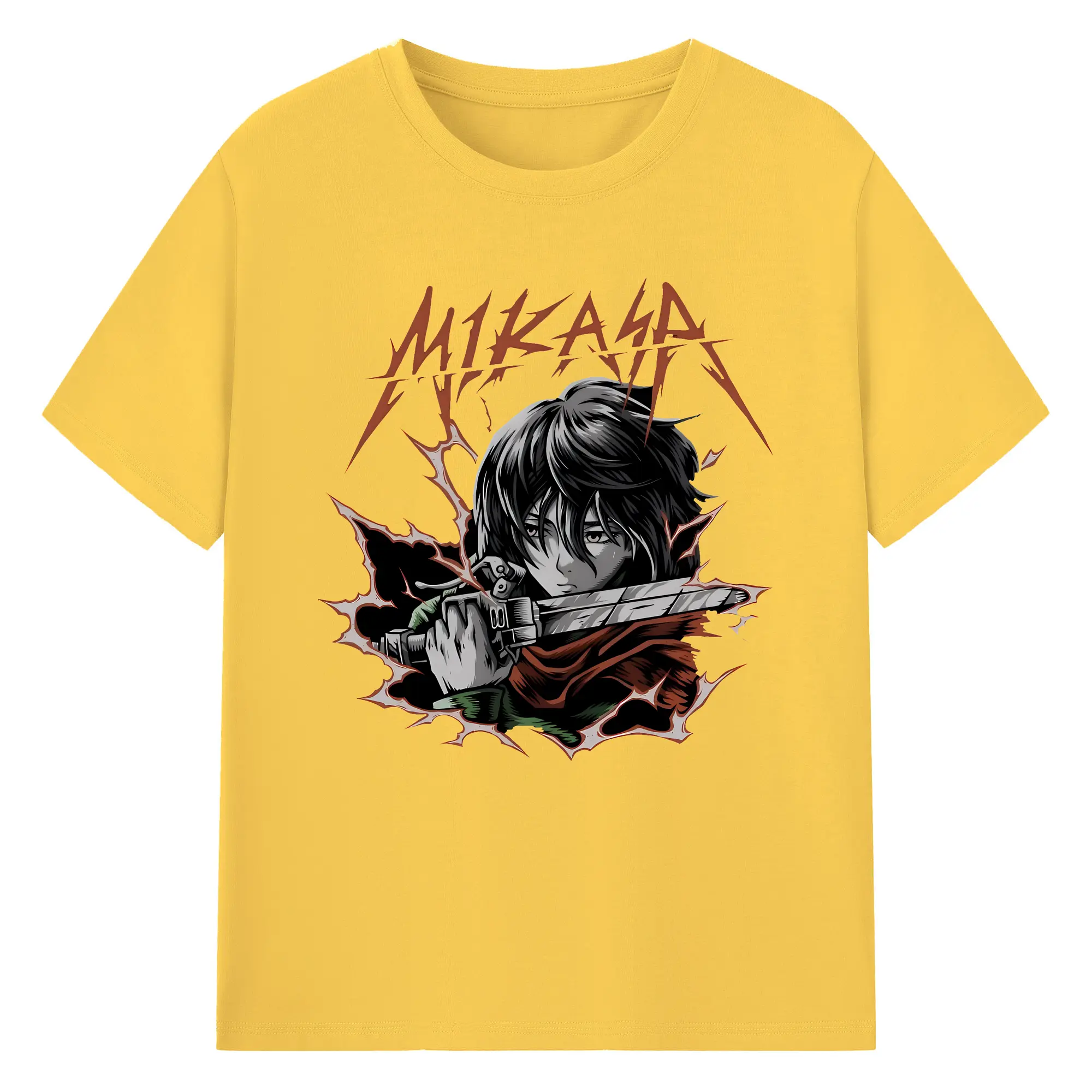 進撃の巨人 グッズ ミカサ・アッカーマン - 綿100% 半袖Tシャツ ・ バックプリント ・ 快適 通気性 ・ 日常使い 散歩 スポーツ用