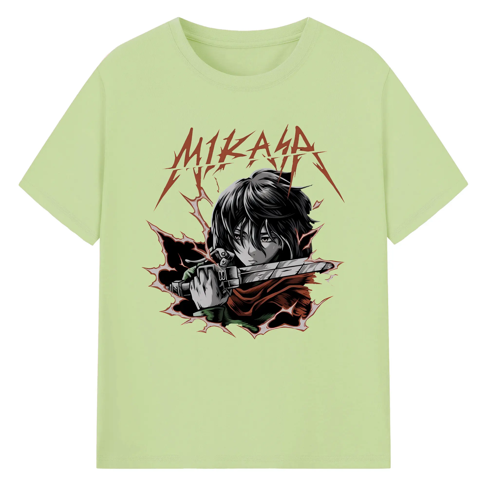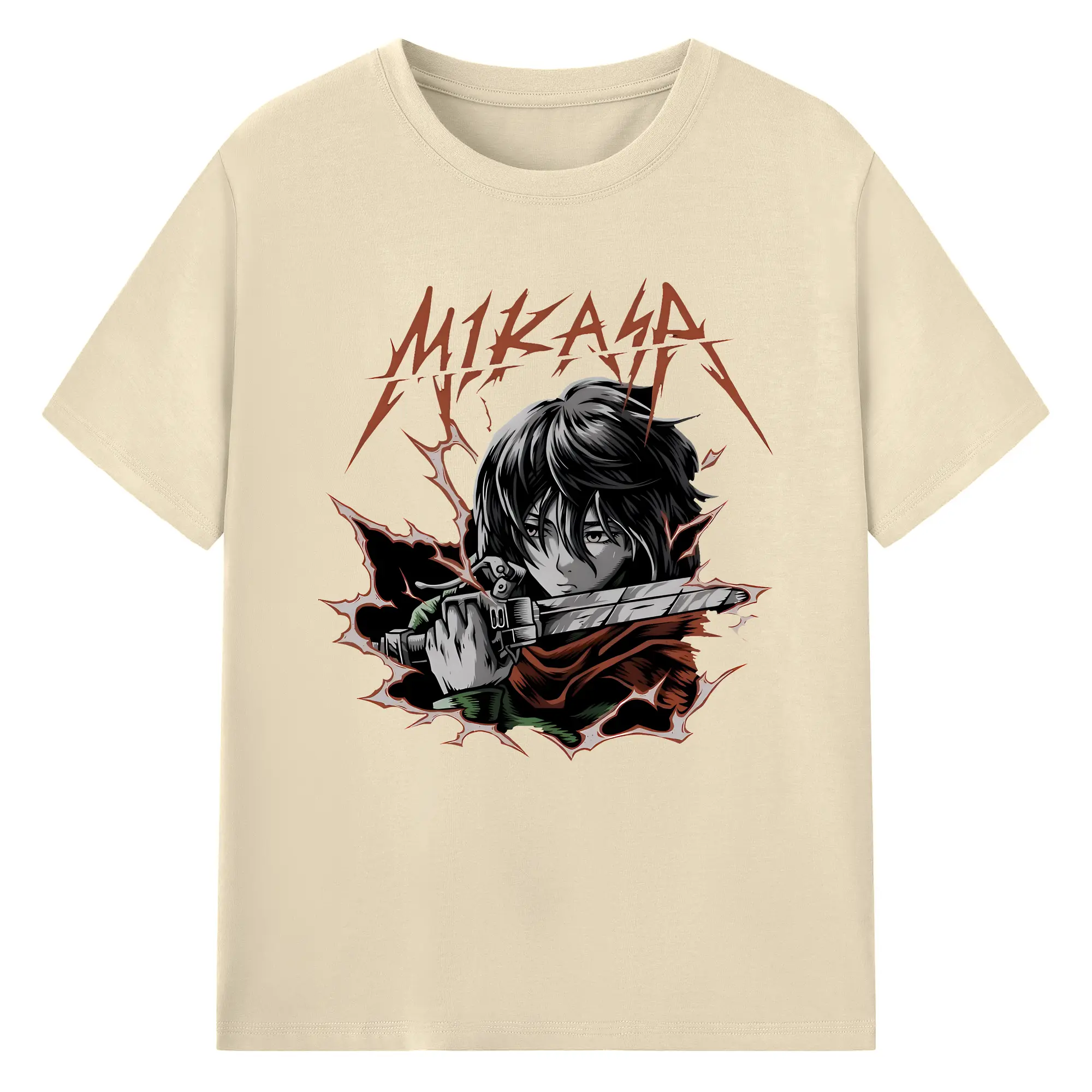 進撃の巨人 グッズ ミカサ・アッカーマン - 綿100% ヴィンテージ風 半袖Tシャツ ・ フロントプリント ・ 柔らか肌触り ・ 通気性 快適 ・ スポーツ カジュアル 外出用