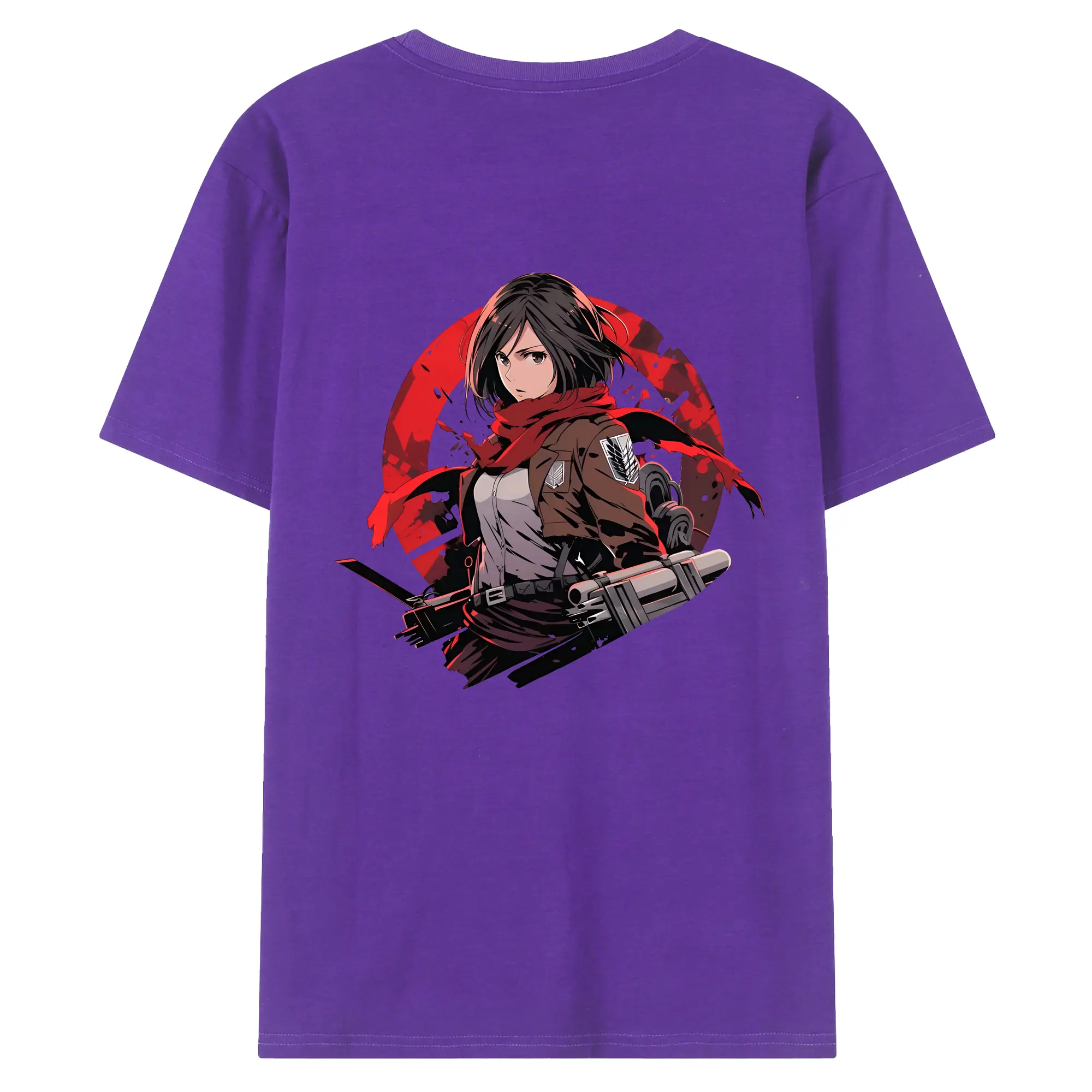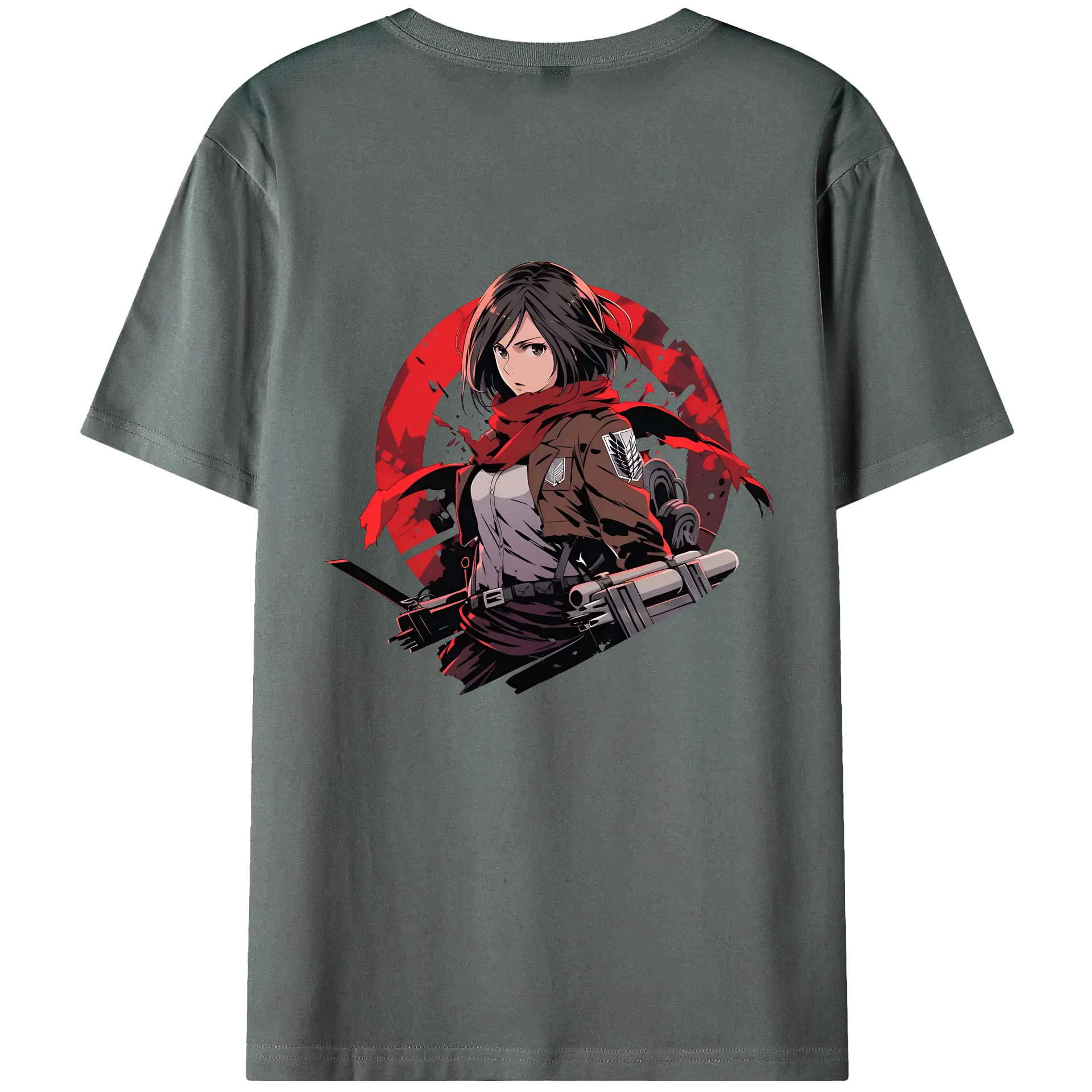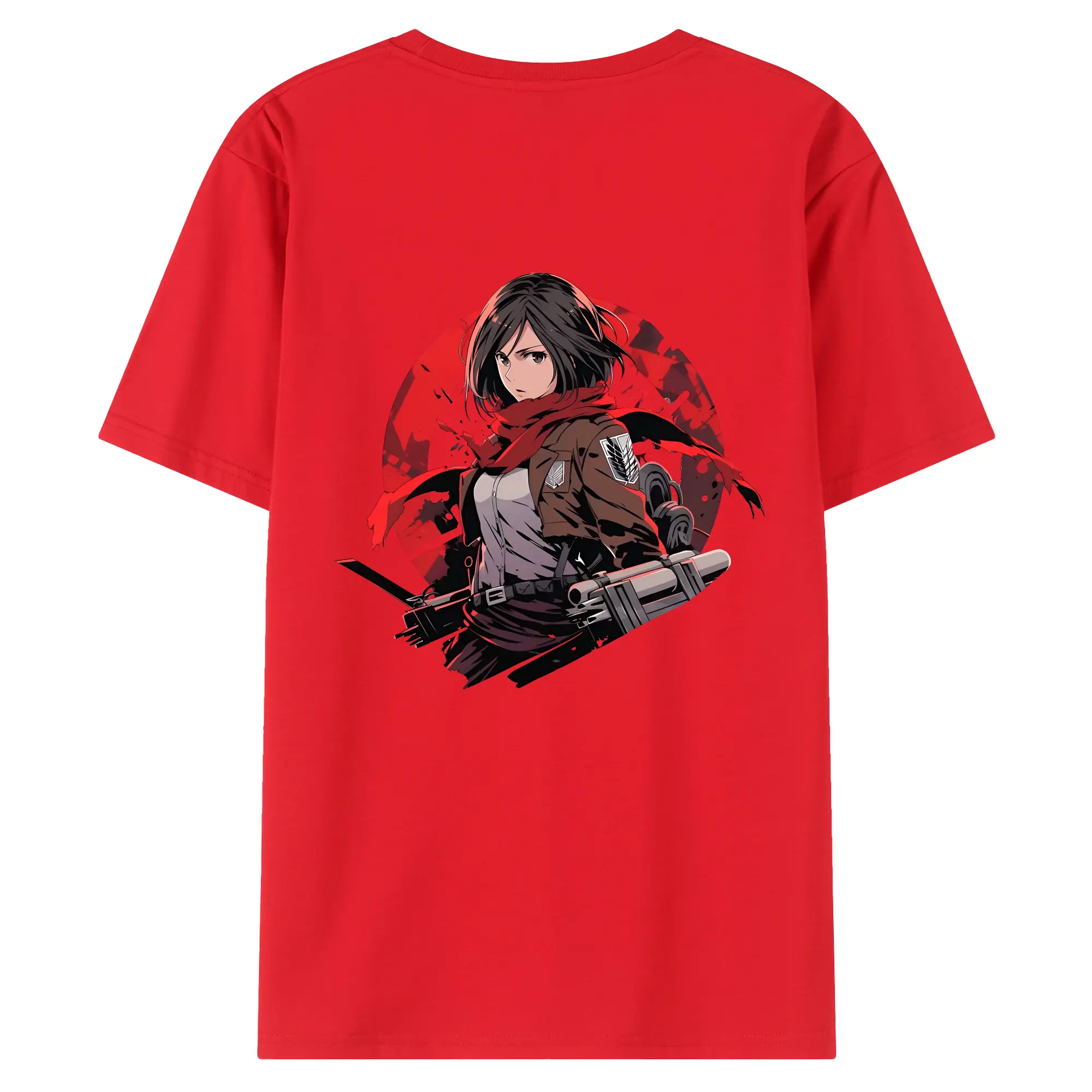 進撃の巨人 グッズ ミカサ・アッカーマン - 綿100% ヴィンテージ風 半袖Tシャツ ・ 背面プリント ・ 柔らか肌触り ・ 通気性 快適 ・ スポーツ カジュアル 外出用