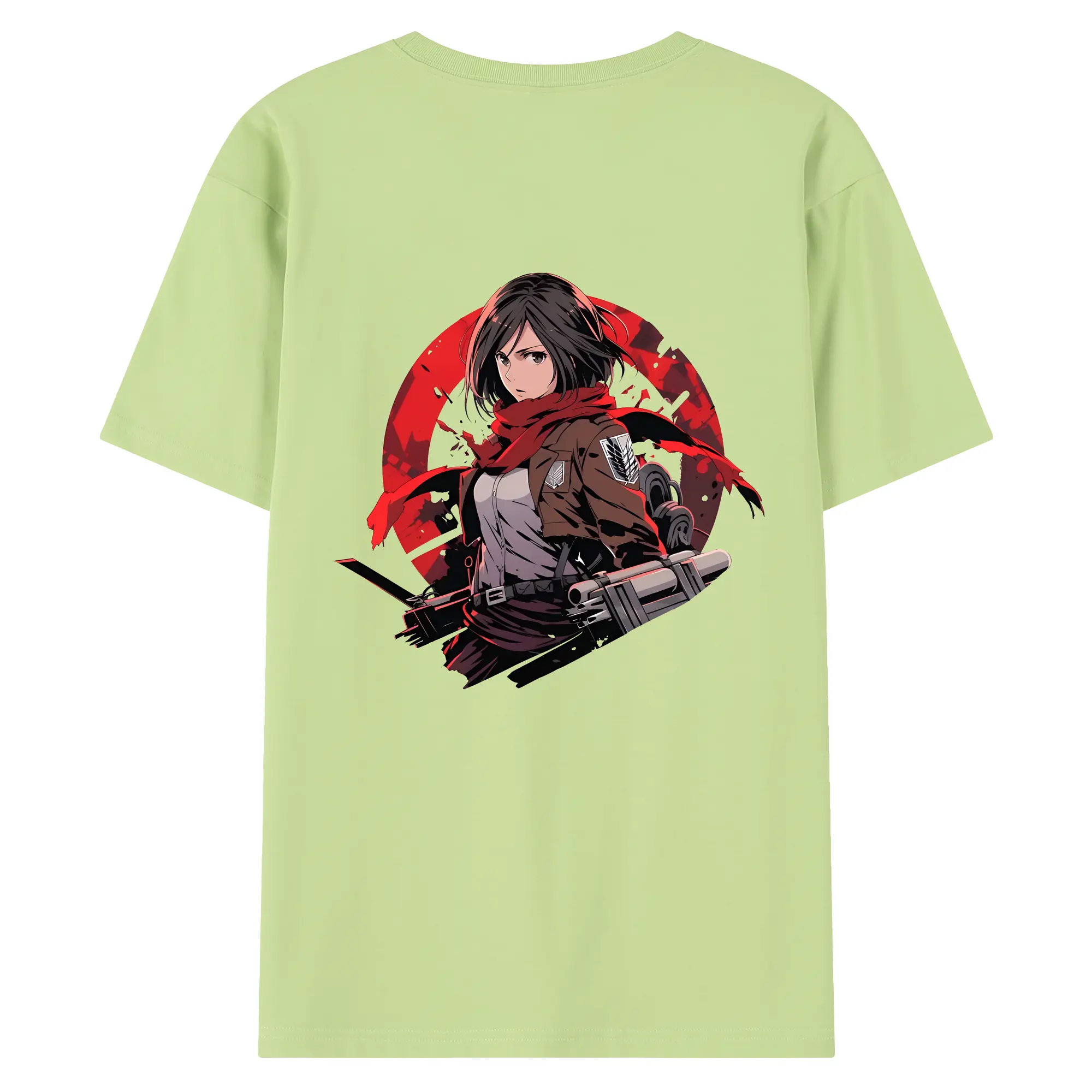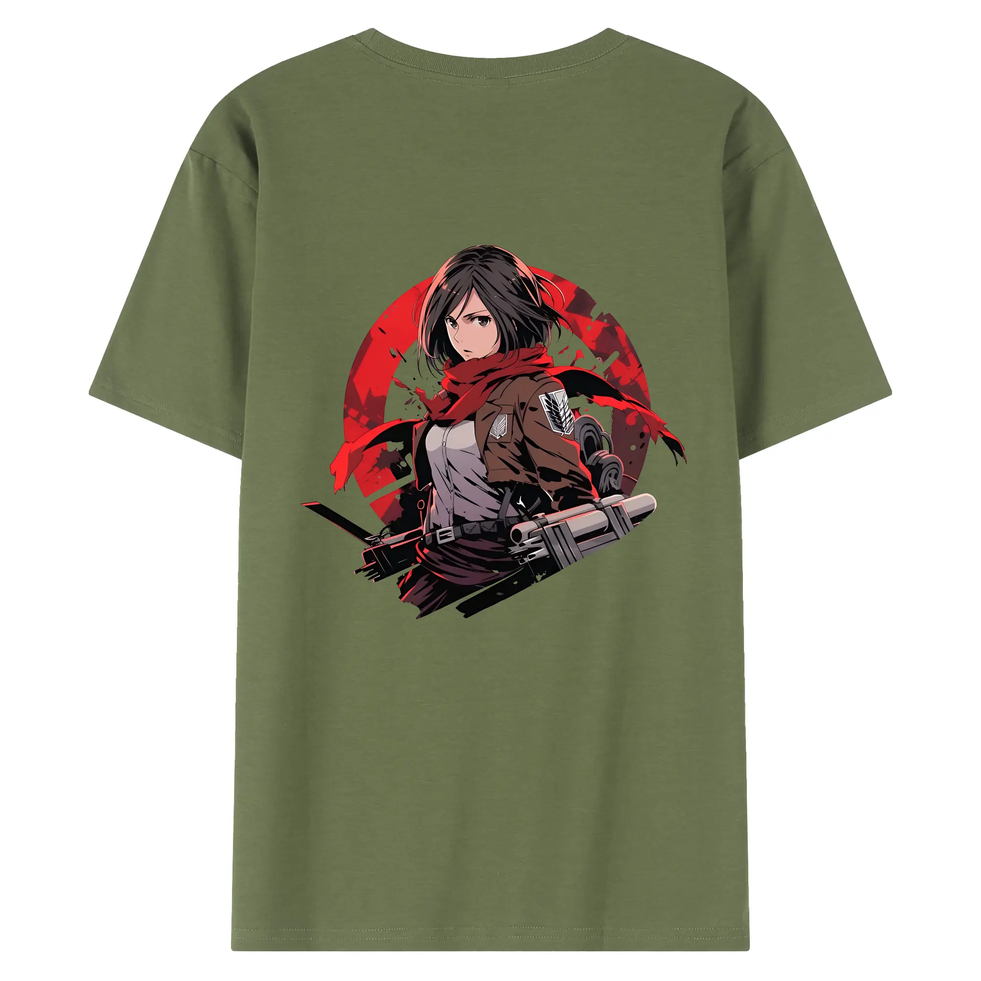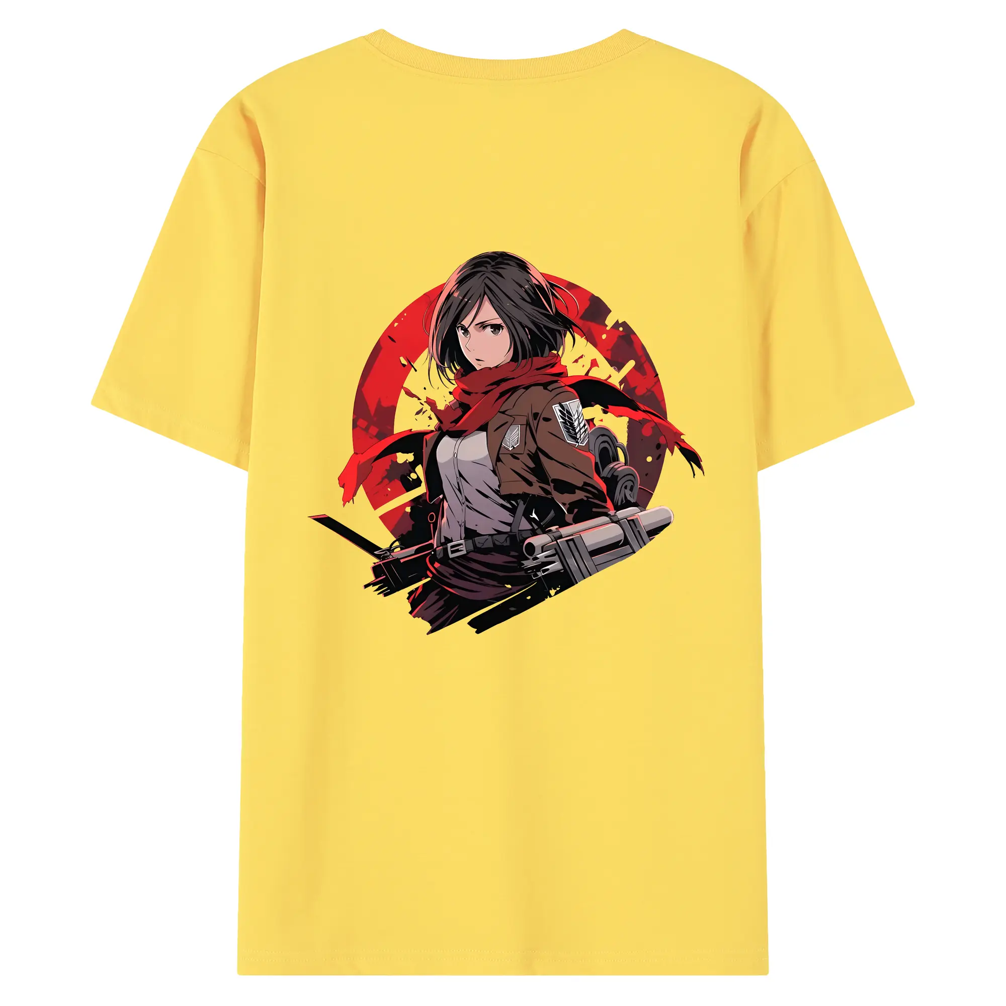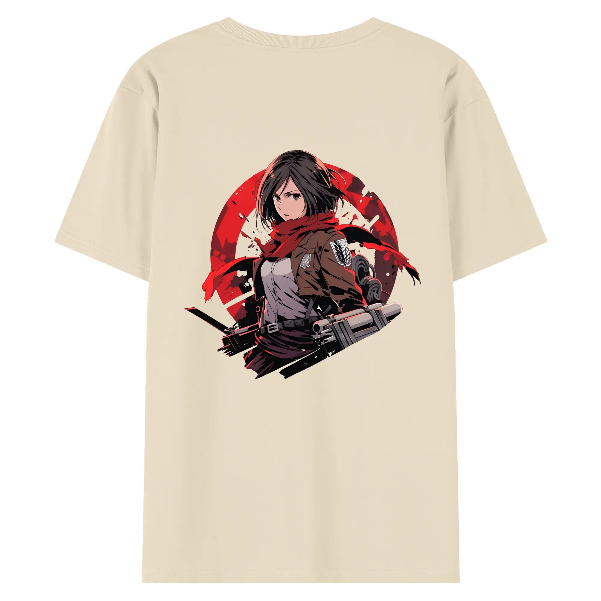 進撃の巨人 グッズ ミカサ・アッカーマン - 綿100% ヴィンテージ風 半袖Tシャツ ・ 背面プリント ・ 柔らか肌触り ・ 通気性 快適 ・ スポーツ カジュアル 外出用