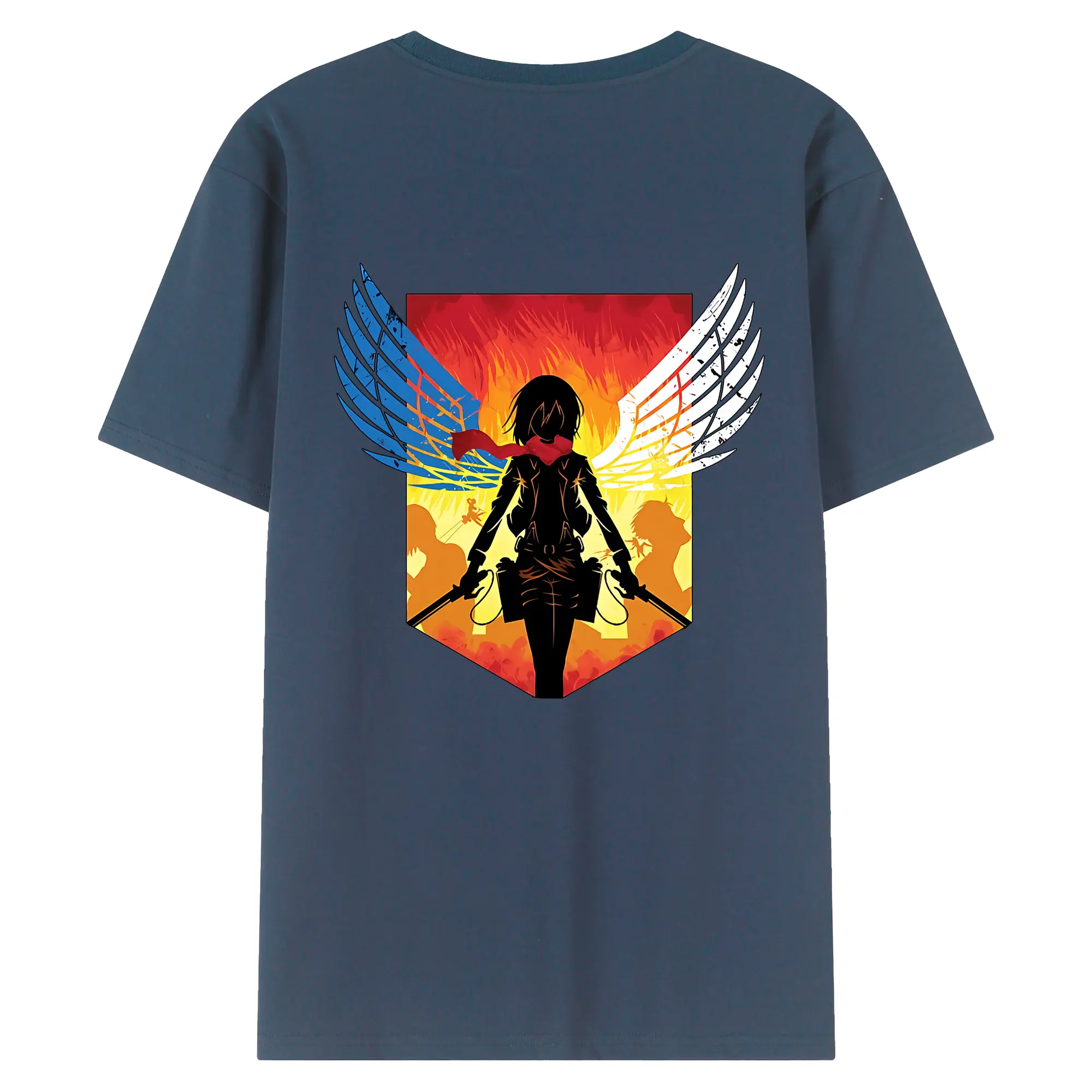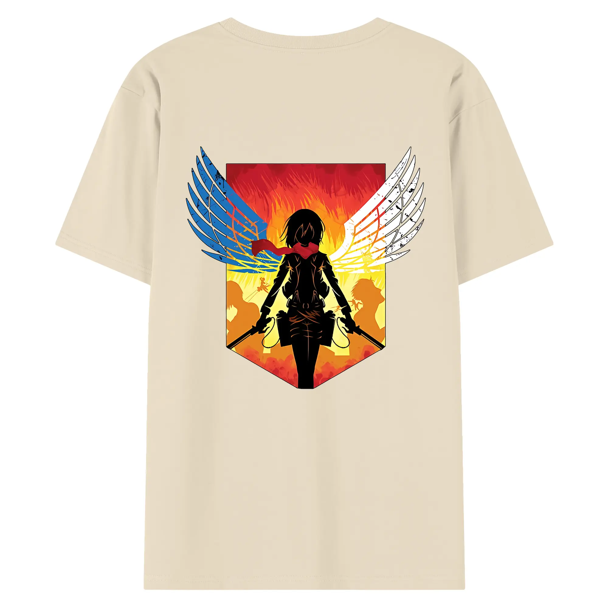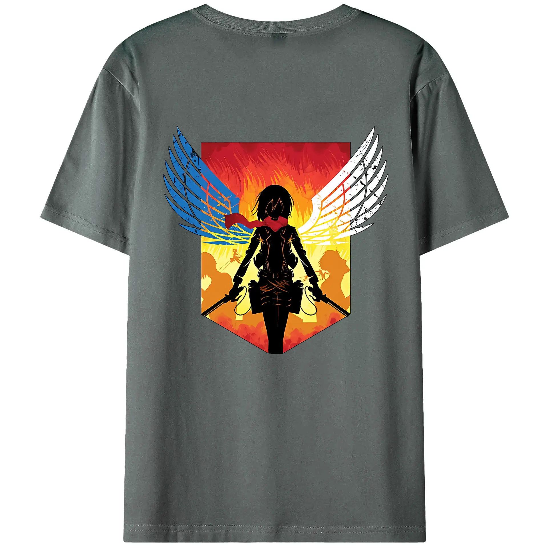 進撃の巨人 グッズ ミカサ・アッカーマン - 綿100% ヴィンテージ風 半袖Tシャツ ・ 背面プリント ・ 柔らか肌触り ・ 通気性 快適 ・ スポーツ カジュアル 外出用