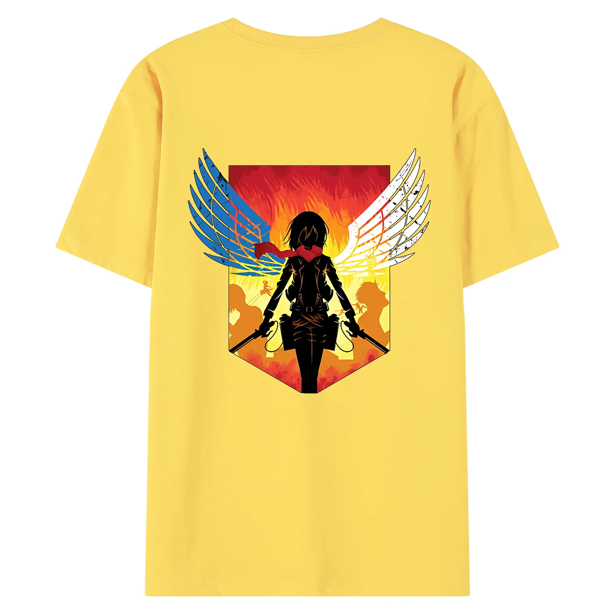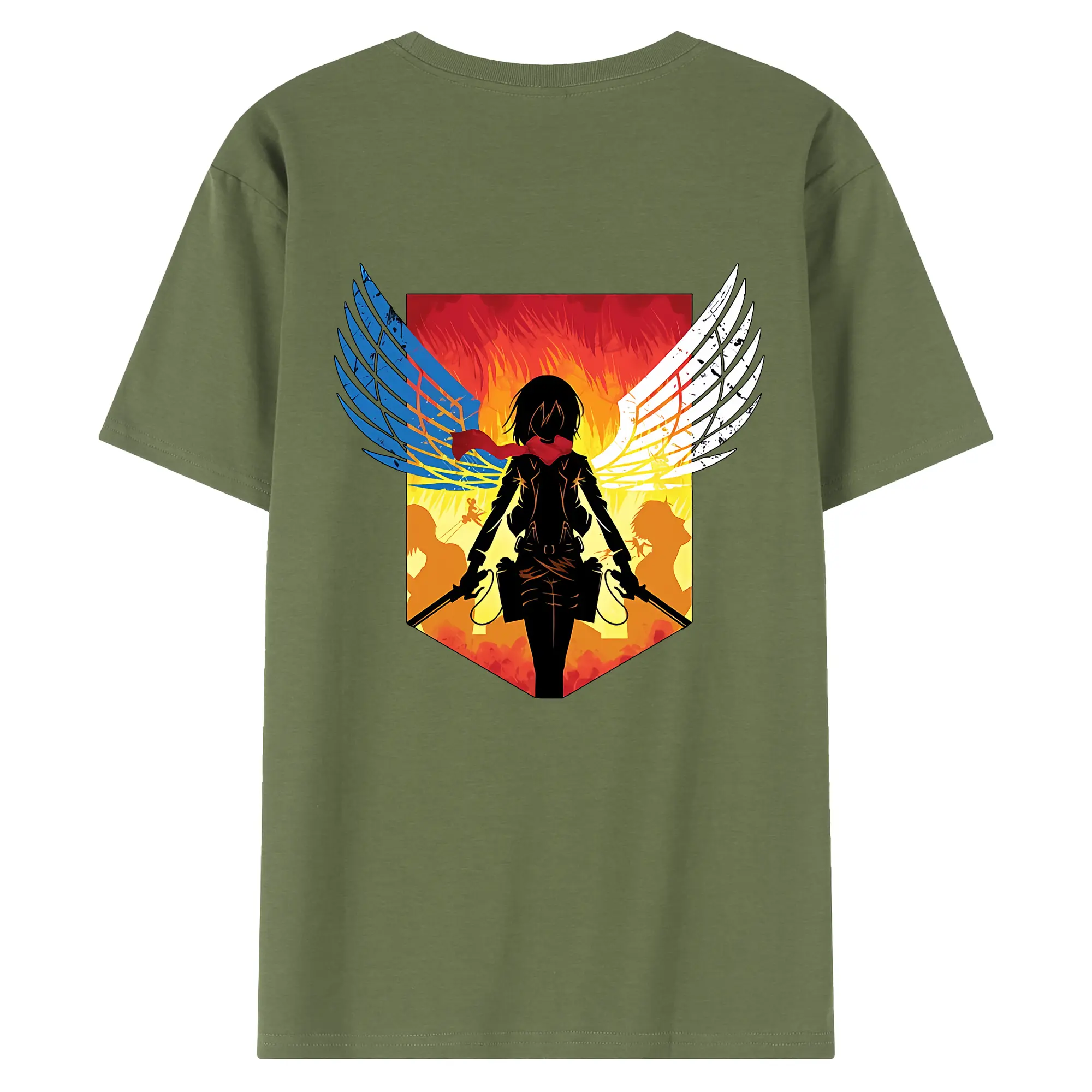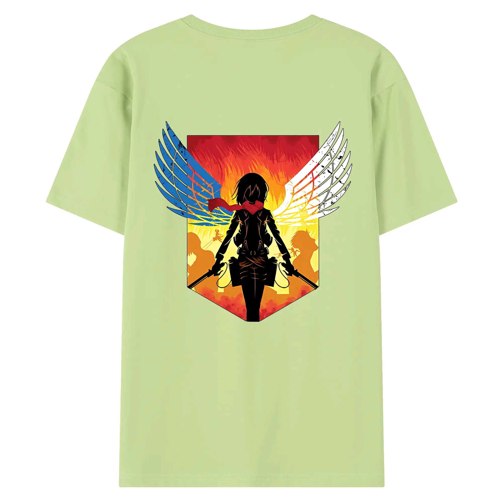 進撃の巨人 グッズ ミカサ・アッカーマン - 綿100% ヴィンテージ風 半袖Tシャツ ・ 背面プリント ・ 柔らか肌触り ・ 通気性 快適 ・ スポーツ カジュアル 外出用