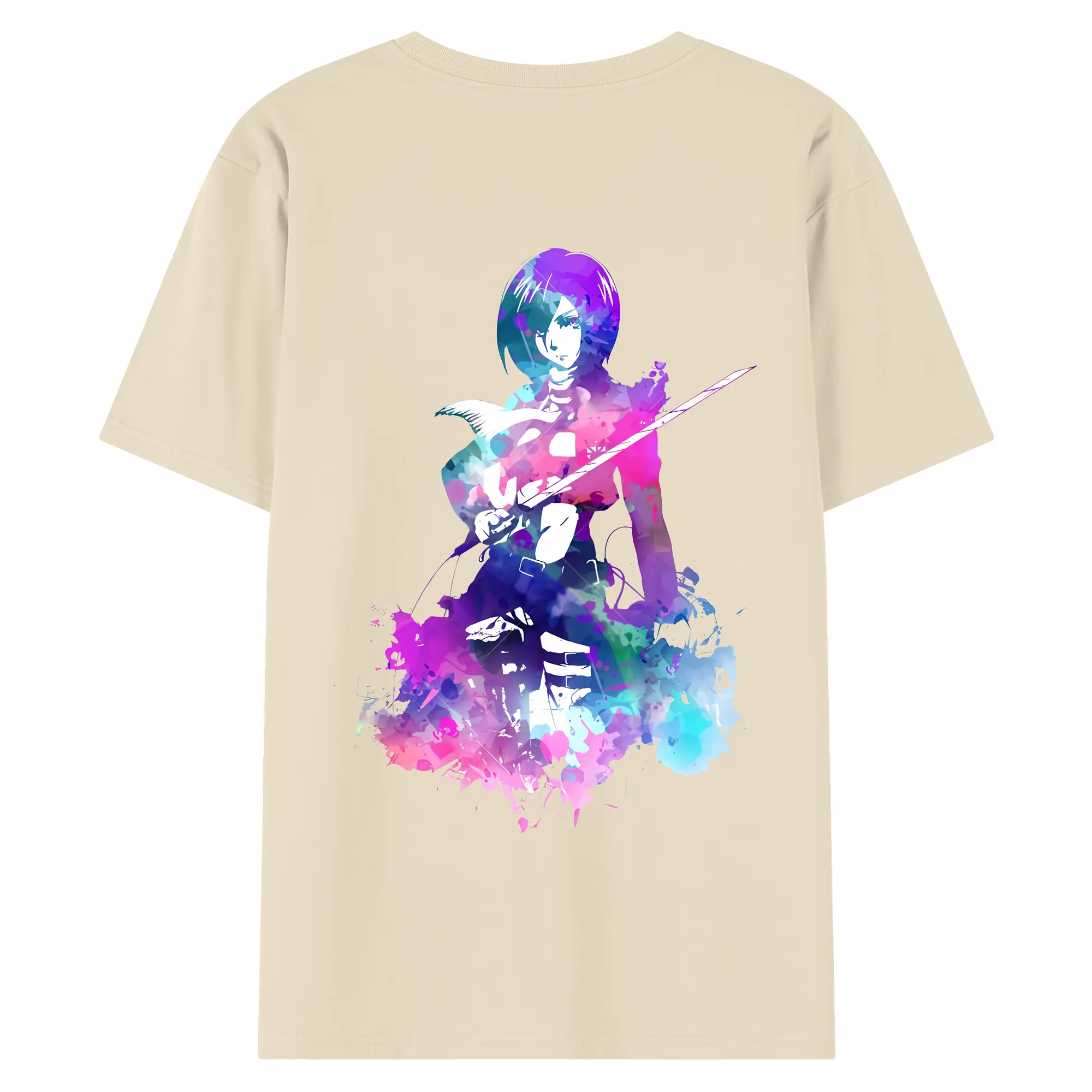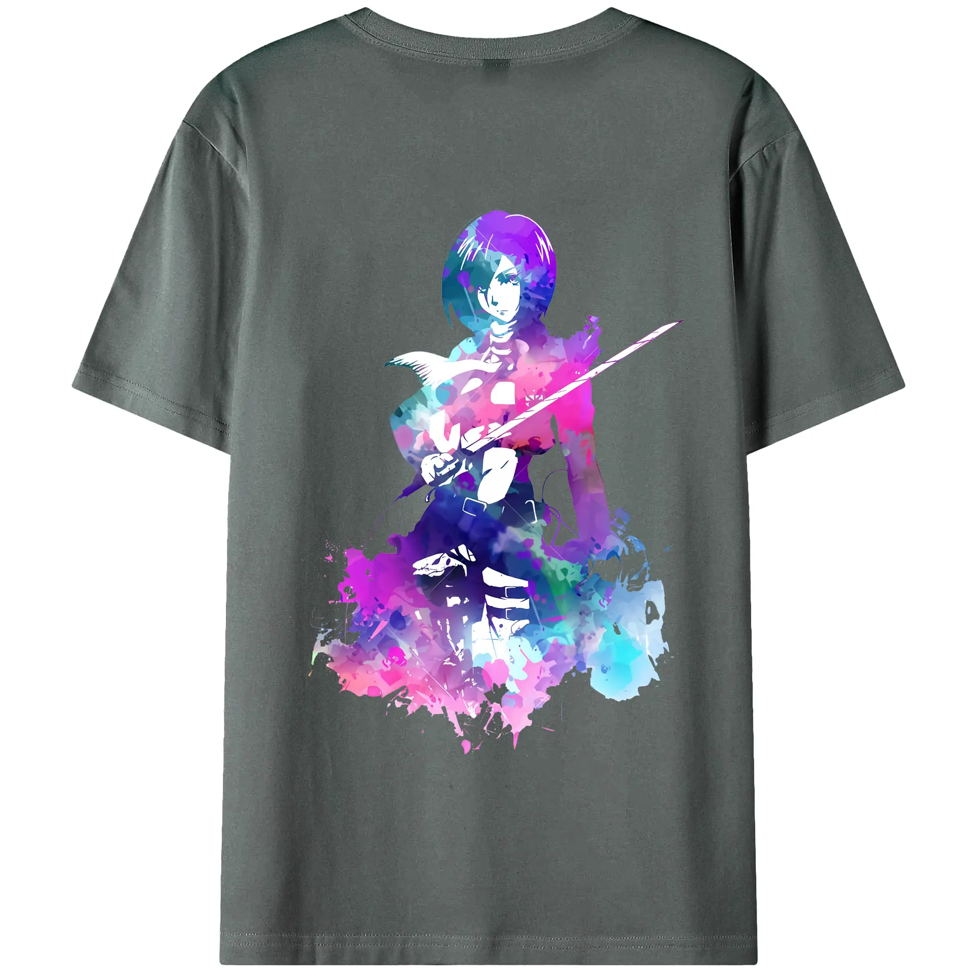 進撃の巨人 グッズ ミカサ・アッカーマン - 綿100% ヴィンテージ風 半袖Tシャツ ・ 背面プリント ・ 柔らか肌触り ・ 通気性 快適 ・ スポーツ カジュアル 外出用
