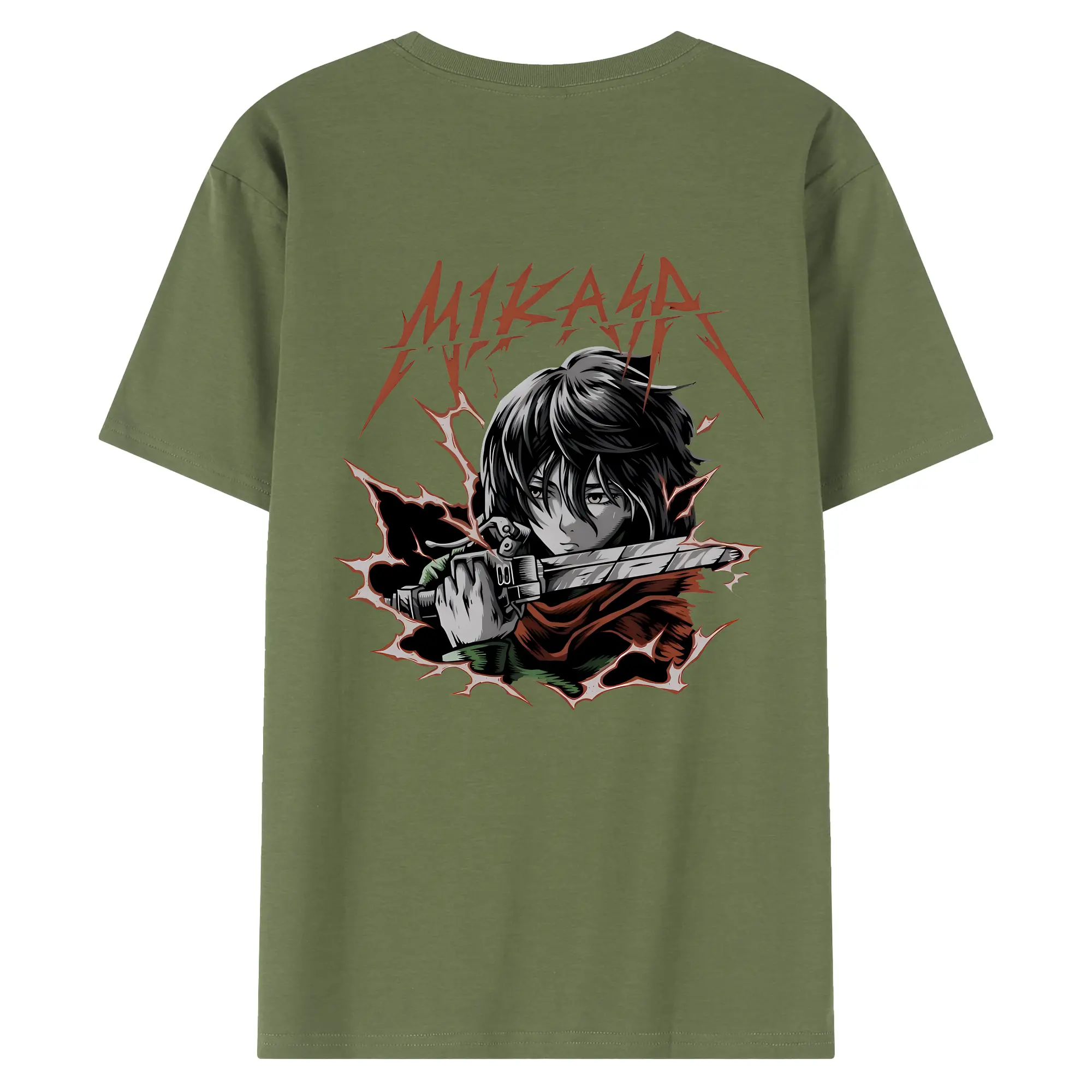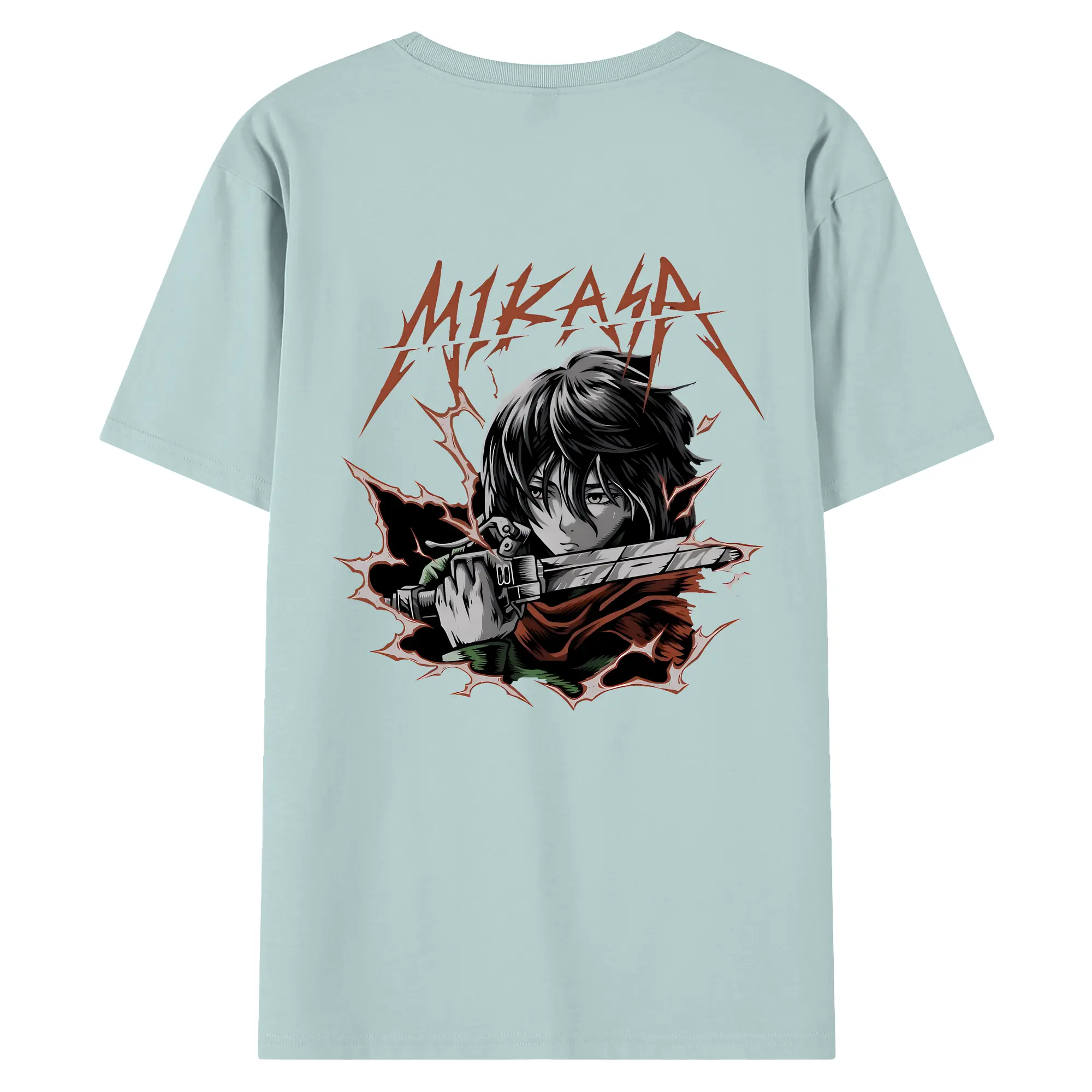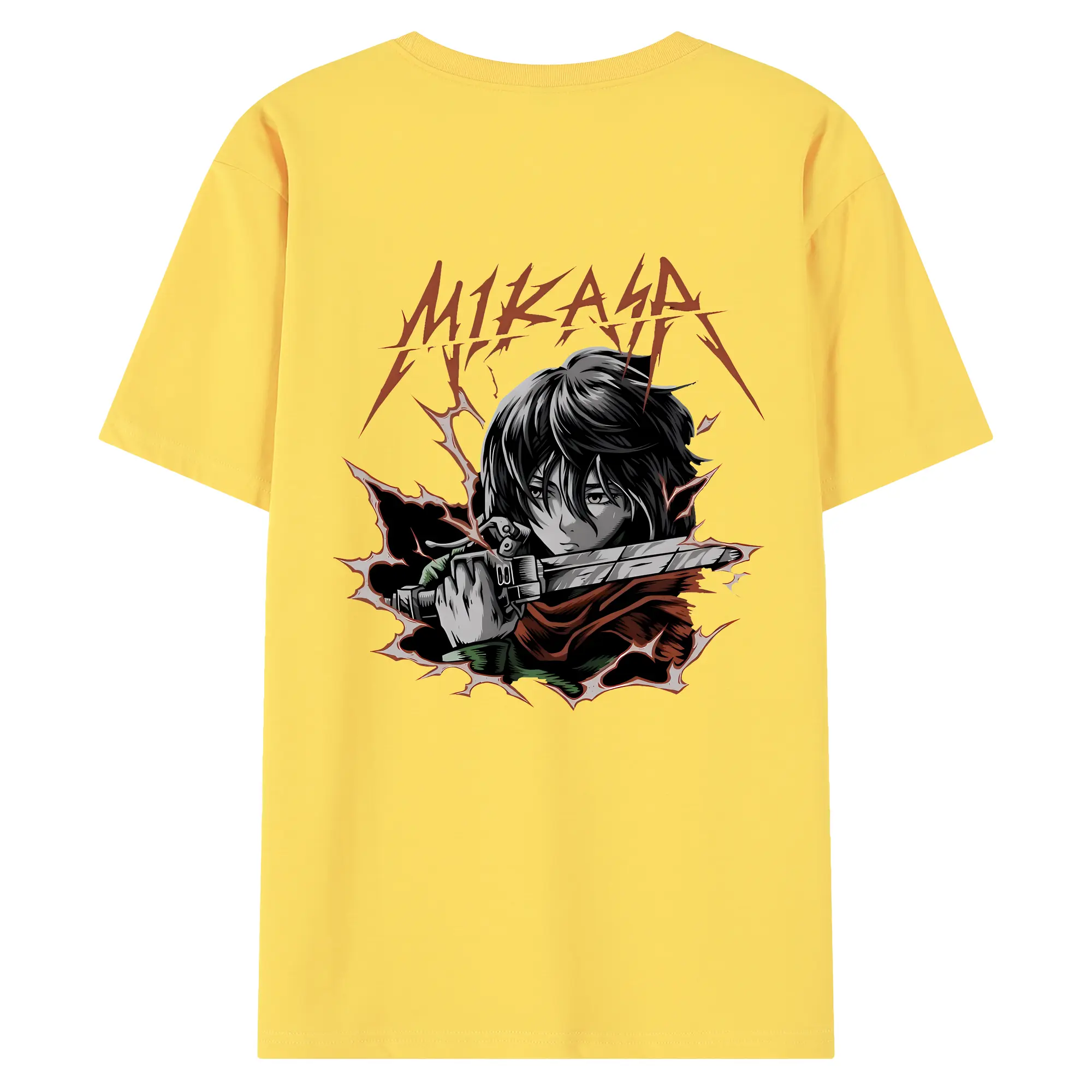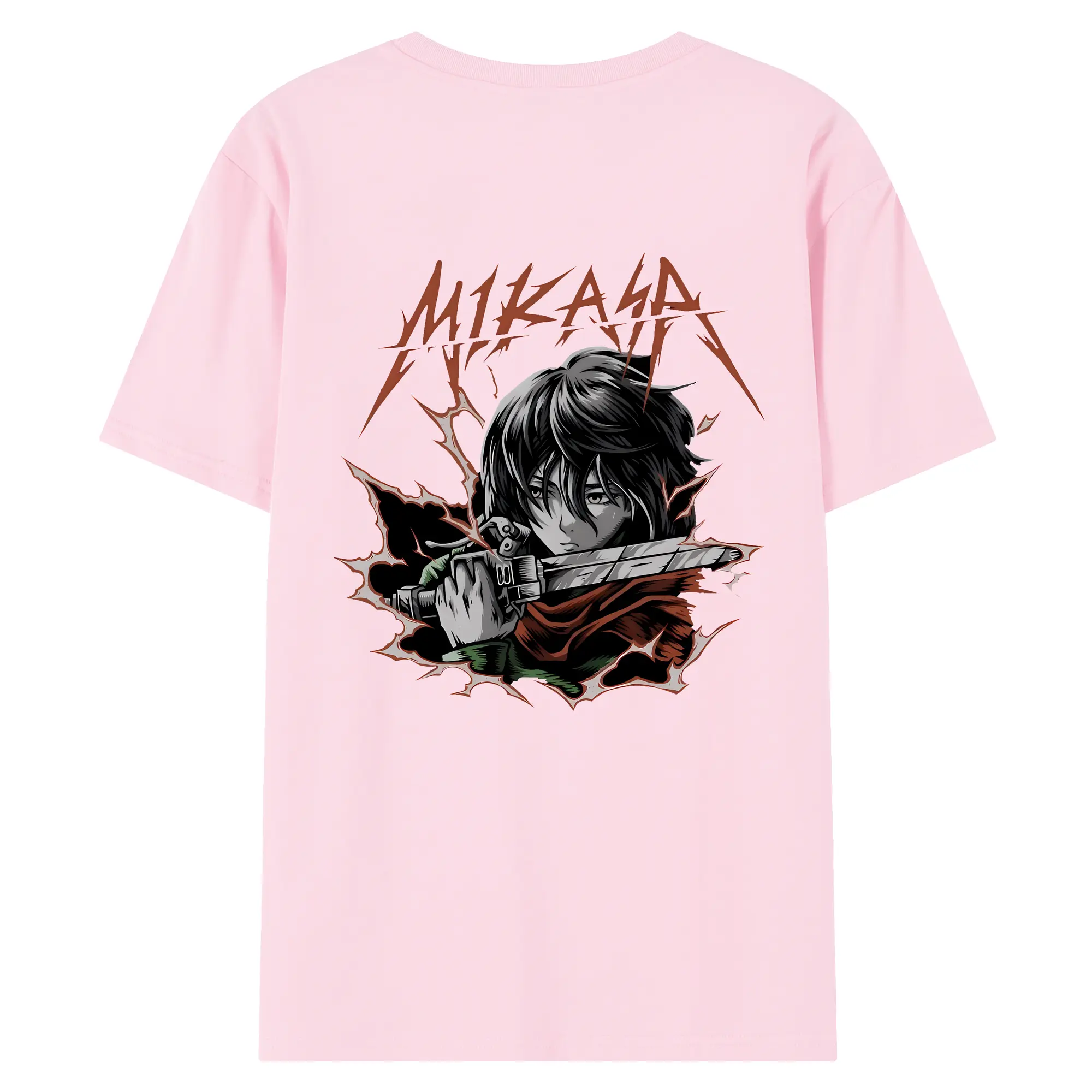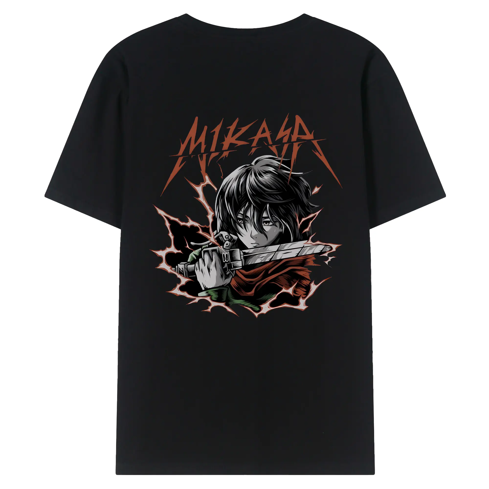 進撃の巨人 グッズ ミカサ・アッカーマン - 綿100% 半袖Tシャツ ・ フロントプリント ・ 快適 通気性 ・ 日常使い 散歩 スポーツ用