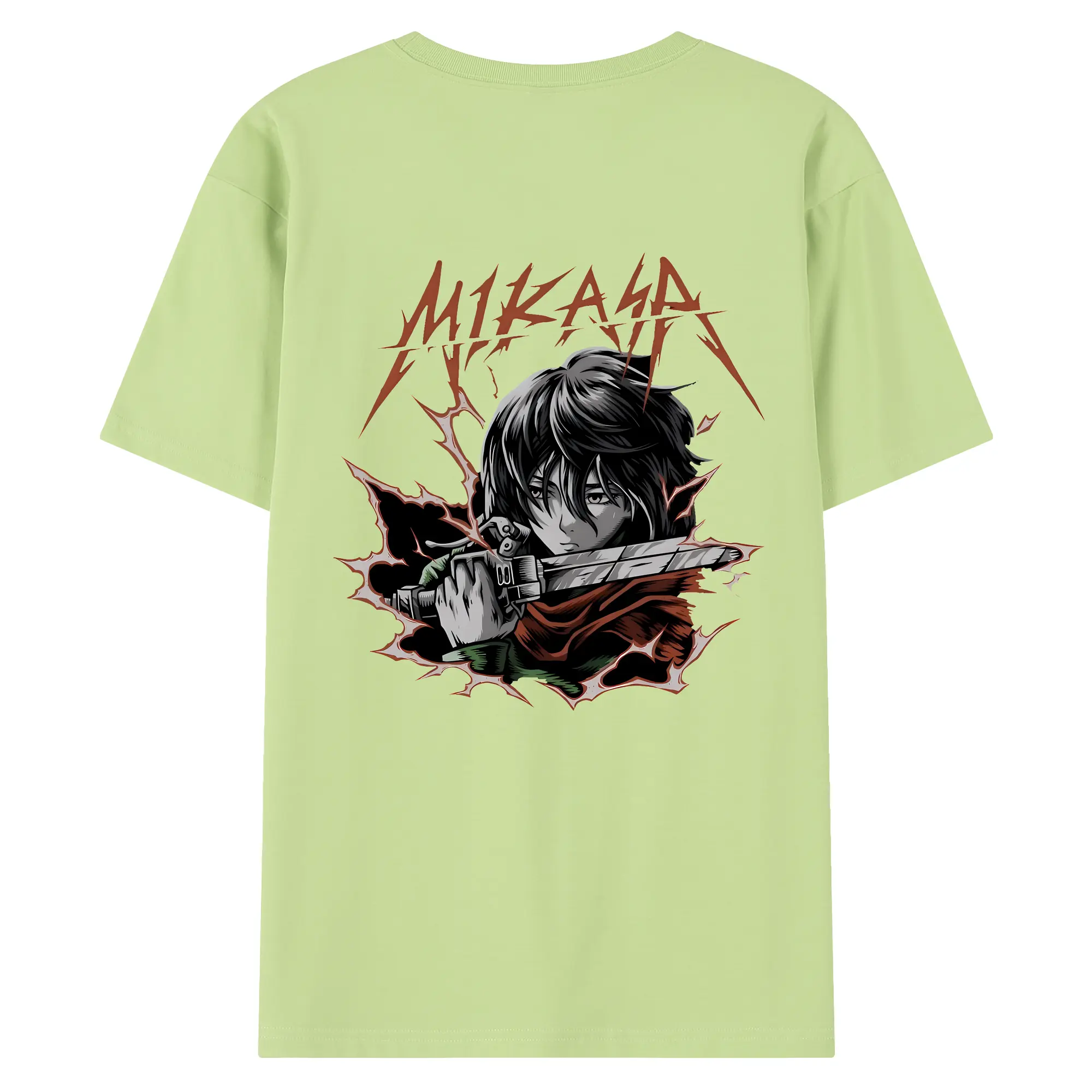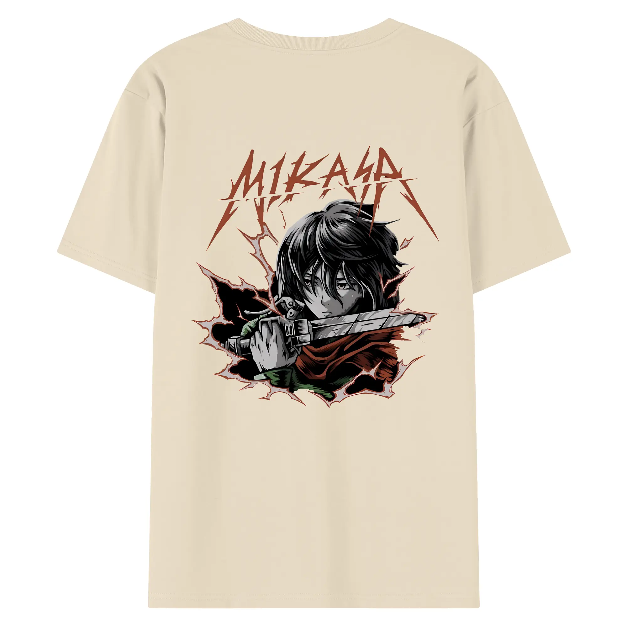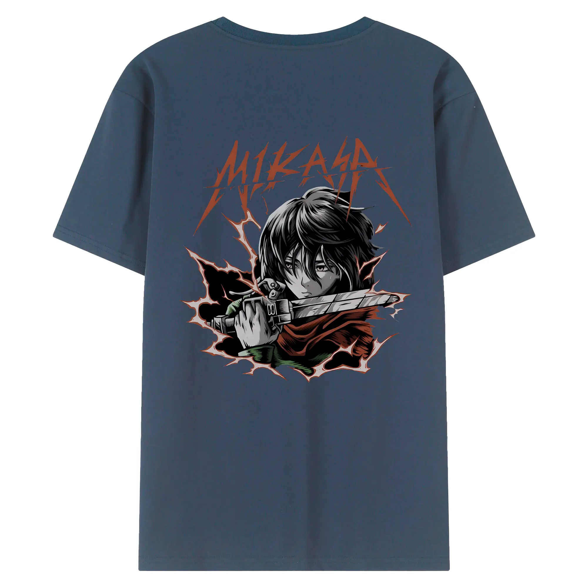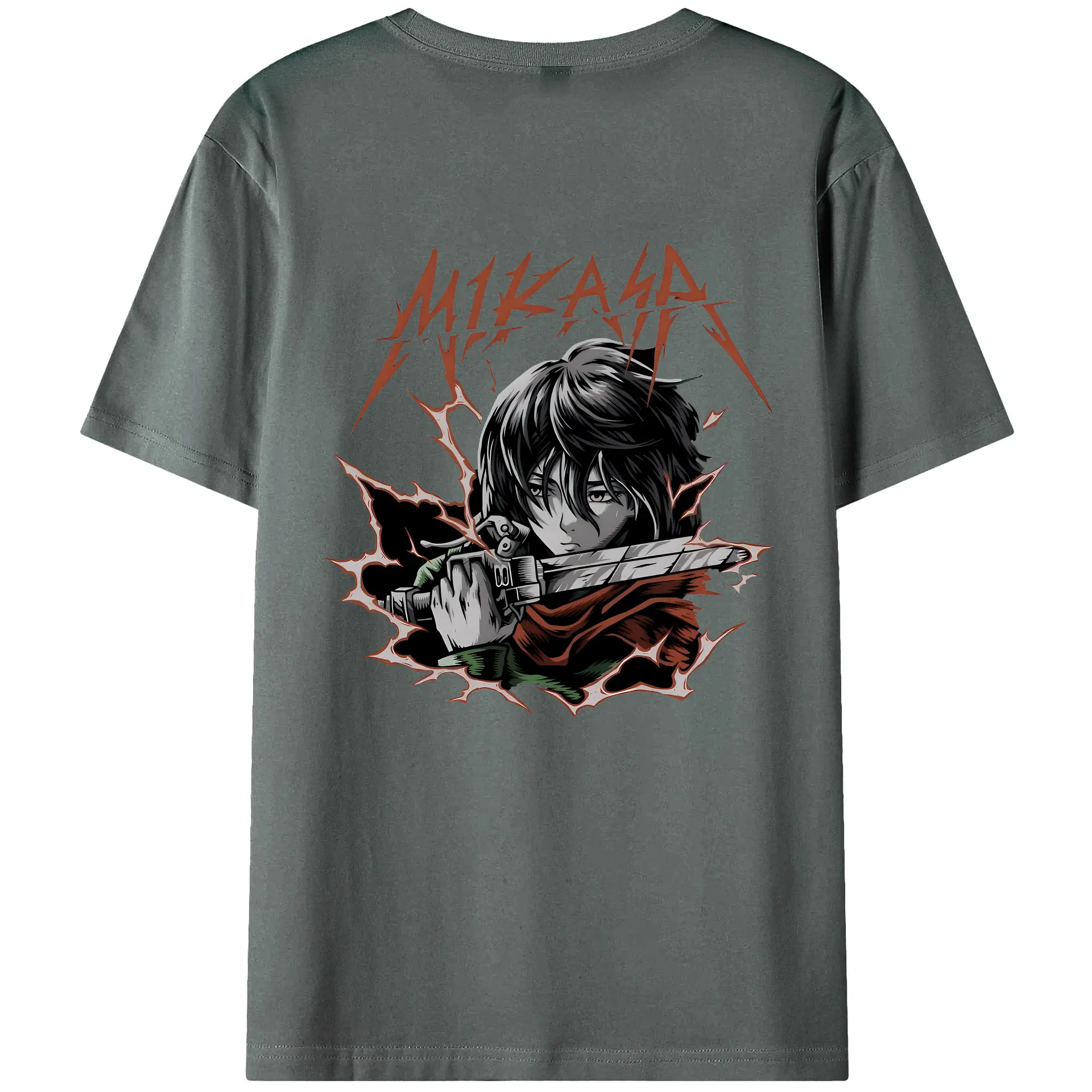 進撃の巨人 グッズ ミカサ・アッカーマン - 綿100% ヴィンテージ風 半袖Tシャツ ・ 背面プリント ・ 柔らか肌触り ・ 通気性 快適 ・ スポーツ カジュアル 外出用