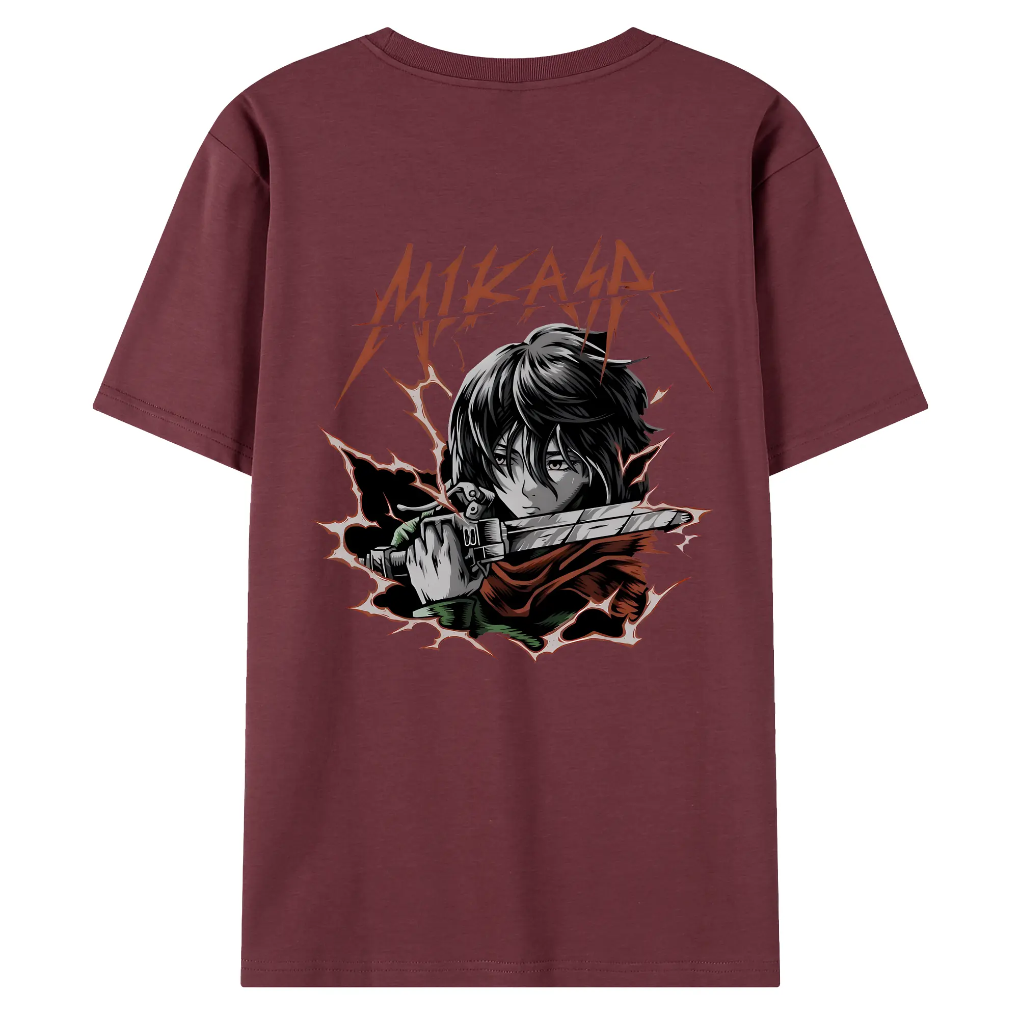 進撃の巨人 グッズ ミカサ・アッカーマン - 綿100% ヴィンテージ風 半袖Tシャツ ・ フロントプリント ・ 柔らか肌触り ・ 通気性 快適 ・ スポーツ カジュアル 外出用