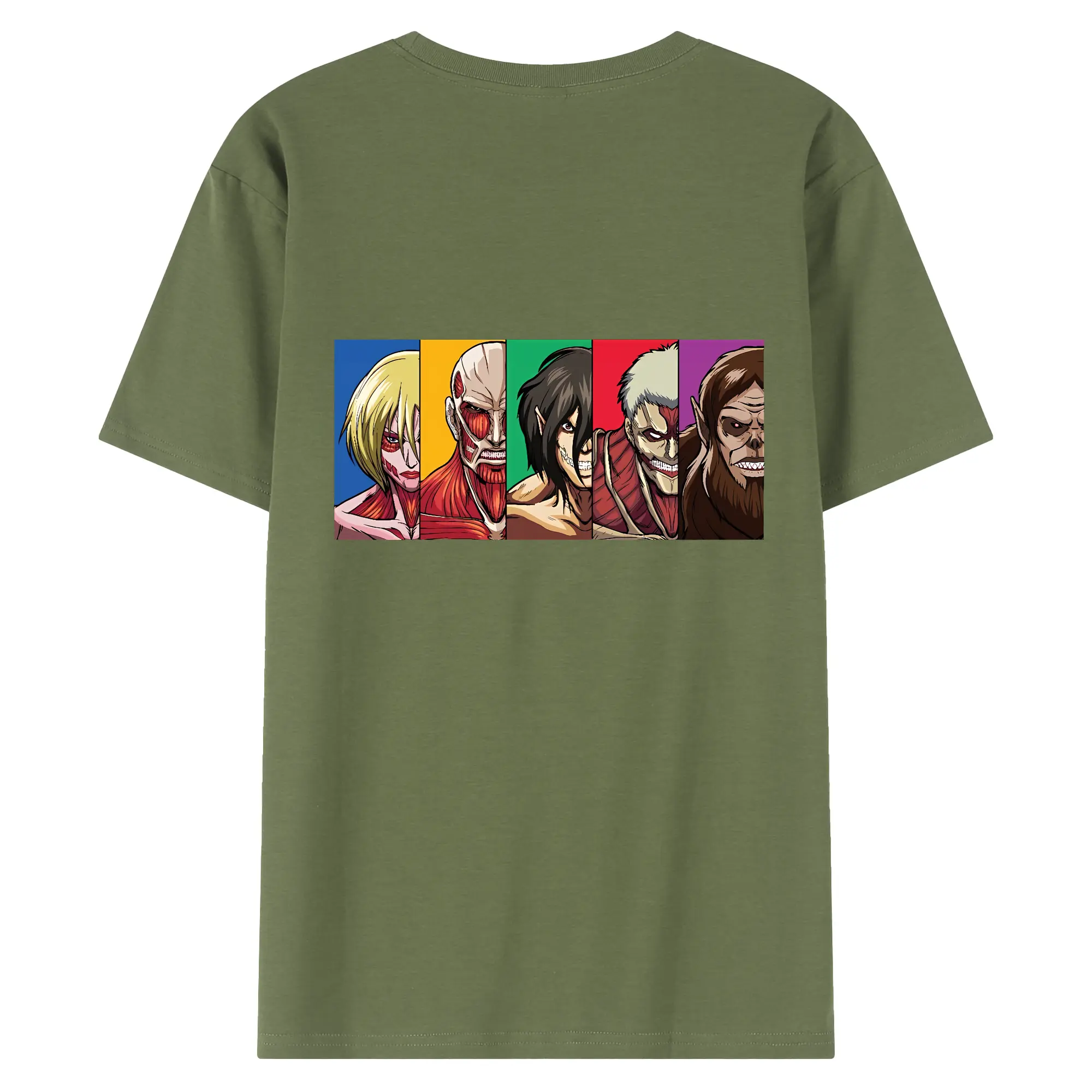 進撃の巨人 グッズ ミカサ・アッカーマン - 綿100% ヴィンテージ風 半袖Tシャツ ・ 背面プリント ・ 柔らか肌触り ・ 通気性 快適 ・ スポーツ カジュアル 外出用