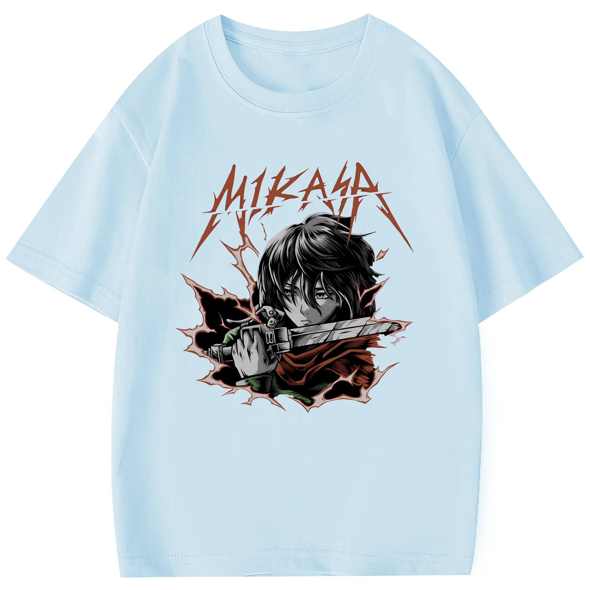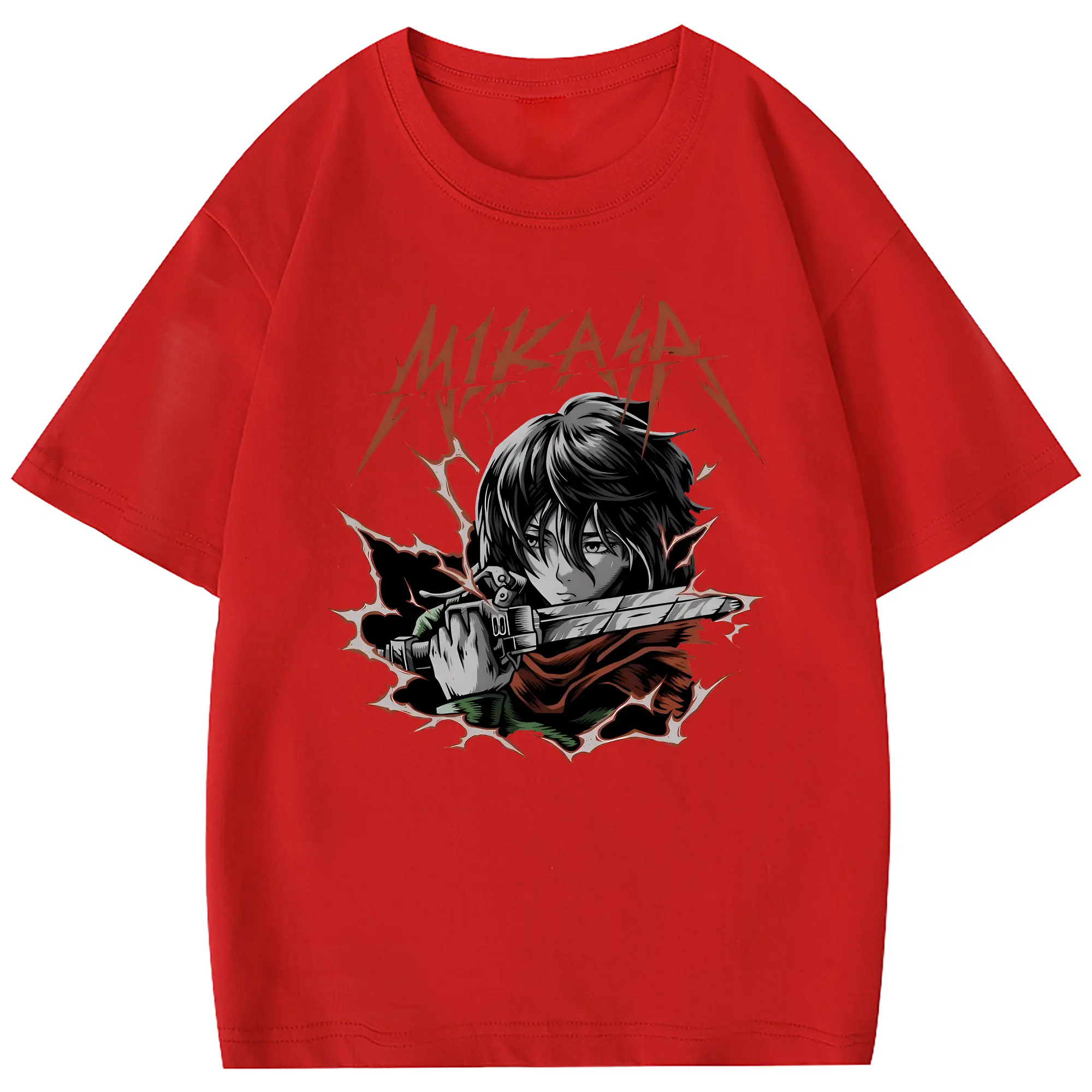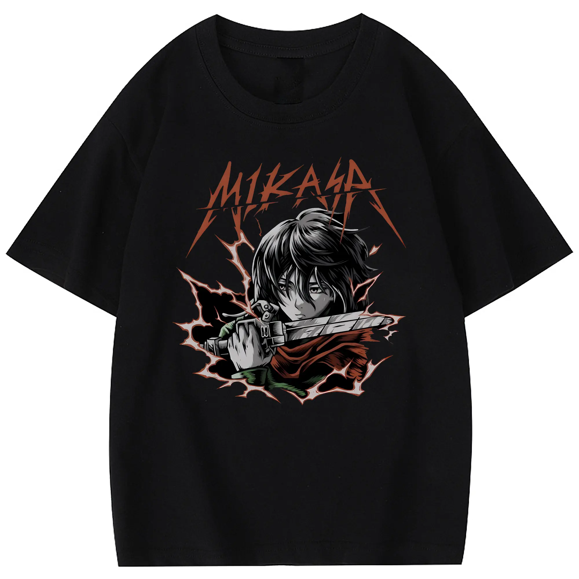進撃の巨人 グッズ ミカサ・アッカーマン - 綿100% 半袖Tシャツ ・ フロントプリント ・ 快適 通気性 ・ 日常使い 散歩 スポーツ用