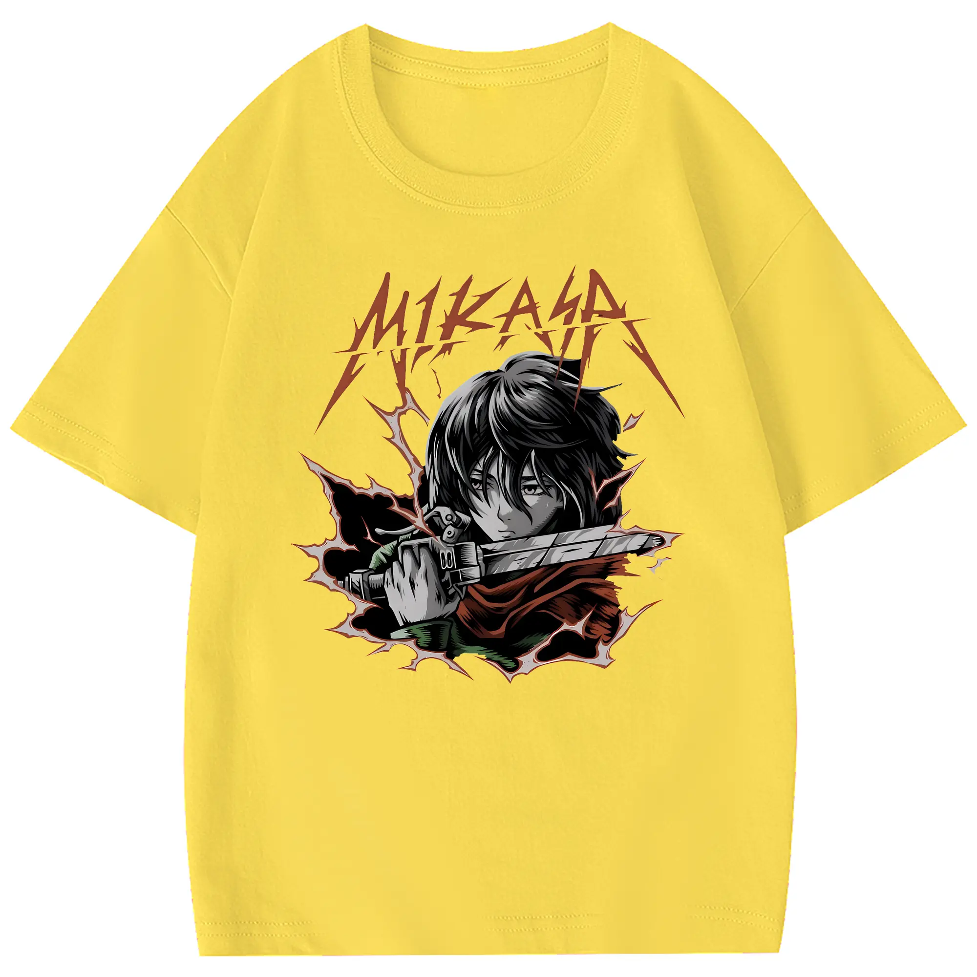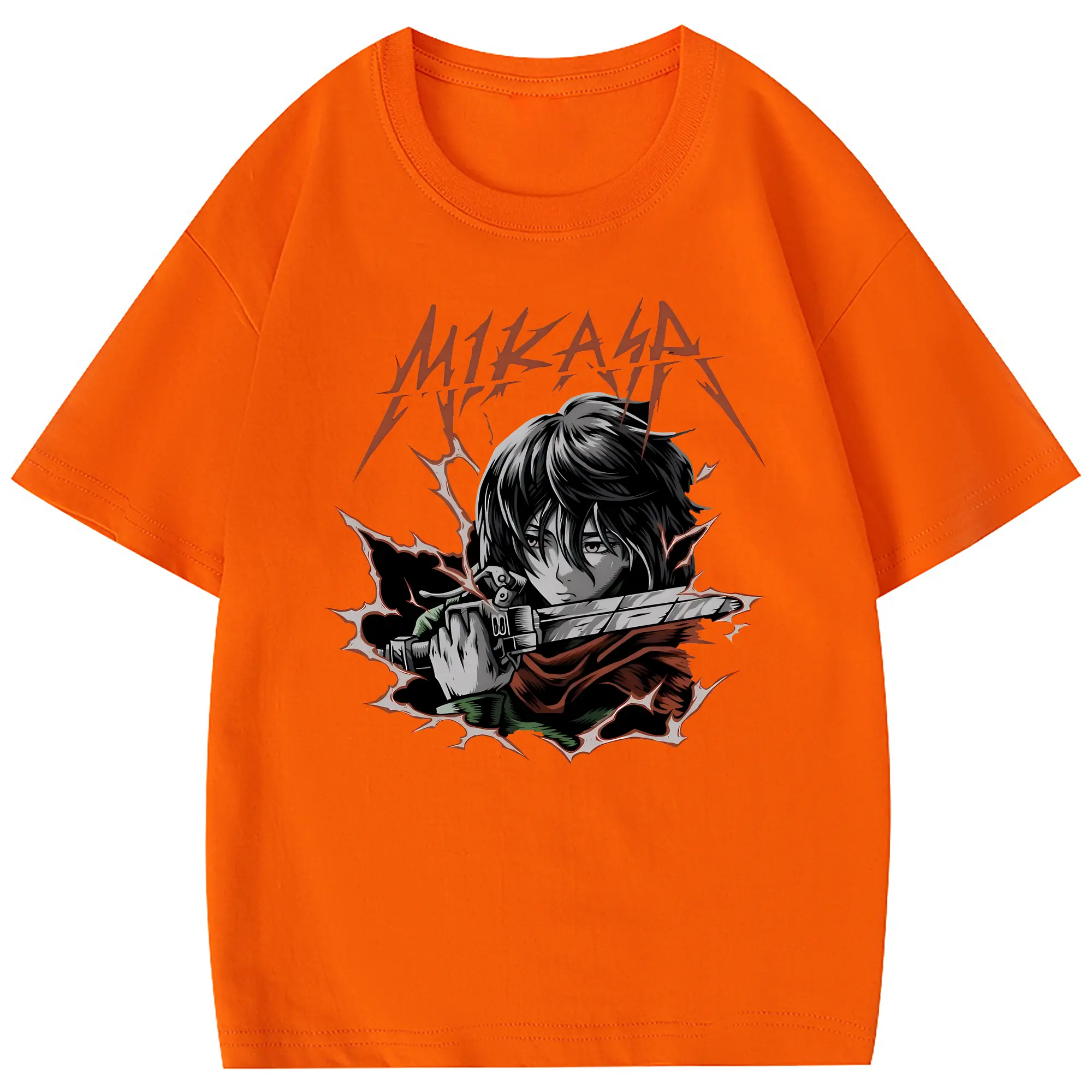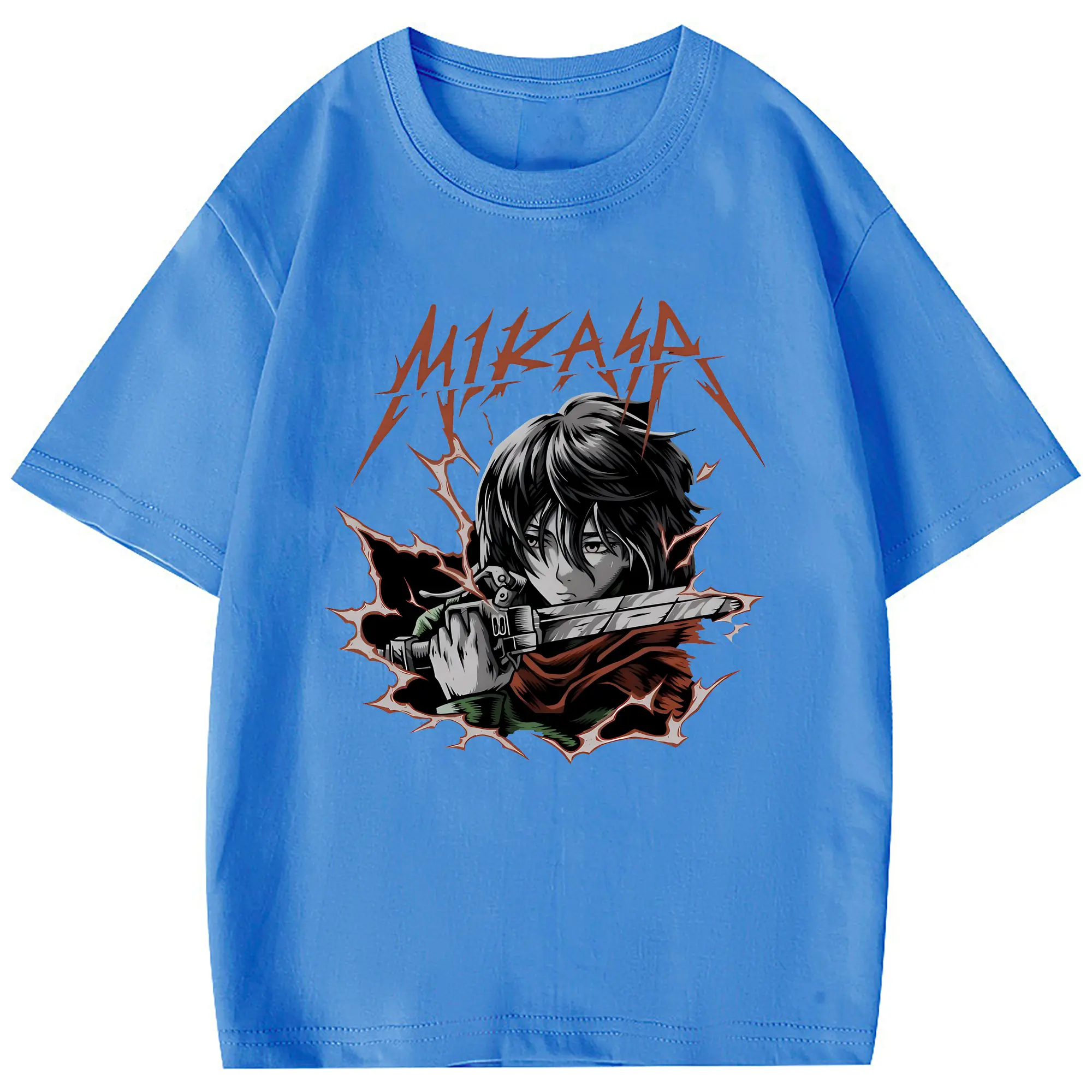 進撃の巨人 グッズ ミカサ・アッカーマン - 綿100% 半袖Tシャツ ・ フロントプリント ・ 快適 通気性 ・ 日常使い 散歩 スポーツ用