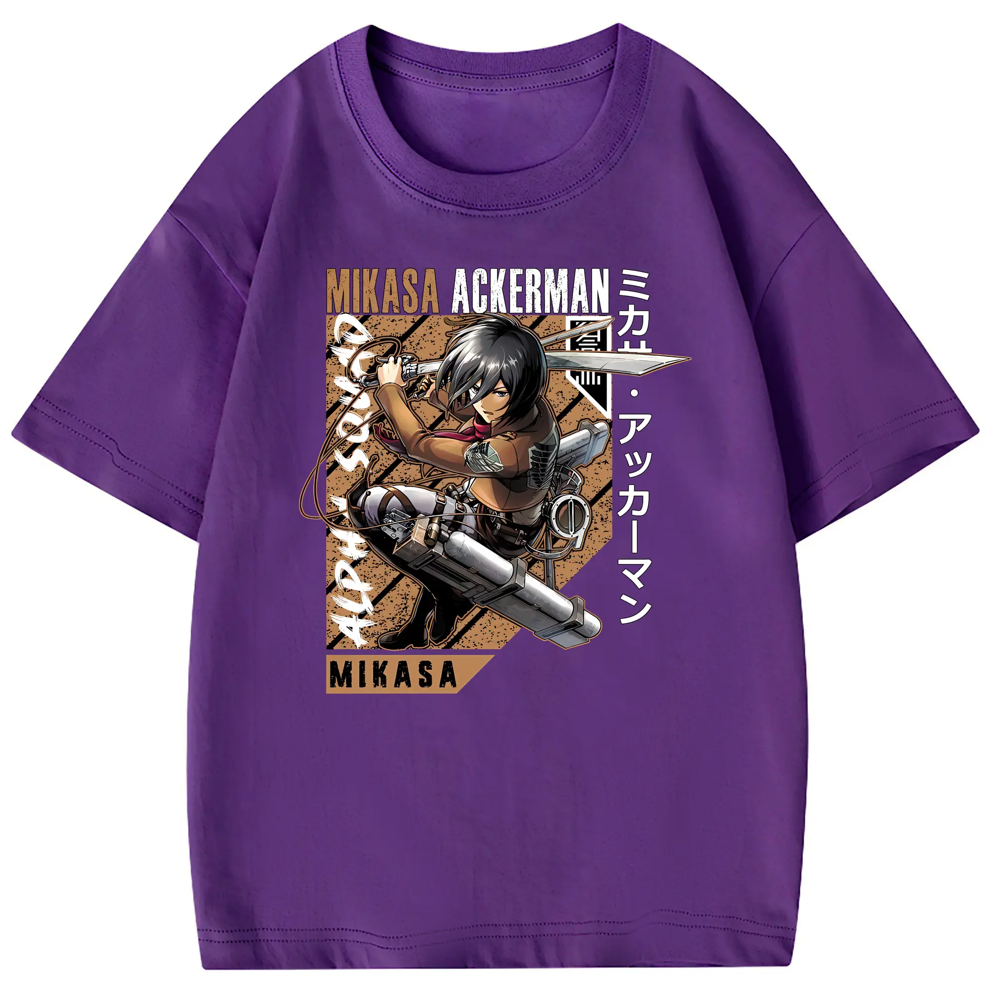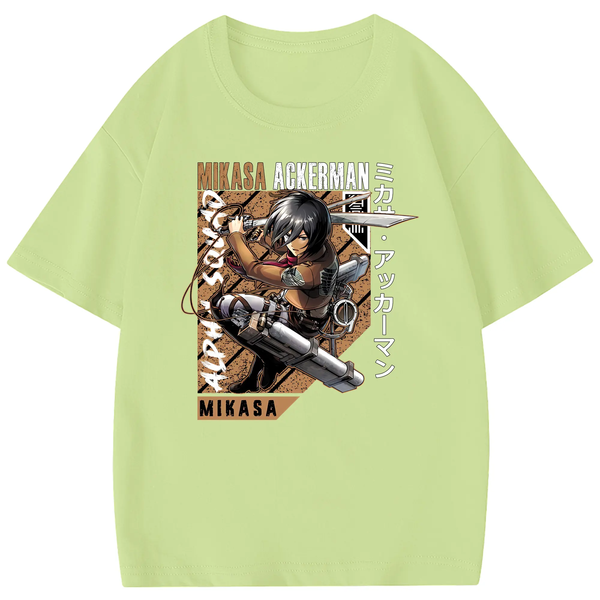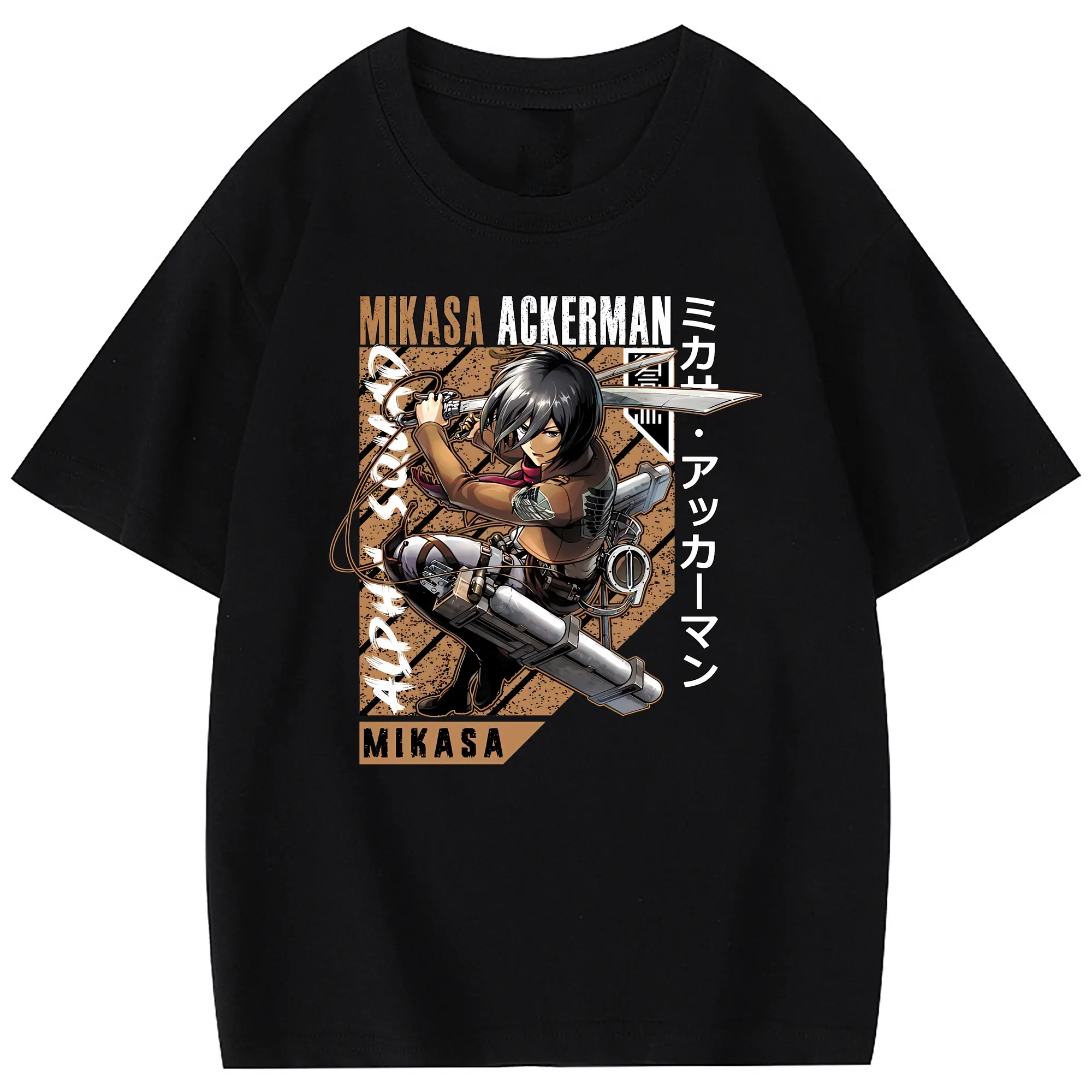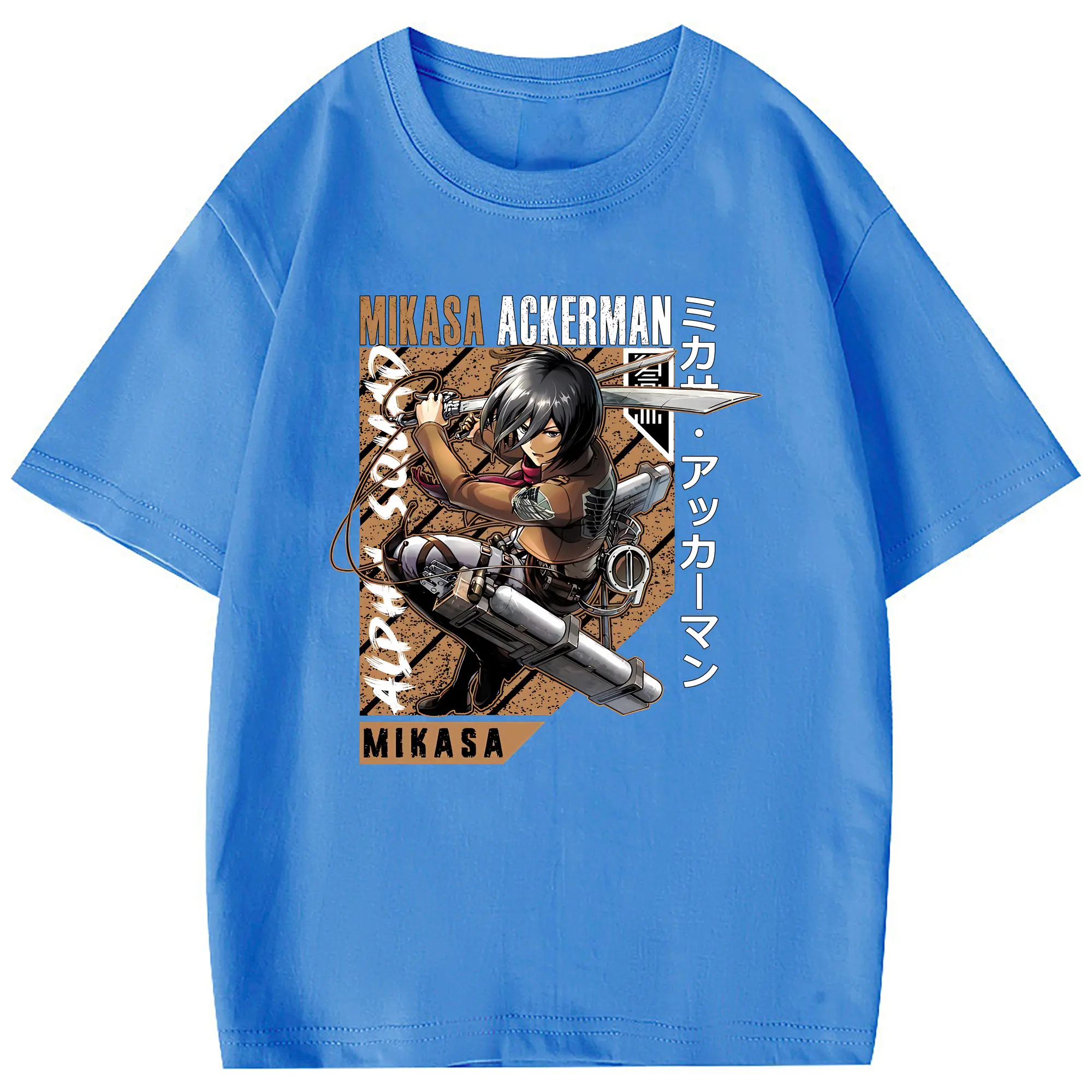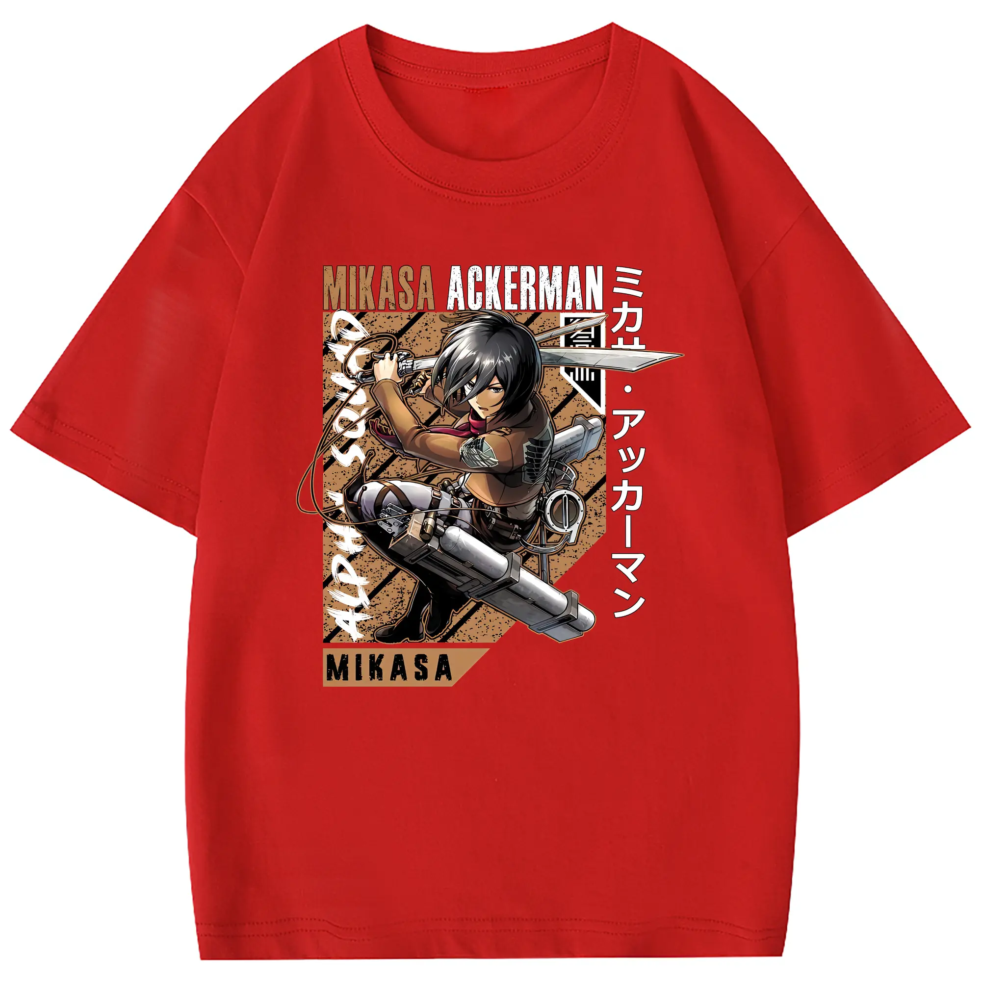 進撃の巨人 グッズ ミカサ・アッカーマン - 綿100% 半袖Tシャツ ・ フロントプリント ・ 快適 通気性 ・ 日常使い 散歩 スポーツ用