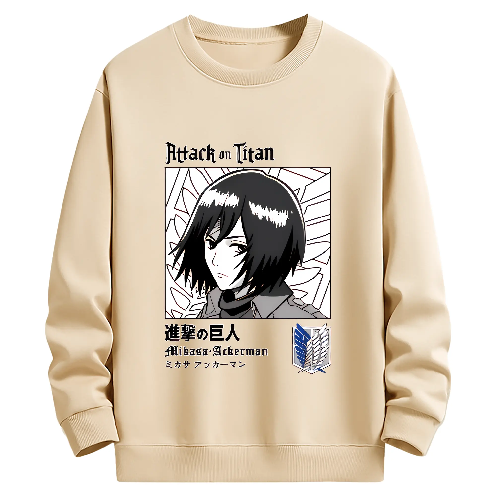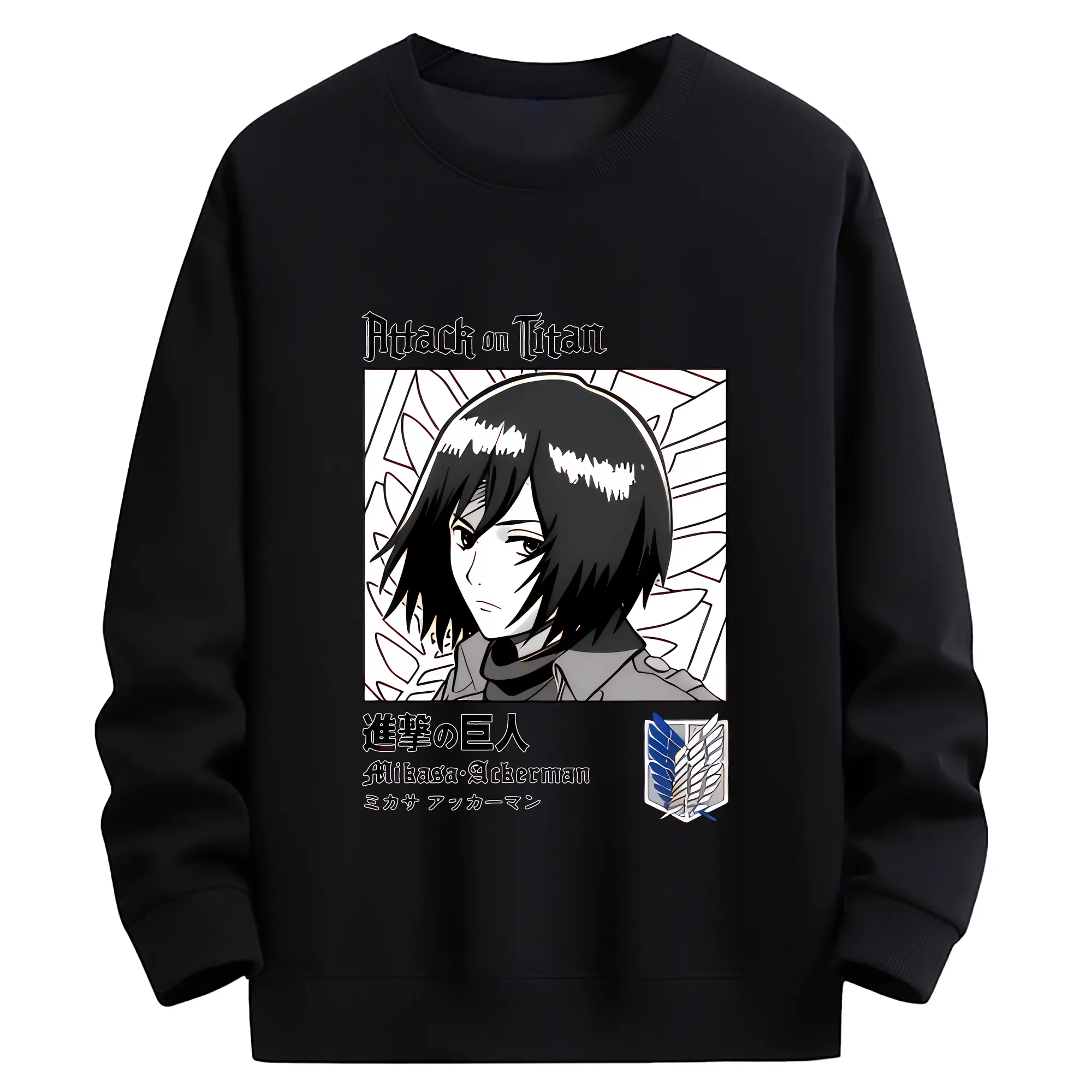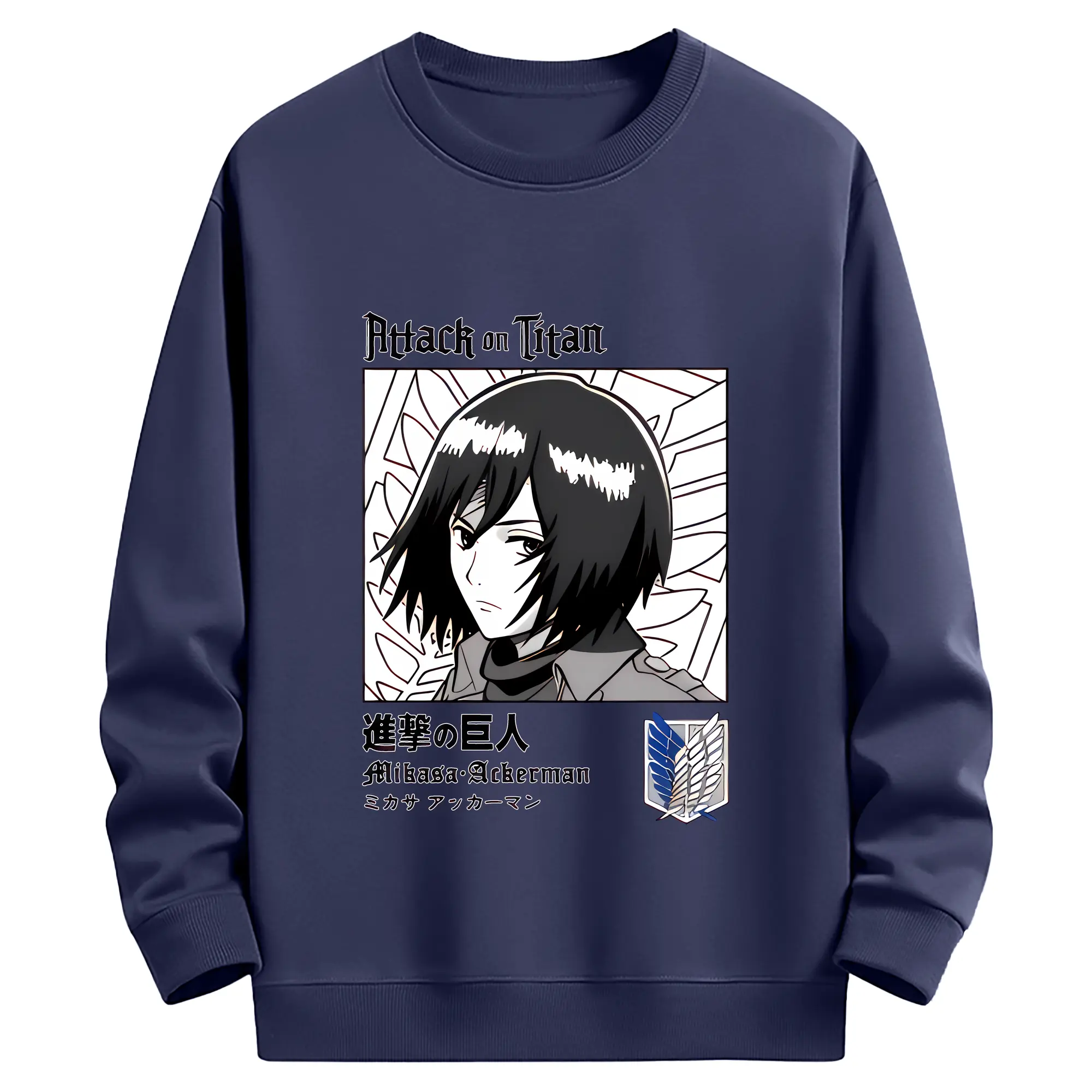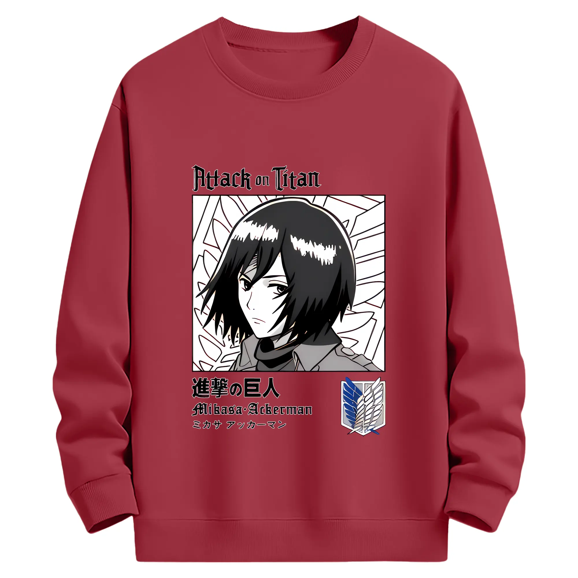 進撃の巨人 グッズ ミカサ・アッカーマン - 薄手 クルーネック スウェット 裏毛260g · ポリエステル 春秋向け カジュアル 男女兼用 · トレーナー デイリー スポーツ 散歩に最適