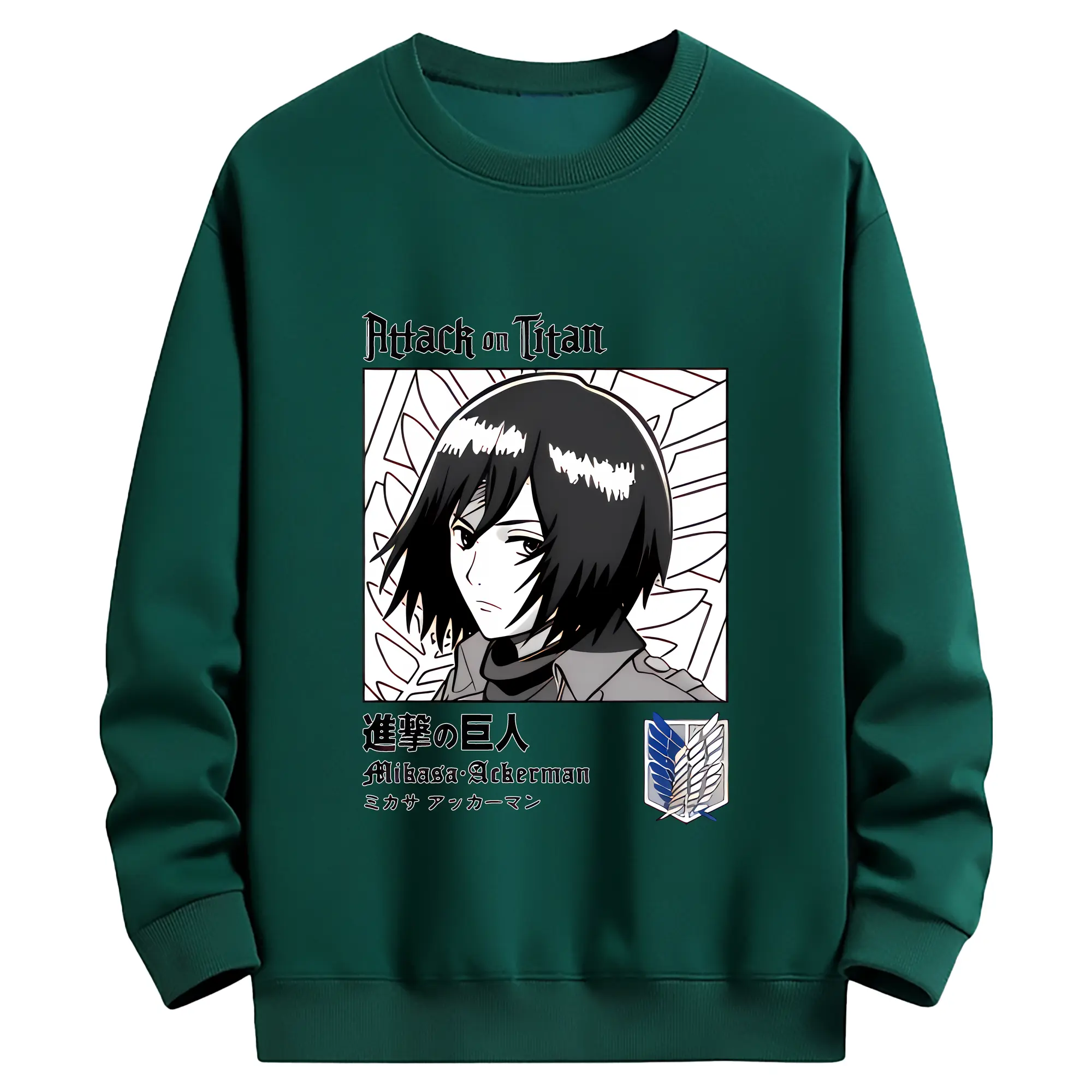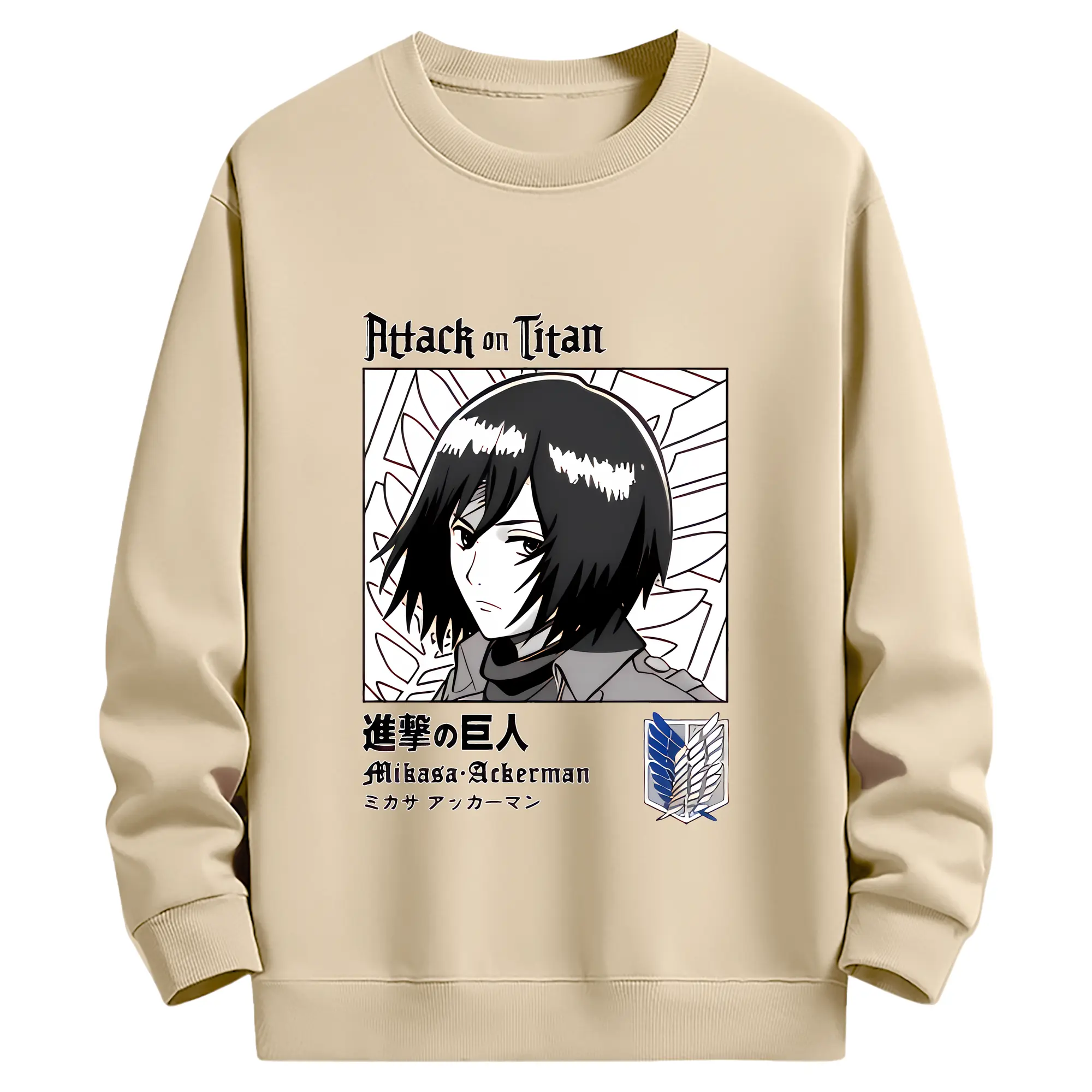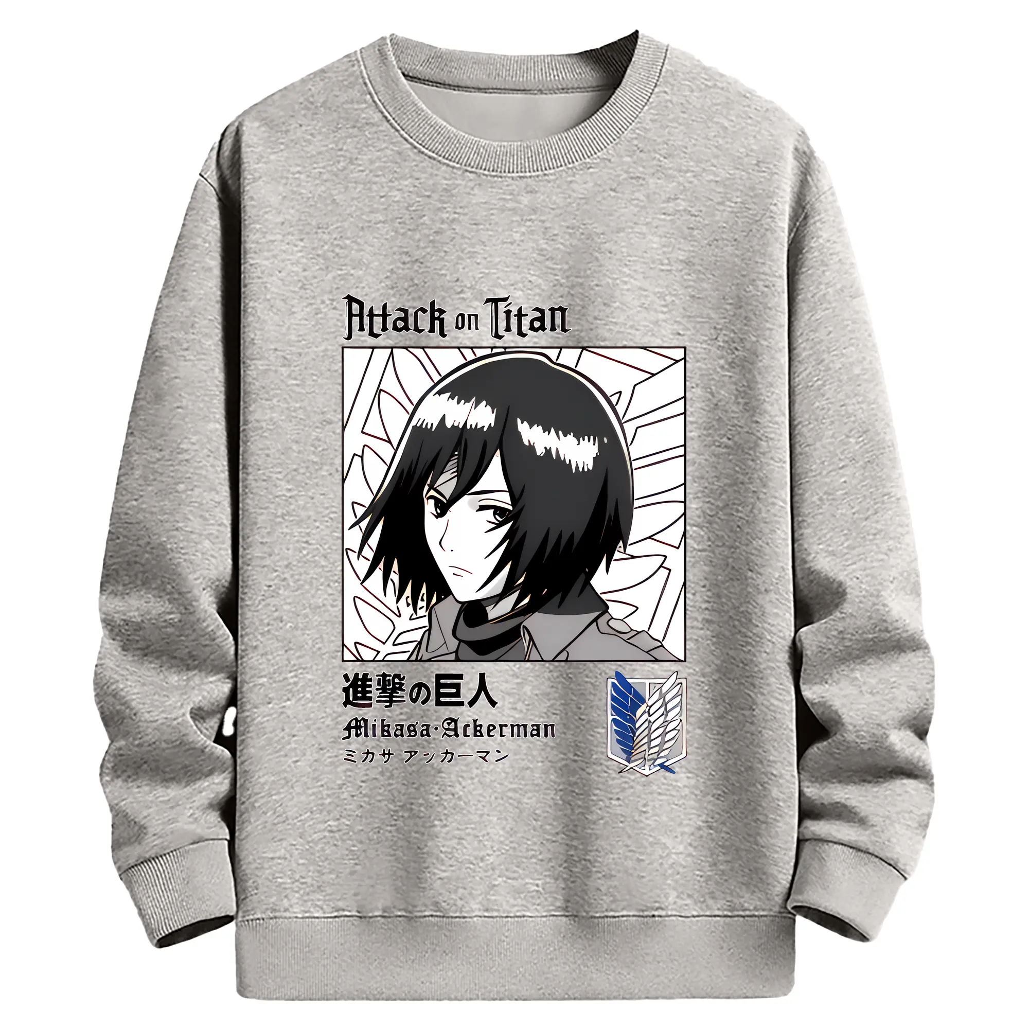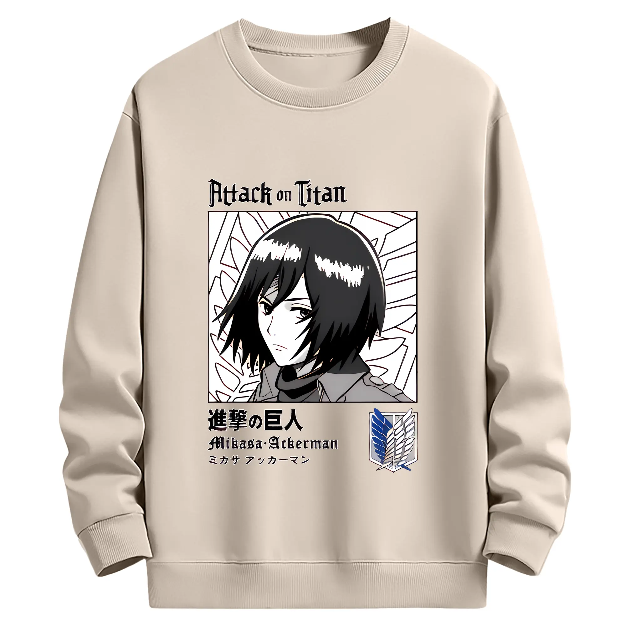 進撃の巨人 グッズ ミカサ・アッカーマン - 薄手 クルーネック スウェット 裏毛260g · ポリエステル 春秋向け カジュアル 男女兼用 · トレーナー デイリー スポーツ 散歩に最適