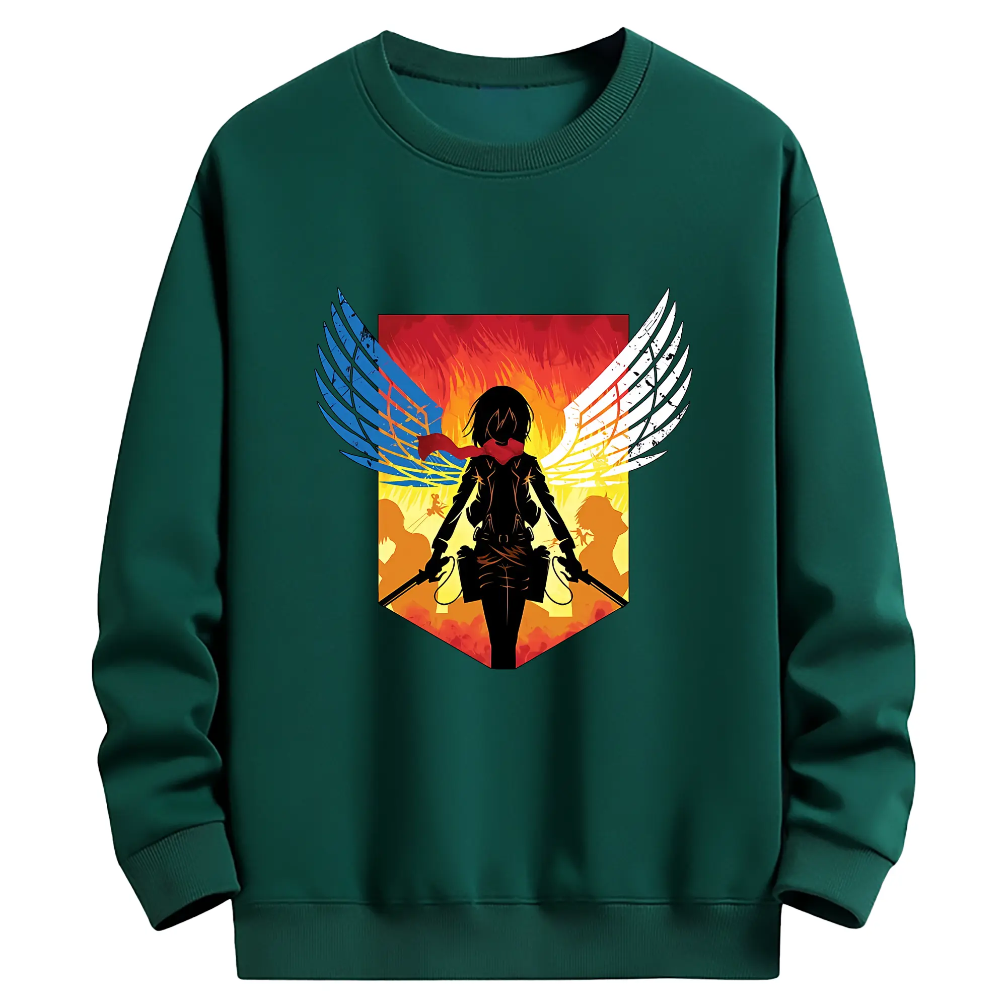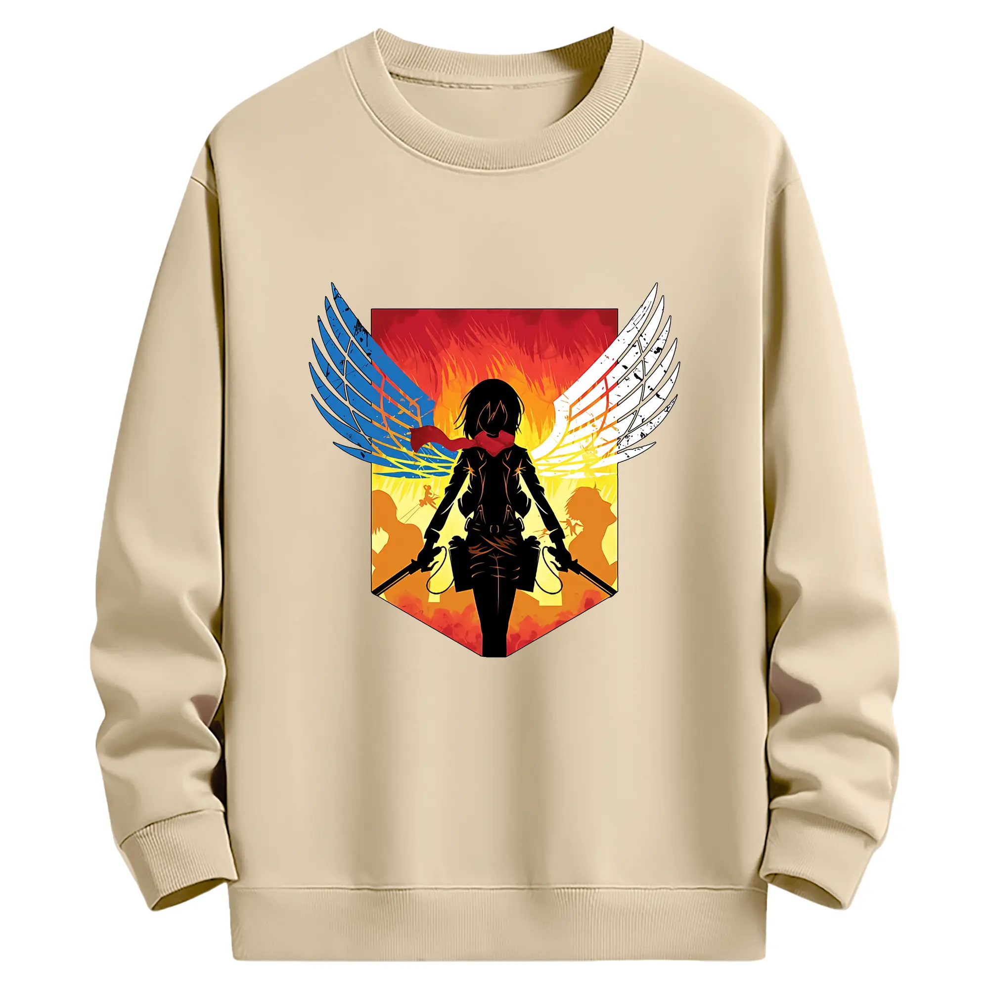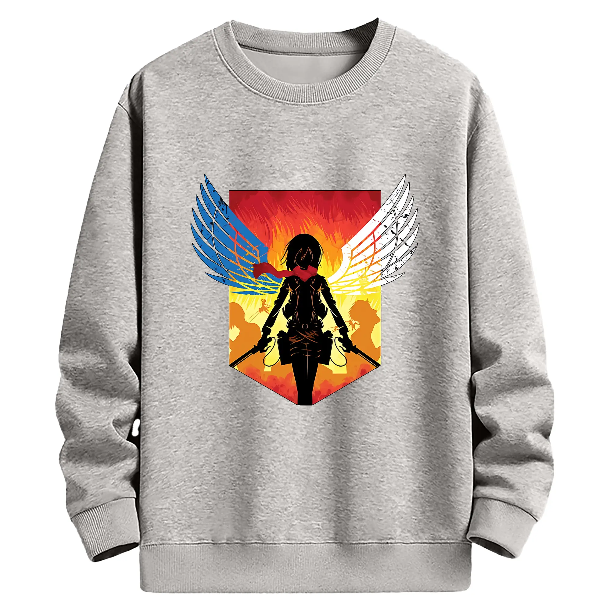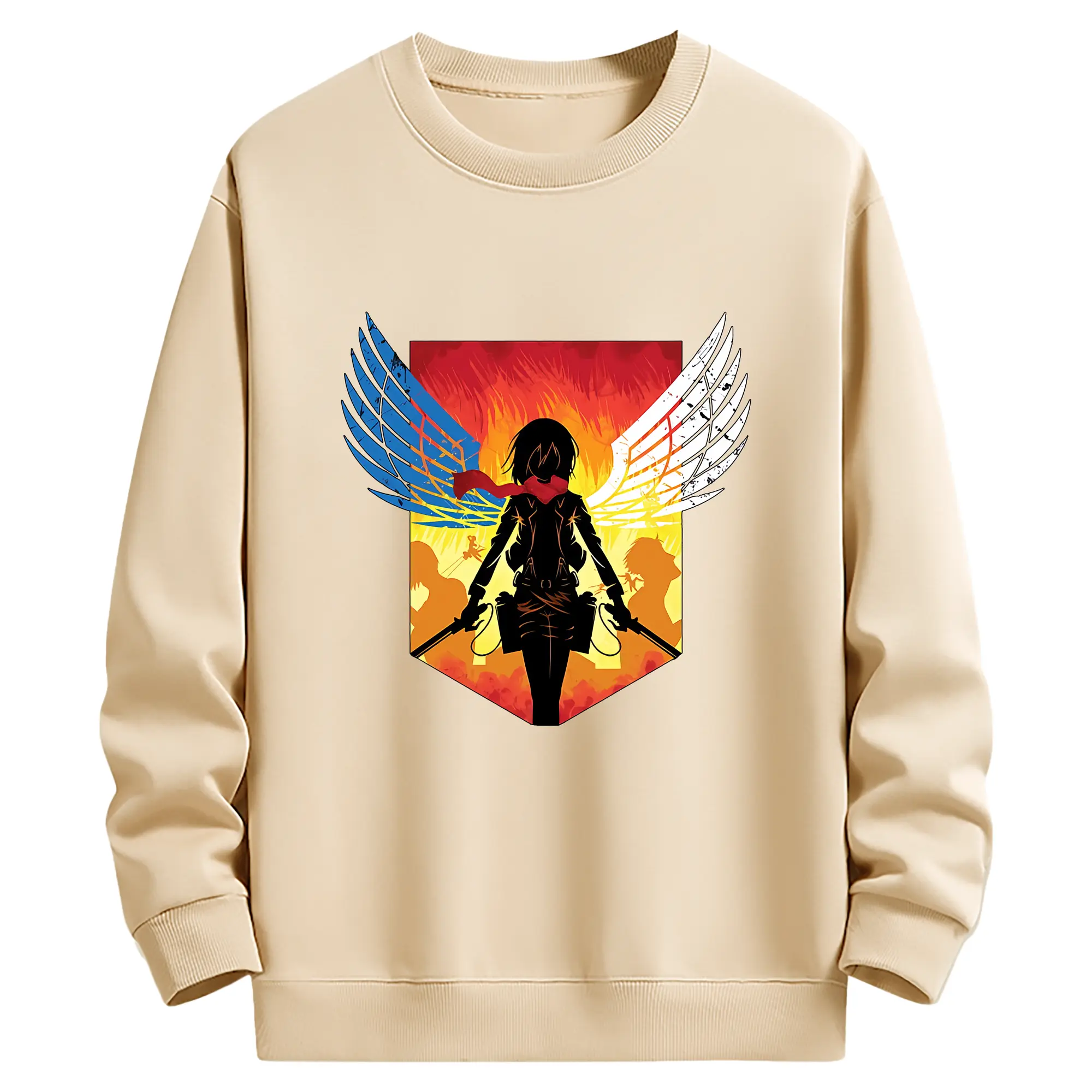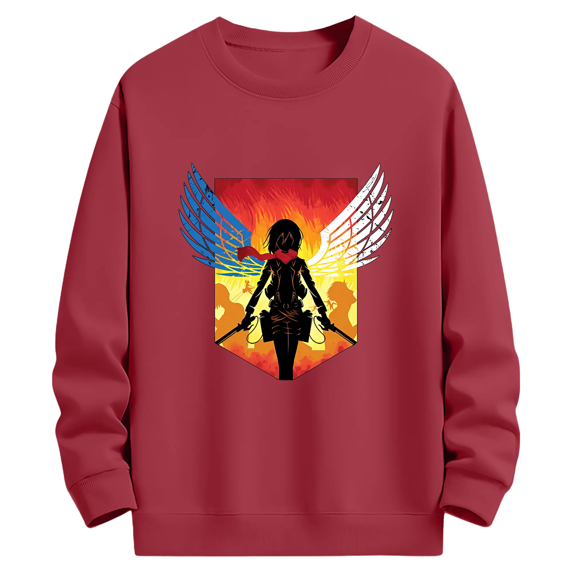 進撃の巨人 グッズ ミカサ・アッカーマン - 薄手 クルーネック スウェット 裏毛260g · ポリエステル 春秋向け カジュアル 男女兼用 · トレーナー デイリー スポーツ 散歩に最適