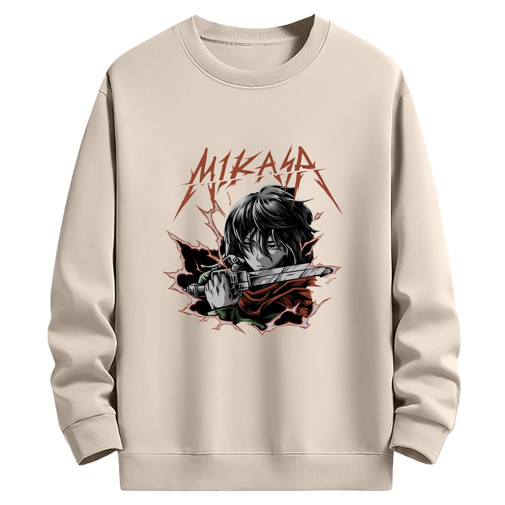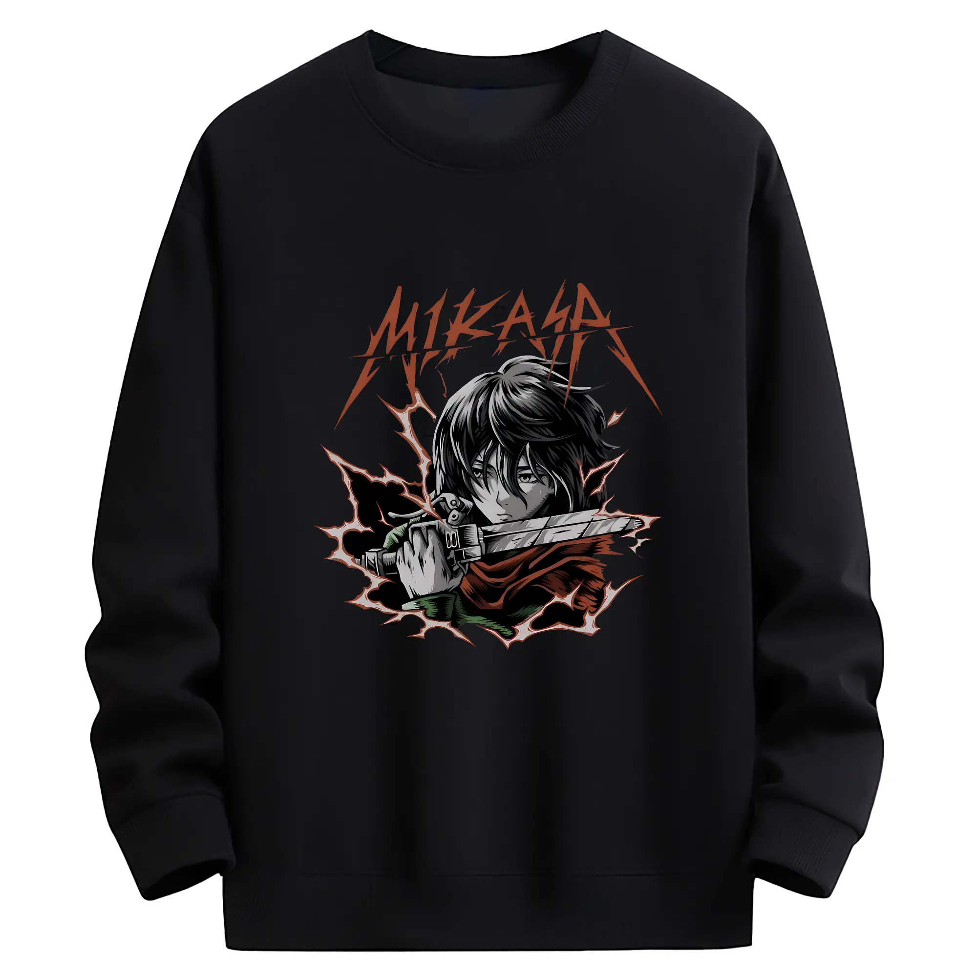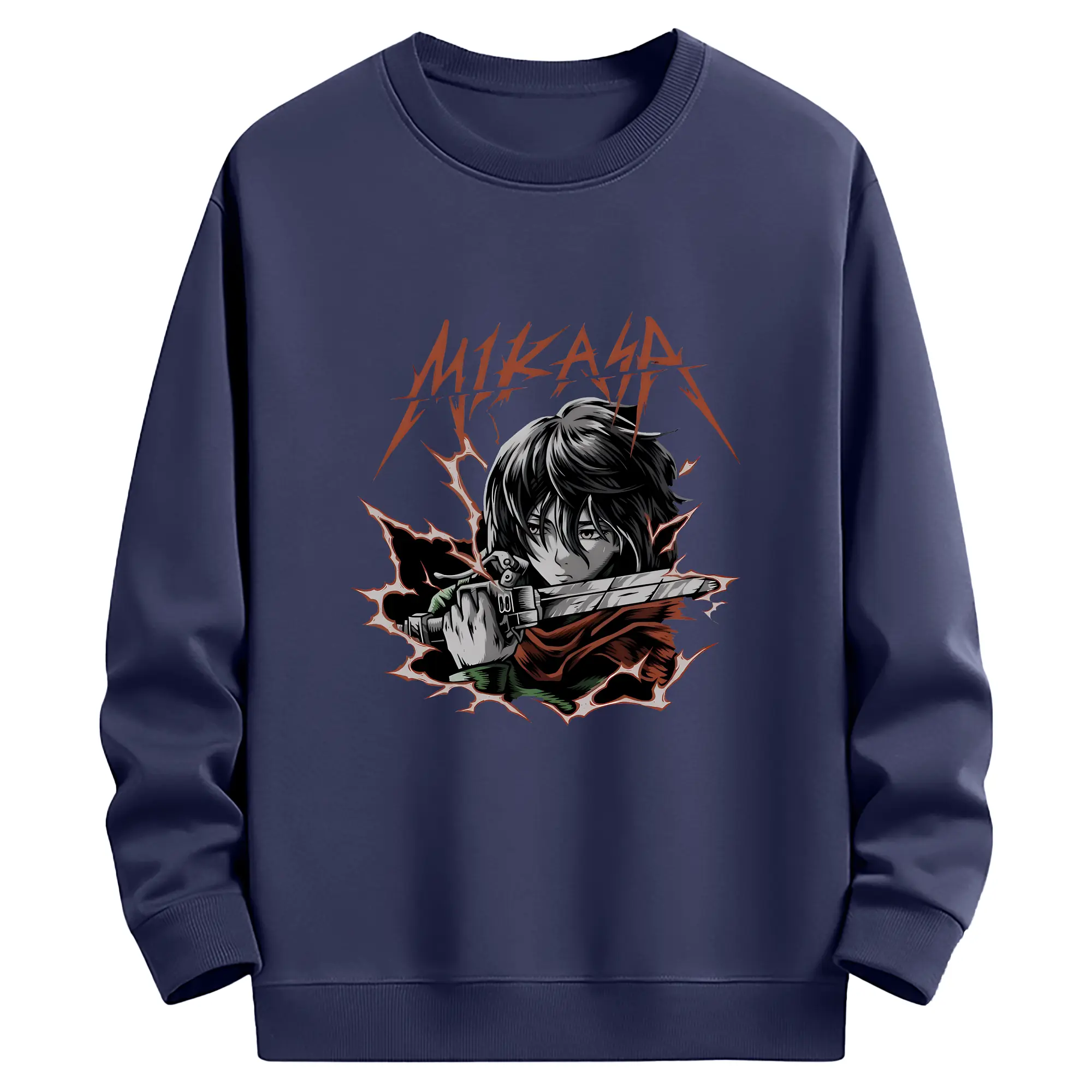 進撃の巨人 グッズ ミカサ・アッカーマン - 薄手 クルーネック スウェット 裏毛260g · ポリエステル 春秋向け カジュアル 男女兼用 · トレーナー デイリー スポーツ 散歩に最適