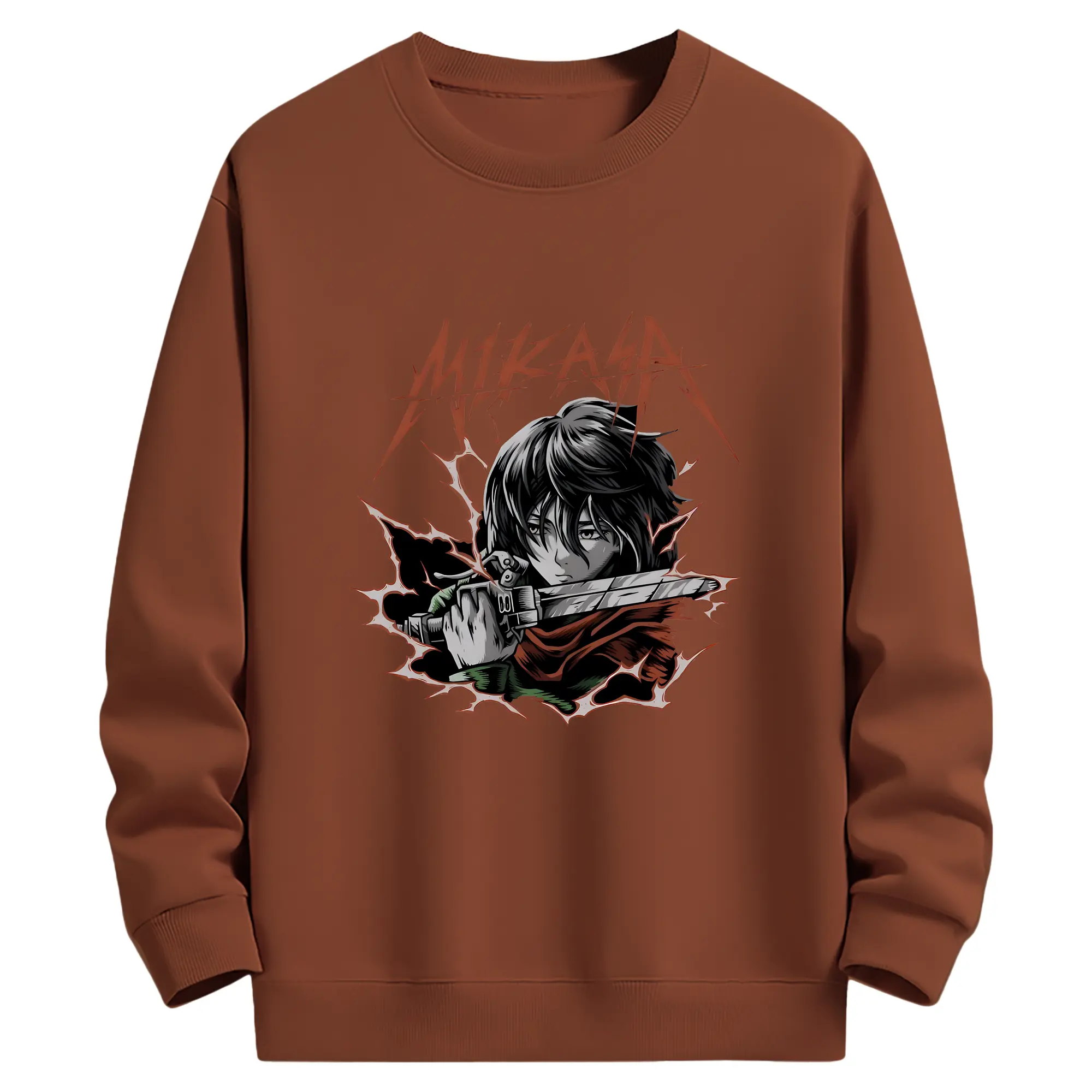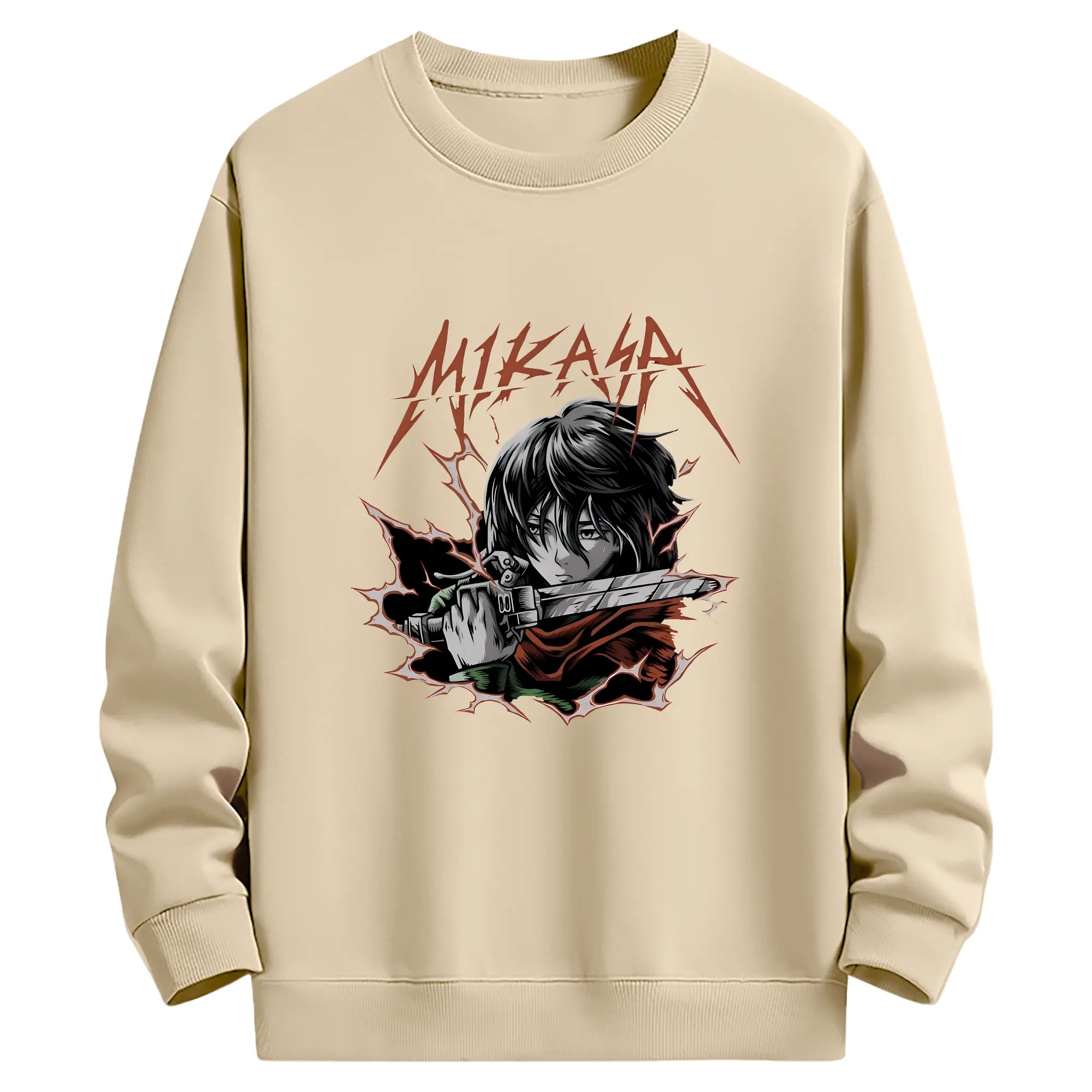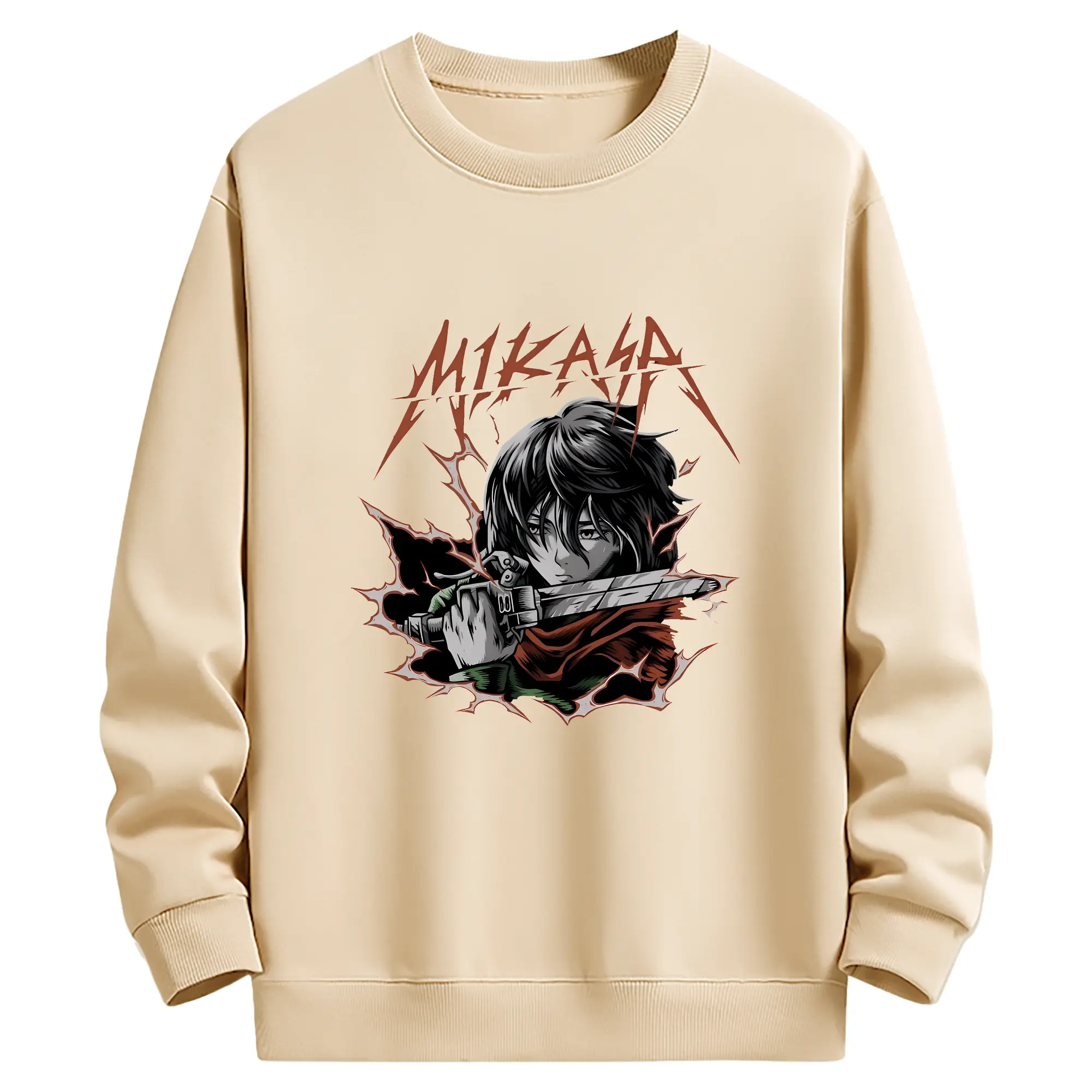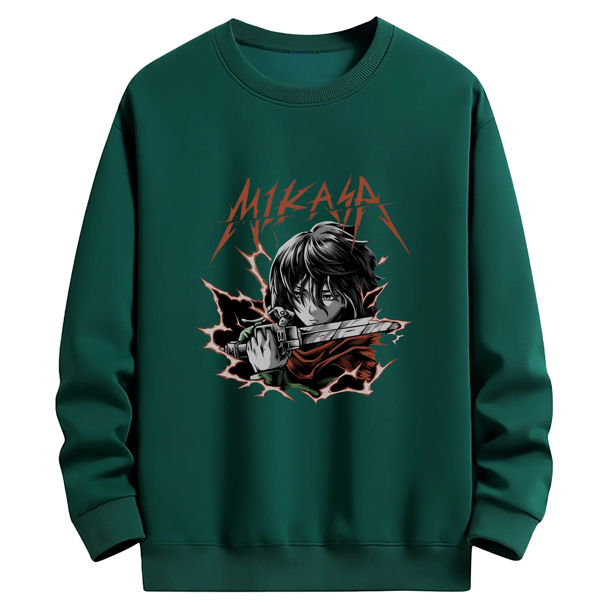 進撃の巨人 グッズ ミカサ・アッカーマン - 薄手 クルーネック スウェット 裏毛260g · ポリエステル 春秋向け カジュアル 男女兼用 · トレーナー デイリー スポーツ 散歩に最適