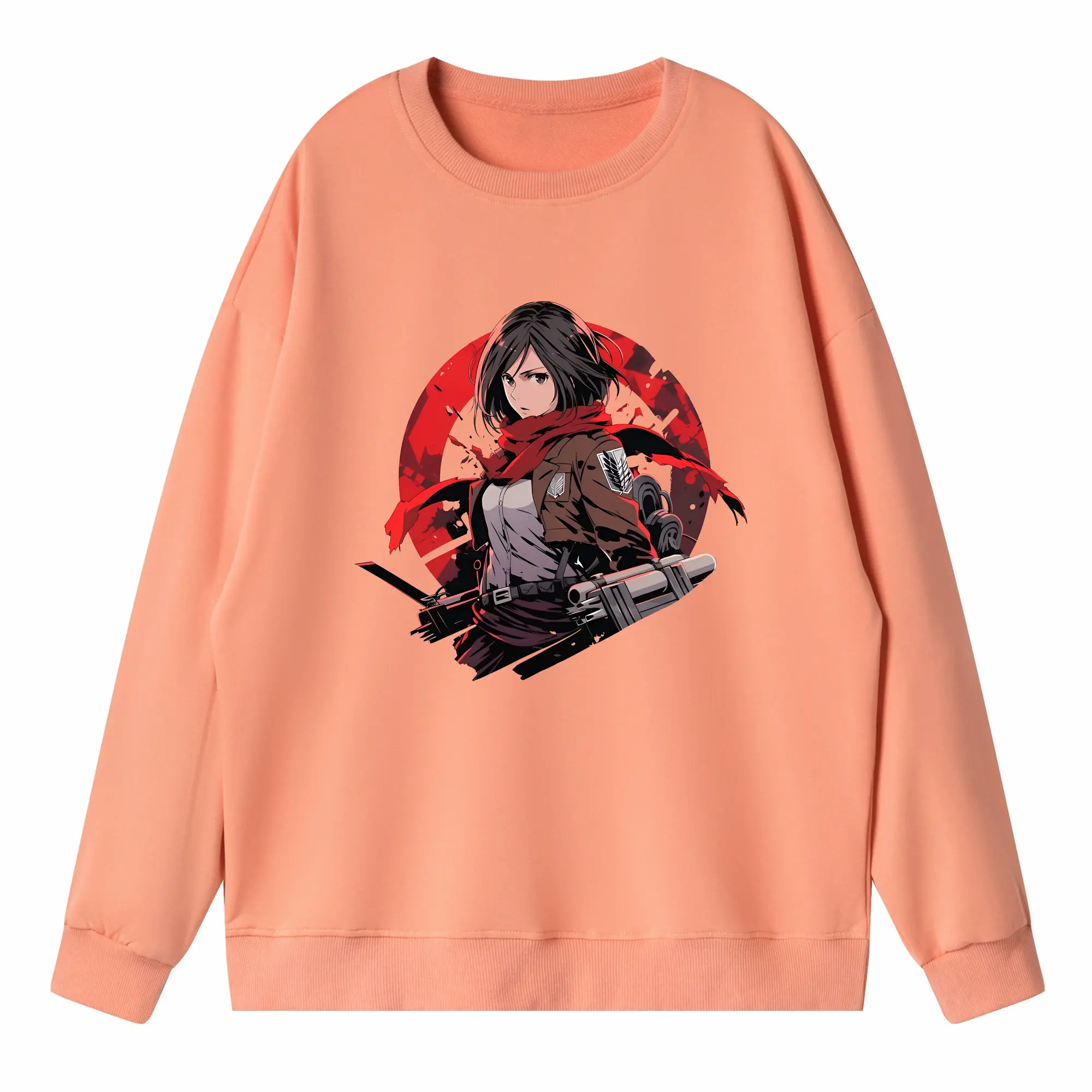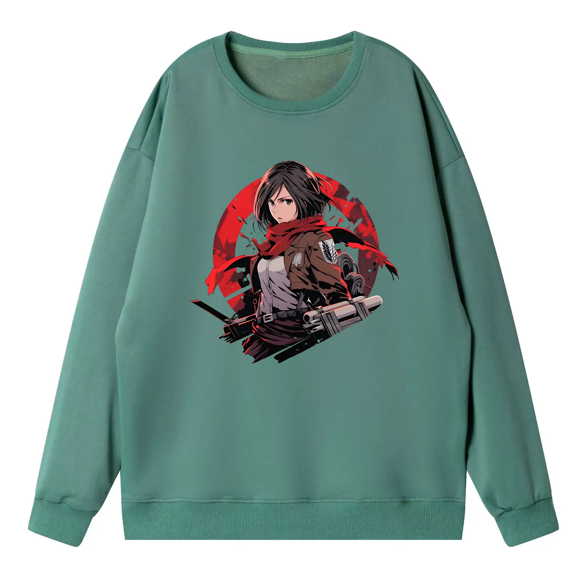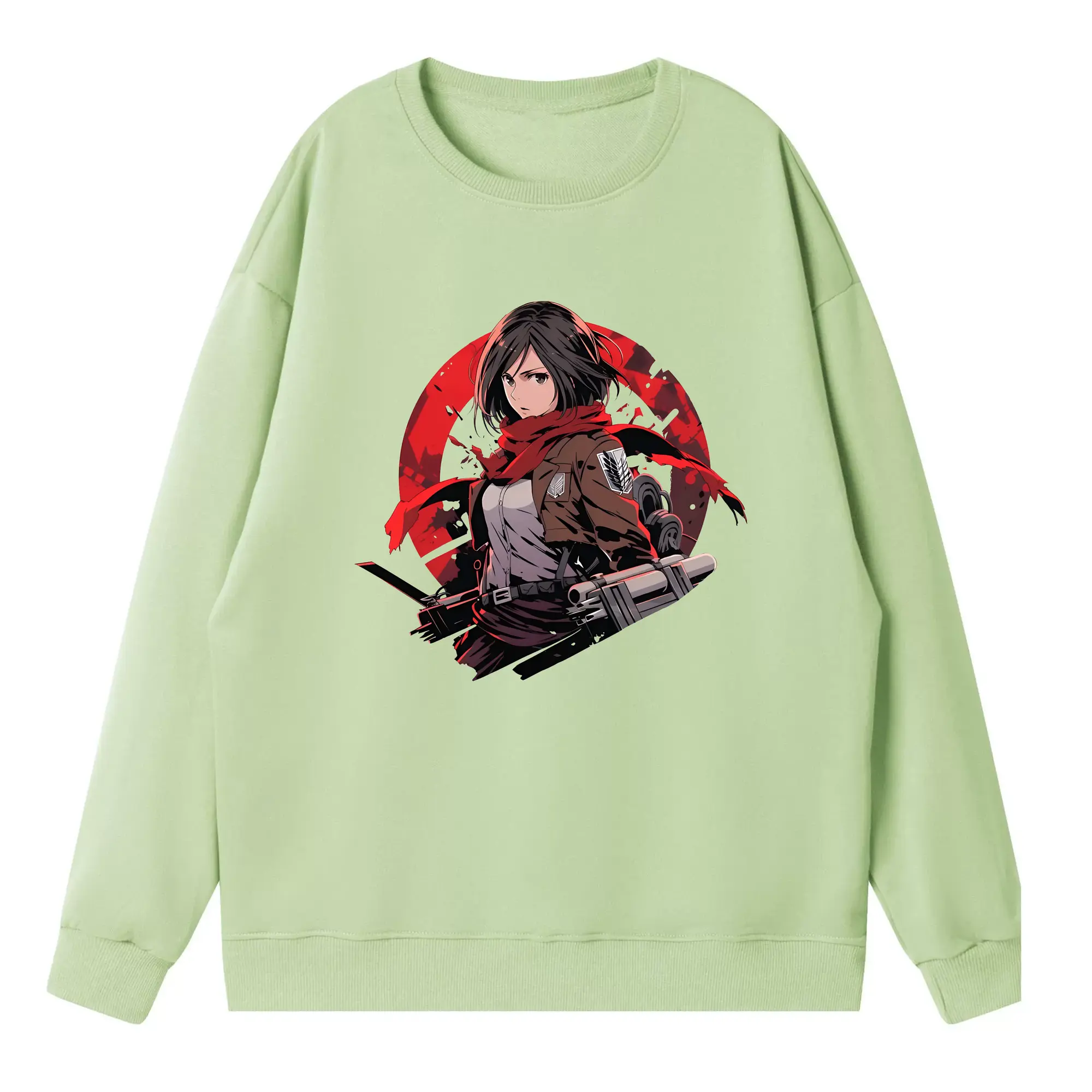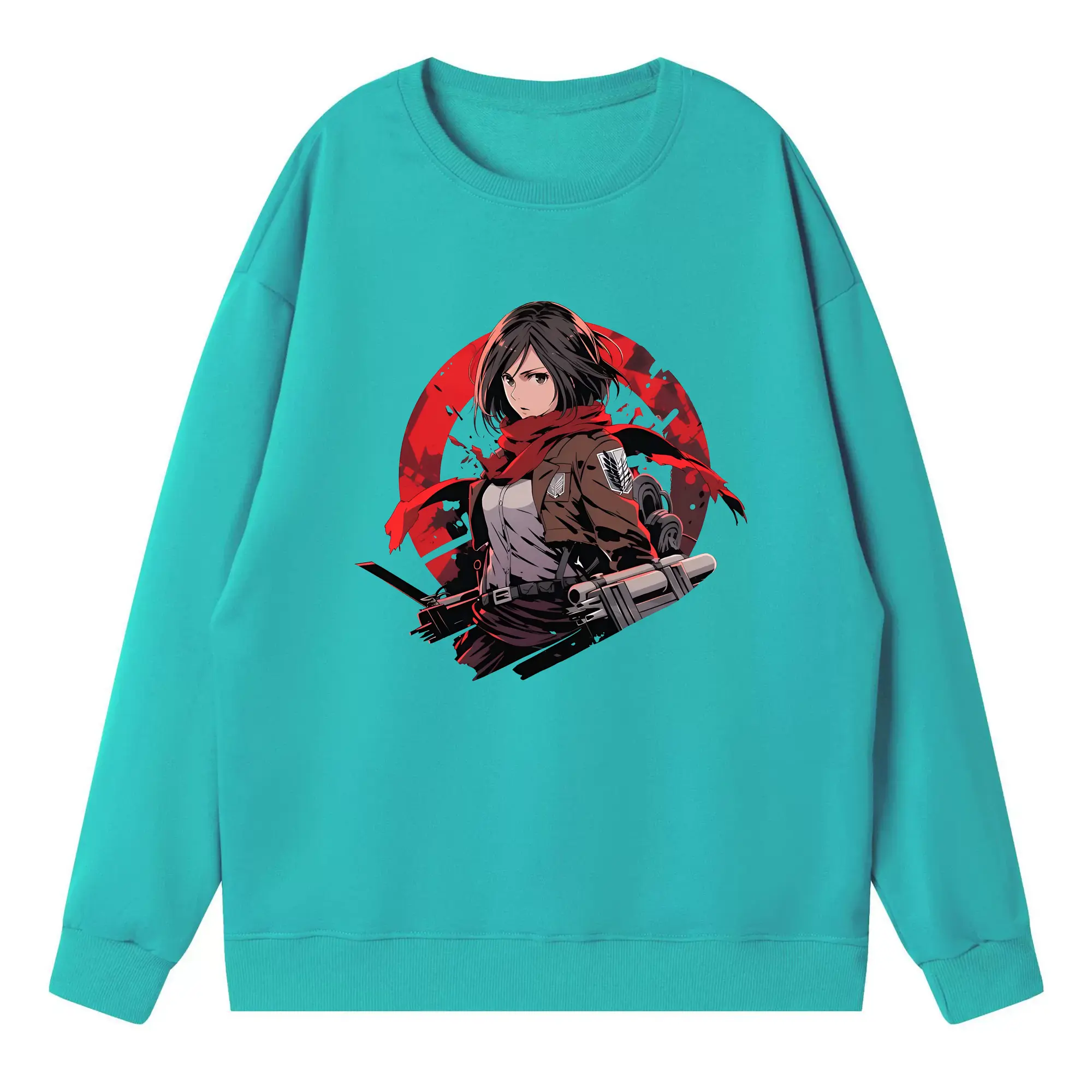 進撃の巨人 グッズ ミカサ・アッカーマン - 高品質 クルーネック スウェット ・ コットン59% ポリエステル41% ・ ユニセックス 長袖 トレーナー ・ カジュアル デイリー スポーツ 散歩用