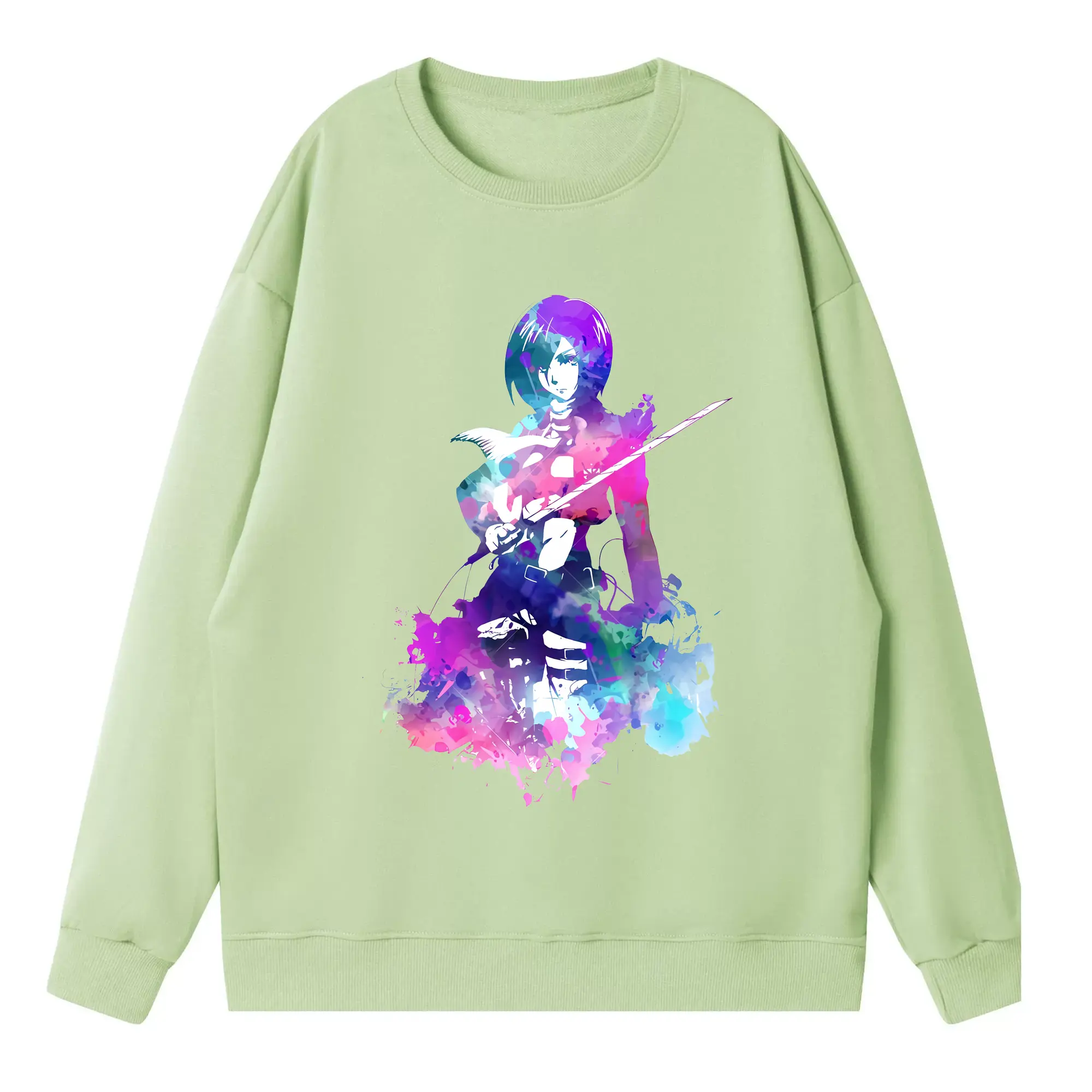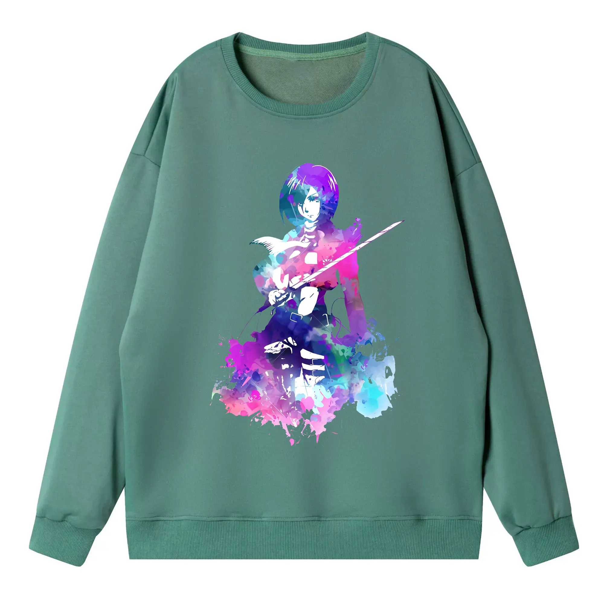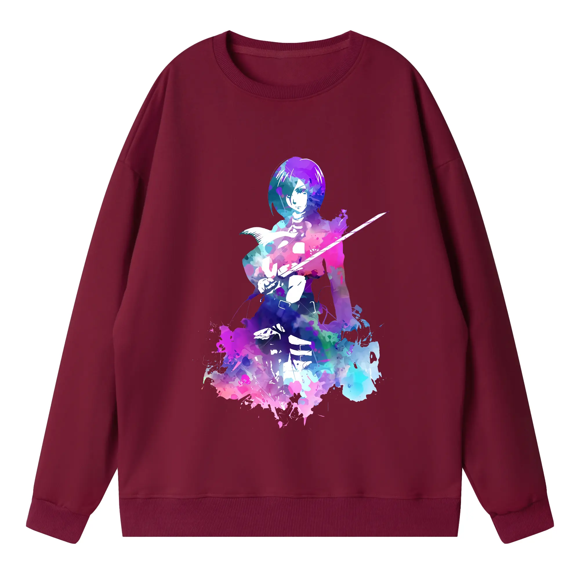 進撃の巨人 グッズ ミカサ・アッカーマン - 高品質 クルーネック スウェット ・ コットン59% ポリエステル41% ・ ユニセックス 長袖 トレーナー ・ カジュアル デイリー スポーツ 散歩用