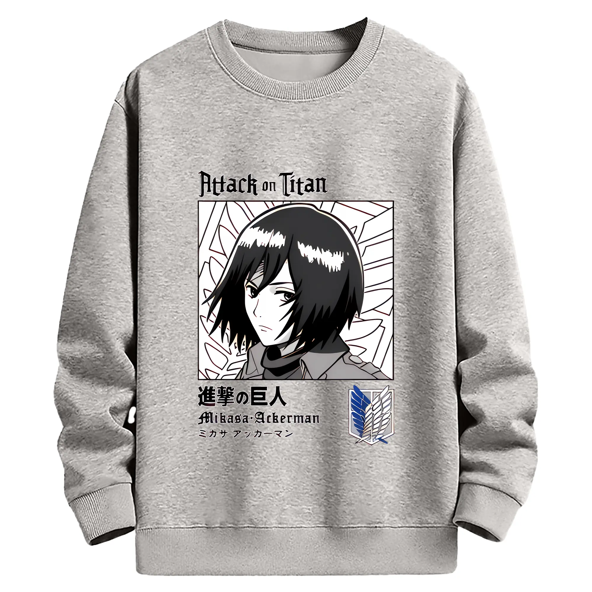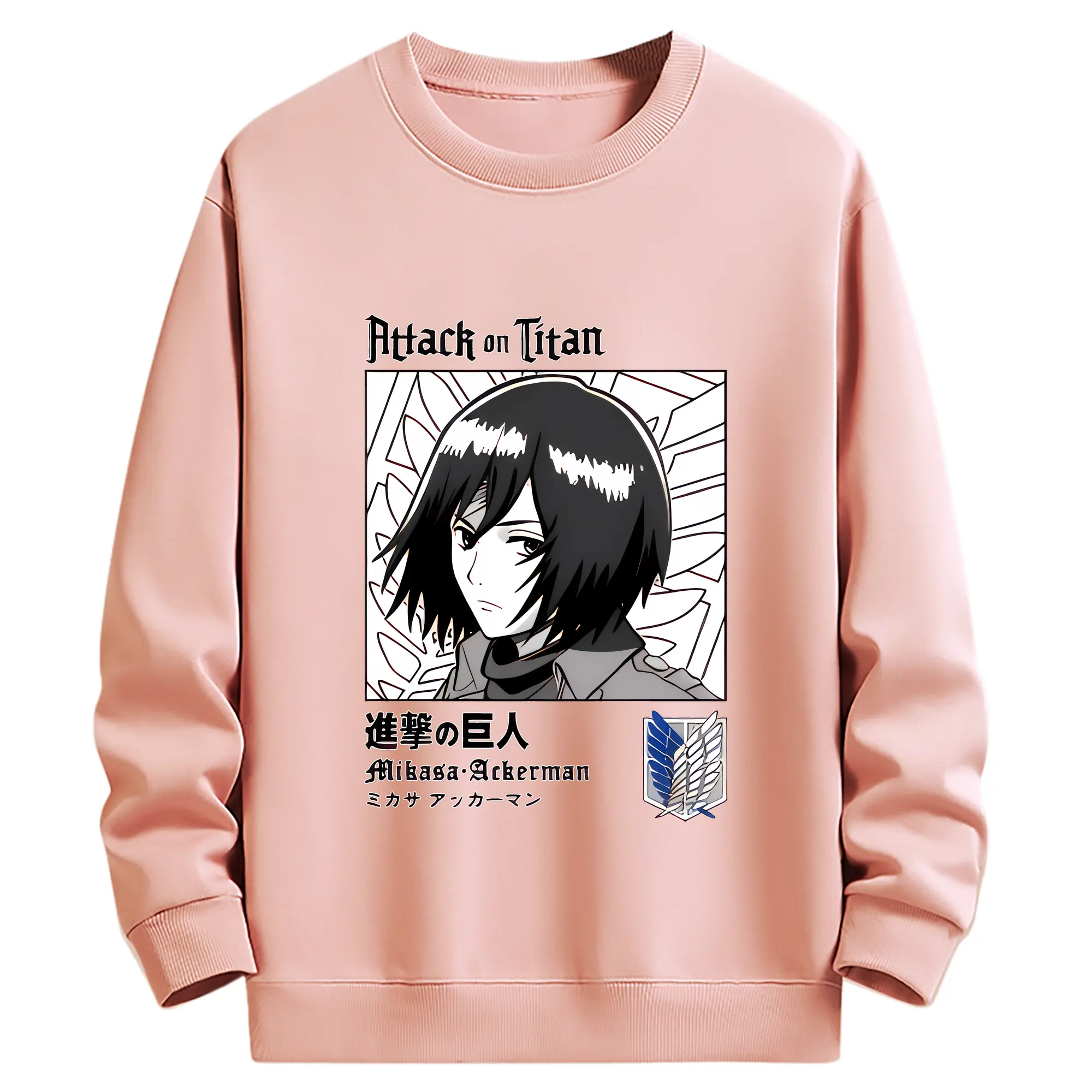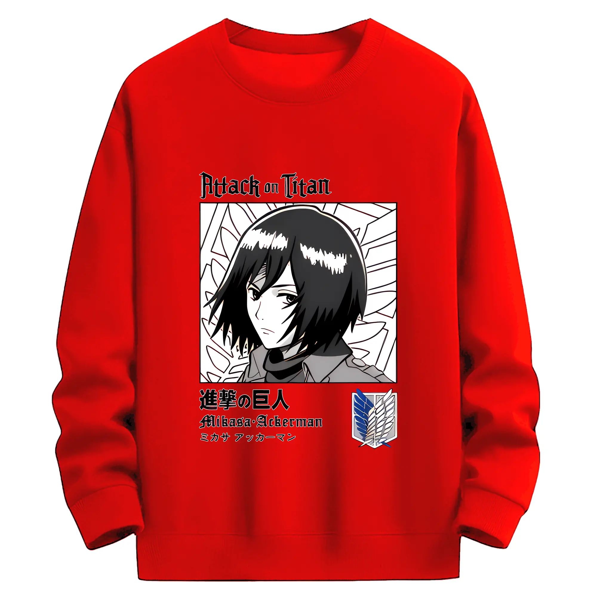 進撃の巨人 グッズ ミカサ・アッカーマン - 薄手 クルーネック スウェット 裏毛260g · ポリエステル 春秋向け カジュアル 男女兼用 · トレーナー デイリー スポーツ 散歩に最適