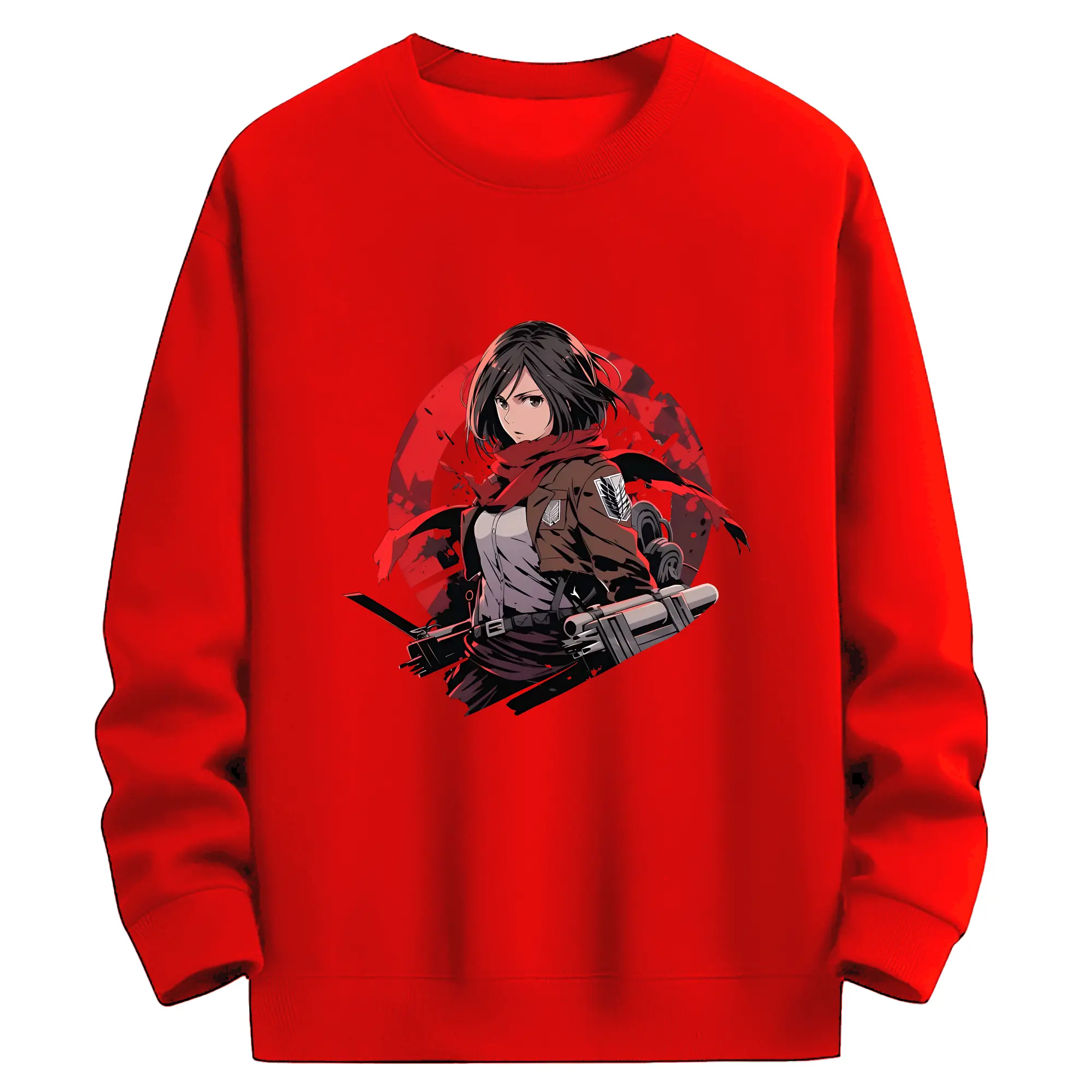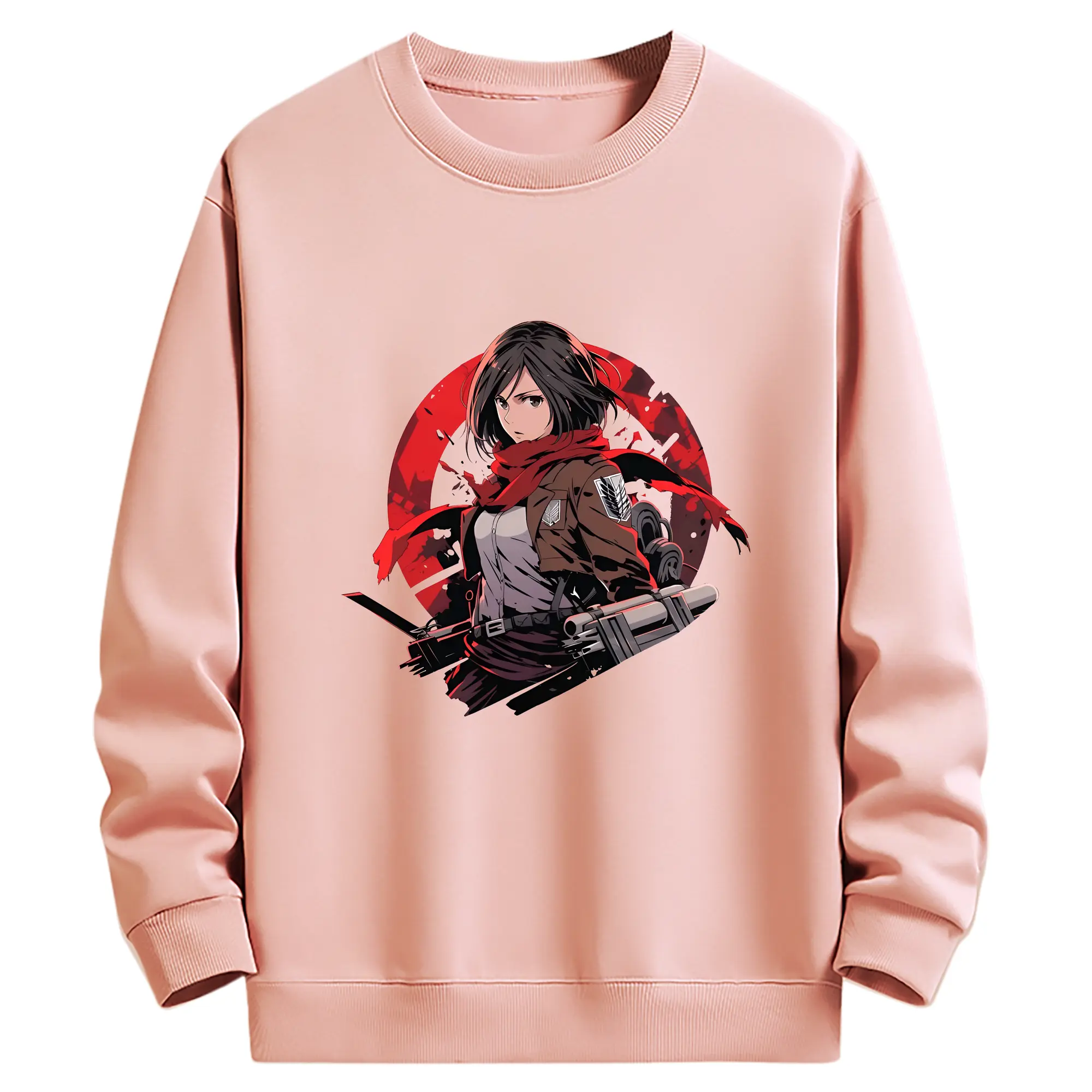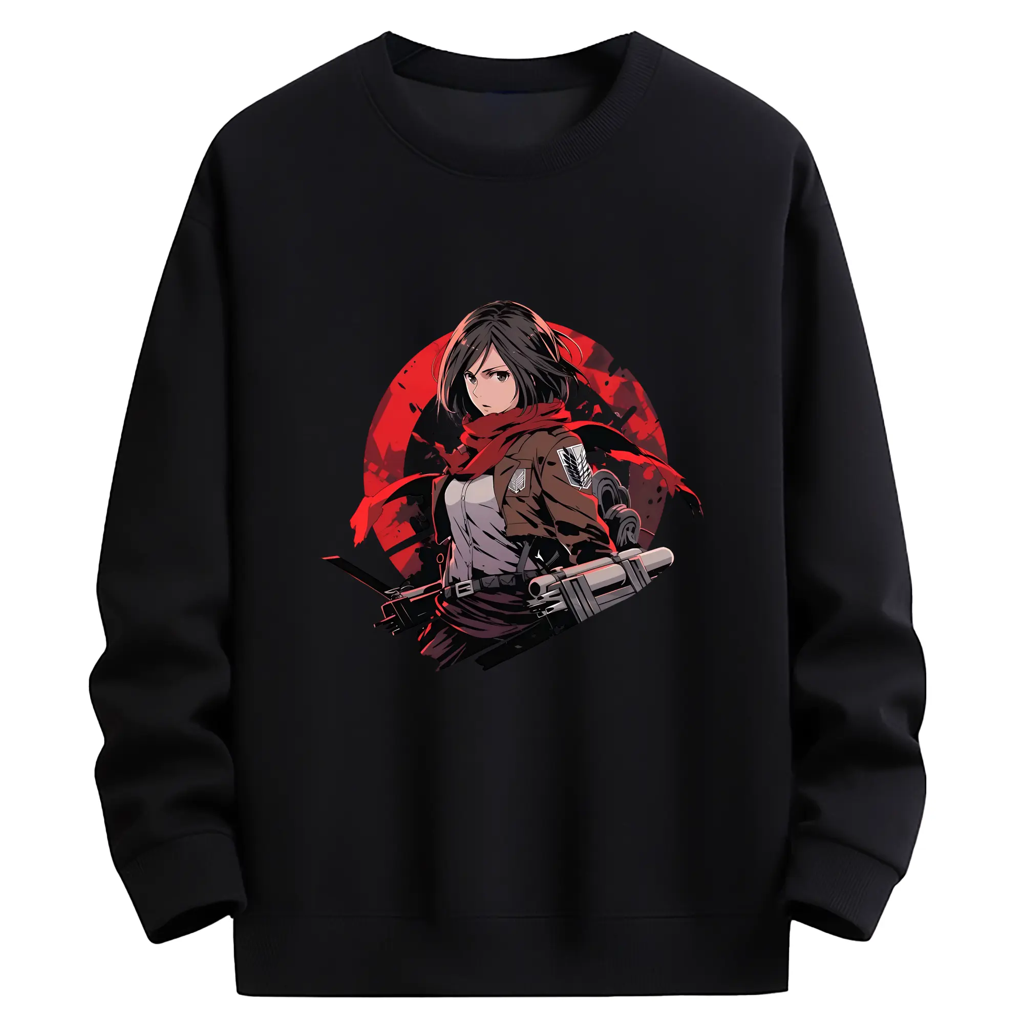 進撃の巨人 グッズ ミカサ・アッカーマン - 薄手 クルーネック スウェット 裏毛260g · ポリエステル 春秋向け カジュアル 男女兼用 · トレーナー デイリー スポーツ 散歩に最適