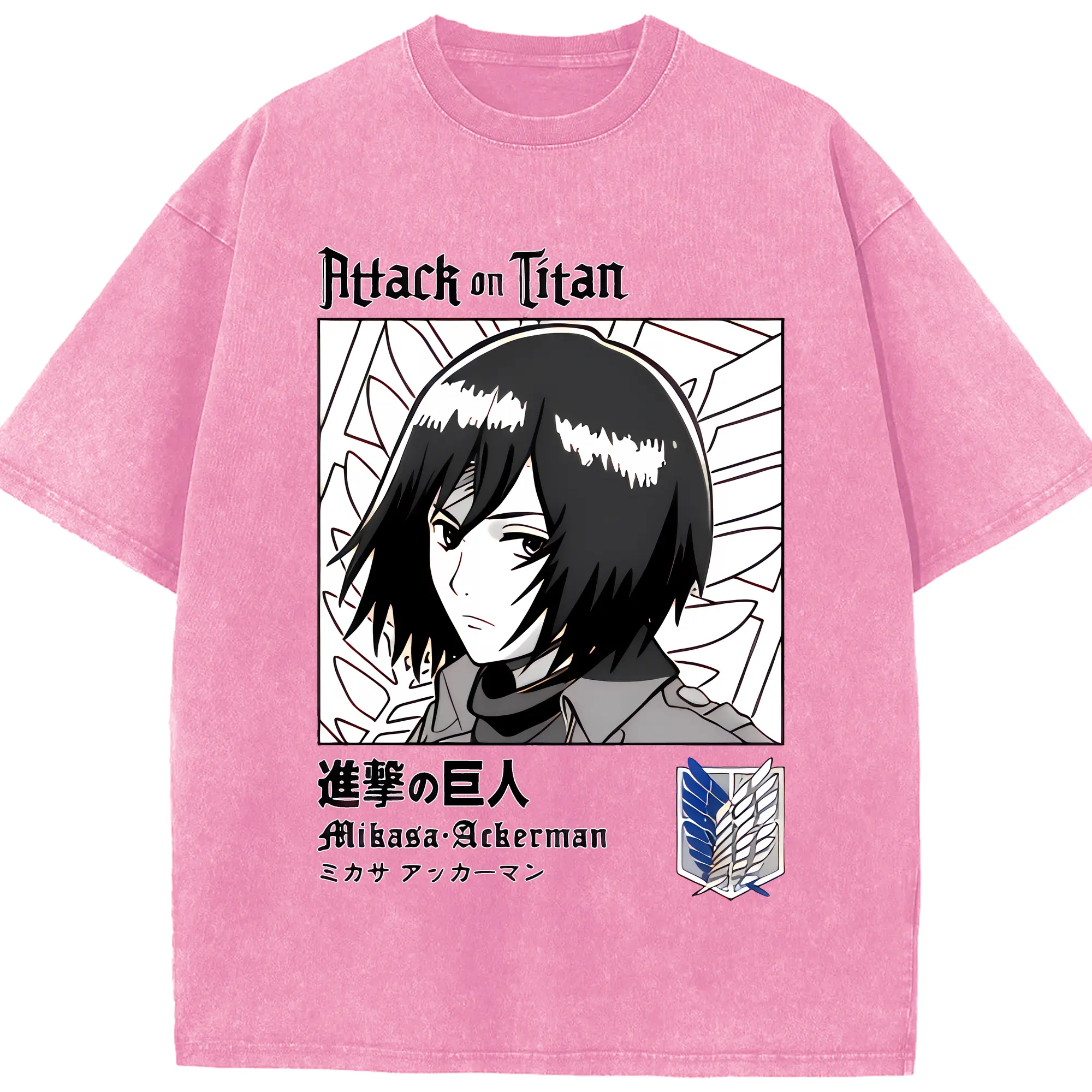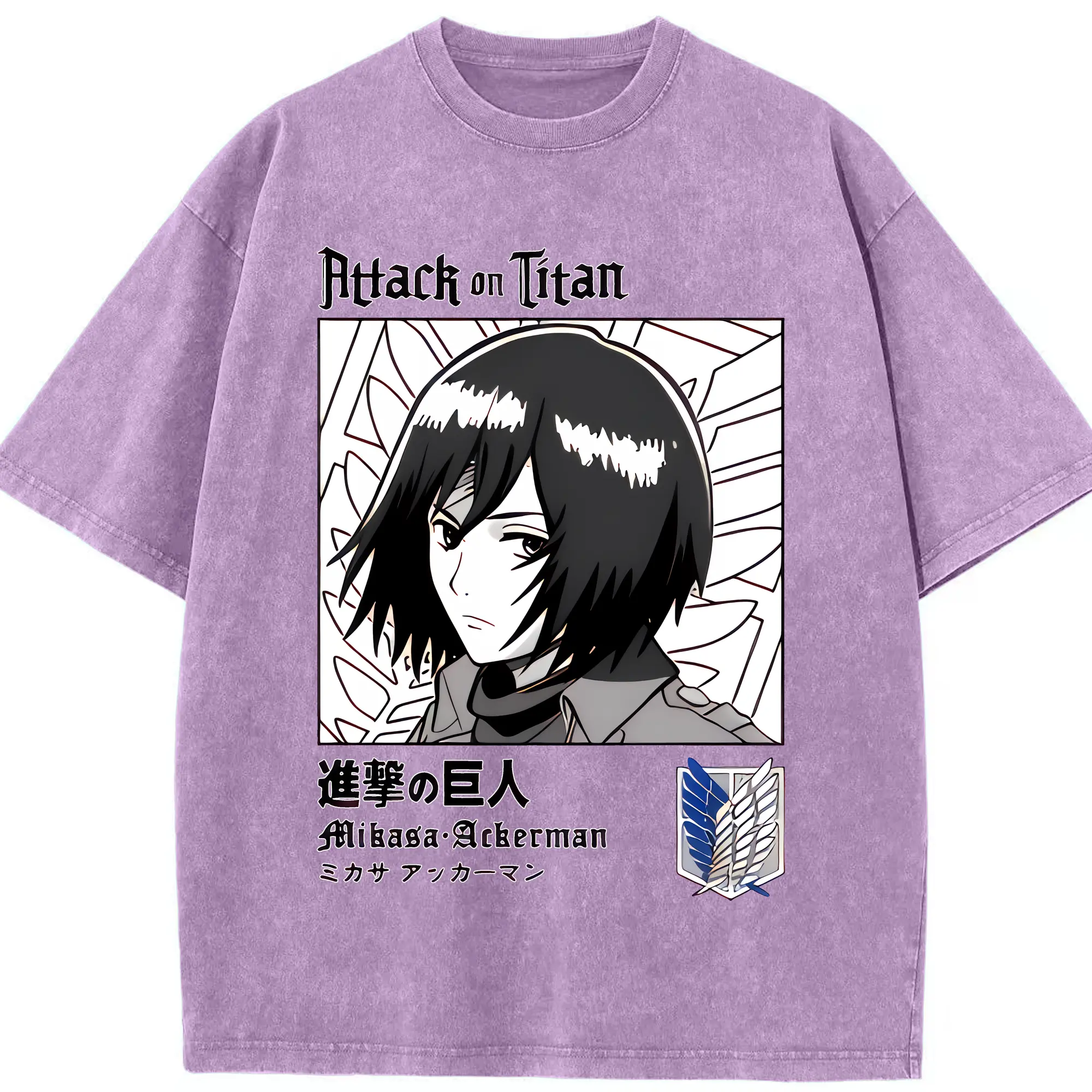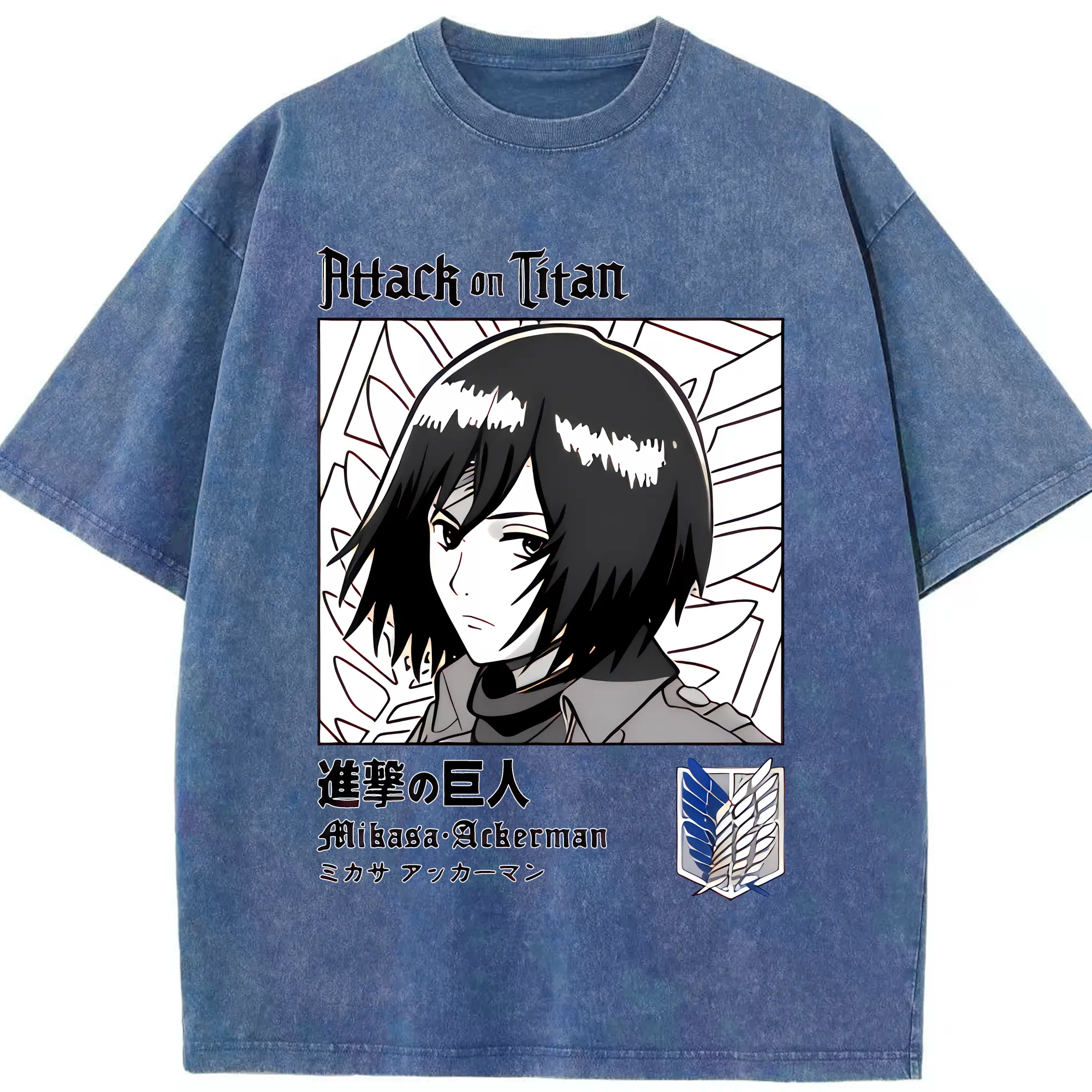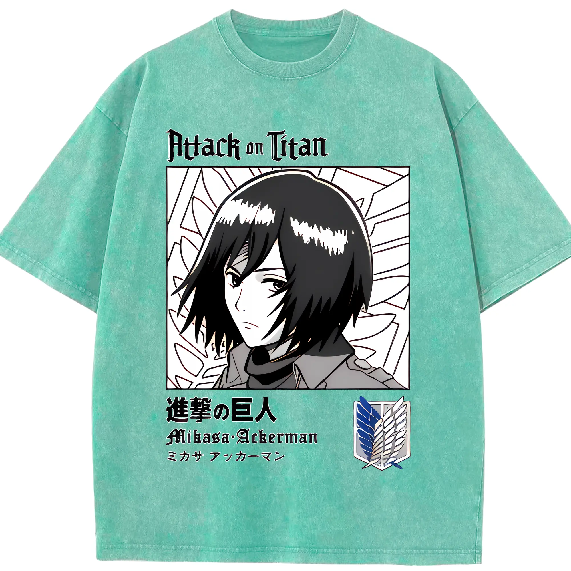 進撃の巨人 グッズ ミカサ・アッカーマン - 綿100% ヴィンテージ風 半袖Tシャツ ・ 背面プリント ・ 柔らか肌触り ・ 通気性 快適 ・ スポーツ カジュアル 外出用