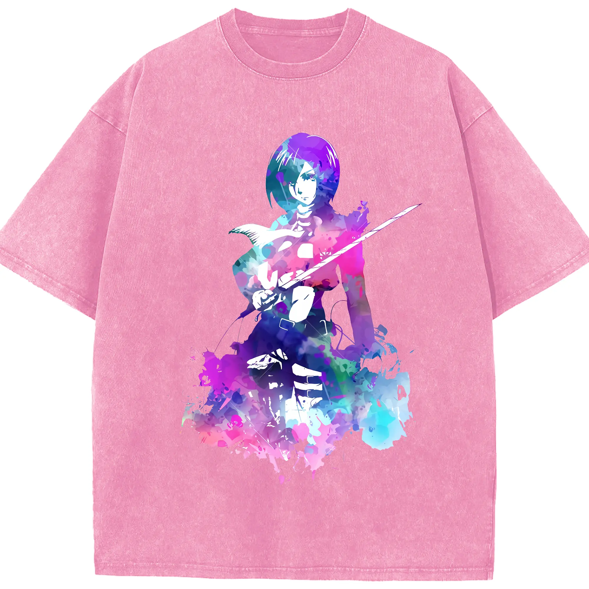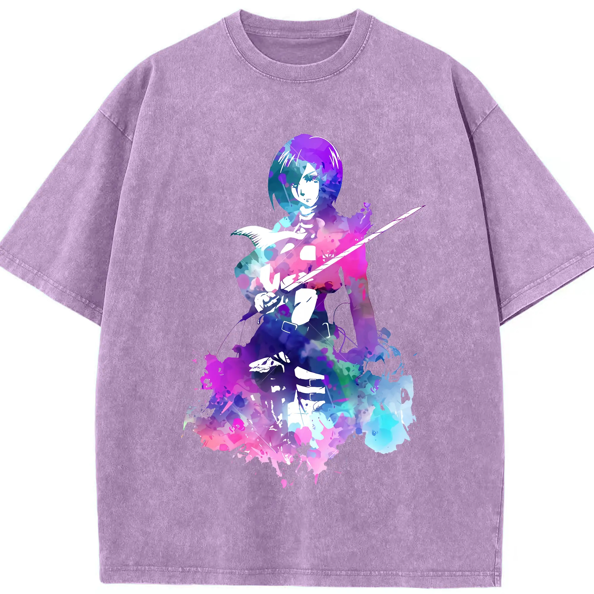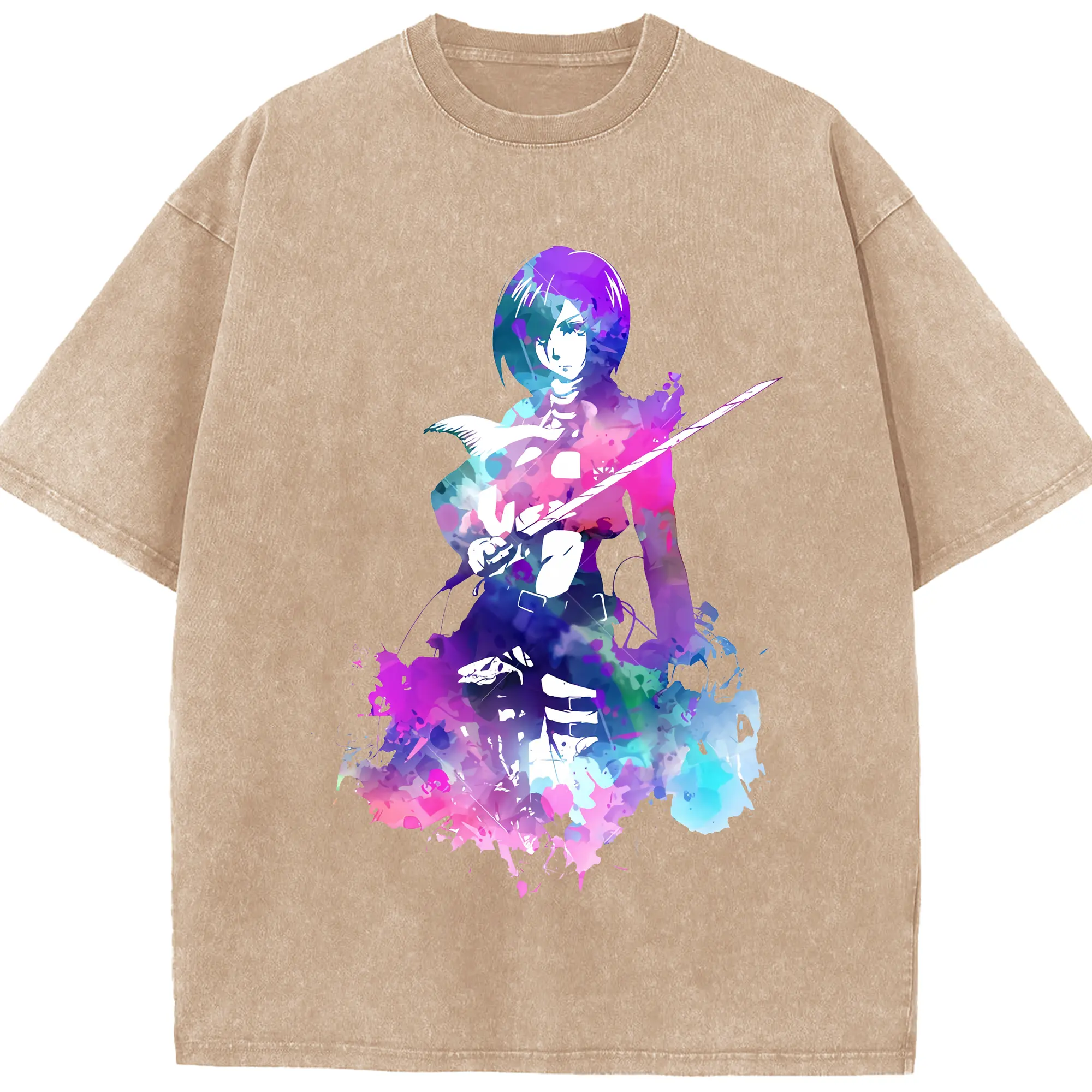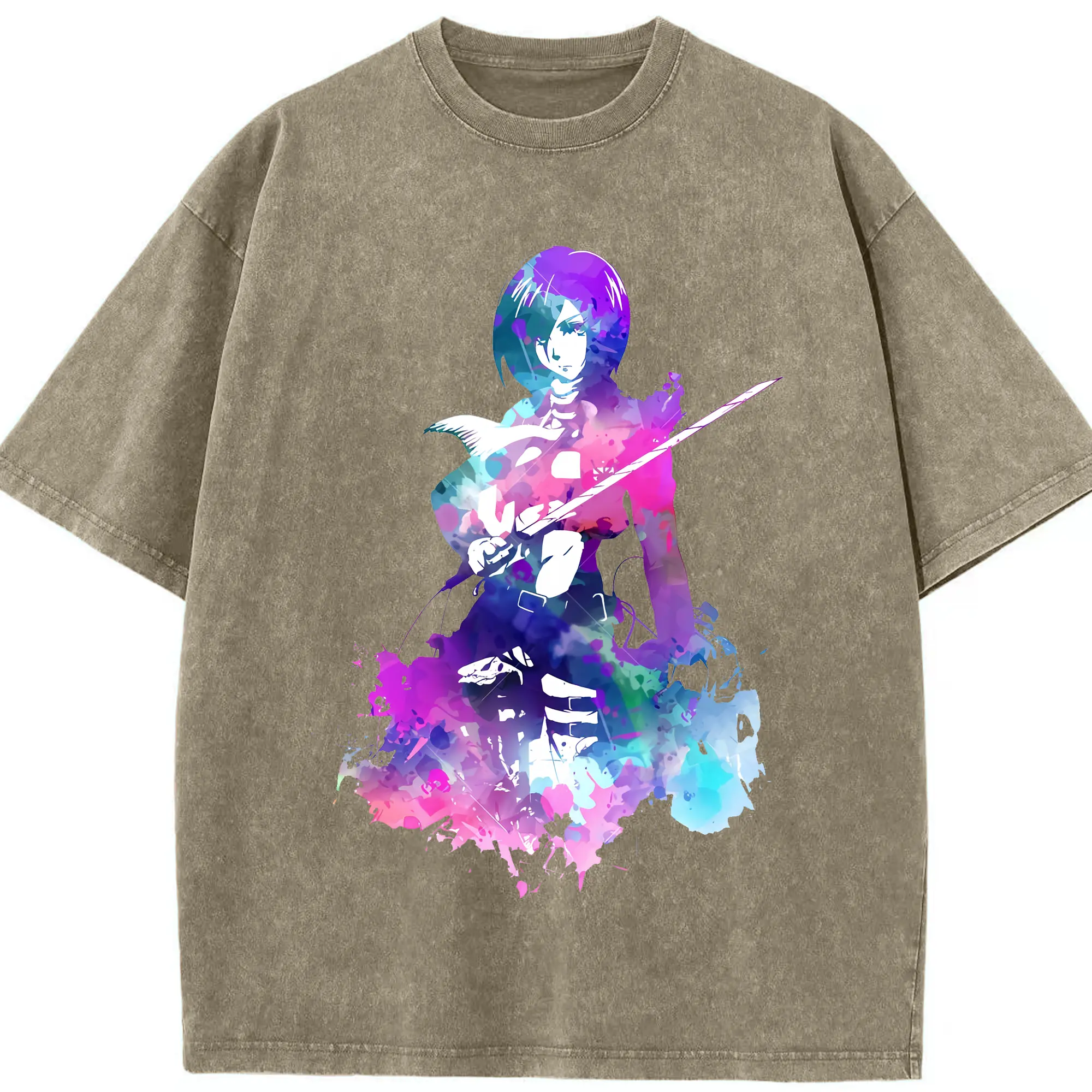 進撃の巨人 グッズ ミカサ・アッカーマン - 綿100% ヴィンテージ風 半袖Tシャツ ・ 背面プリント ・ 柔らか肌触り ・ 通気性 快適 ・ スポーツ カジュアル 外出用