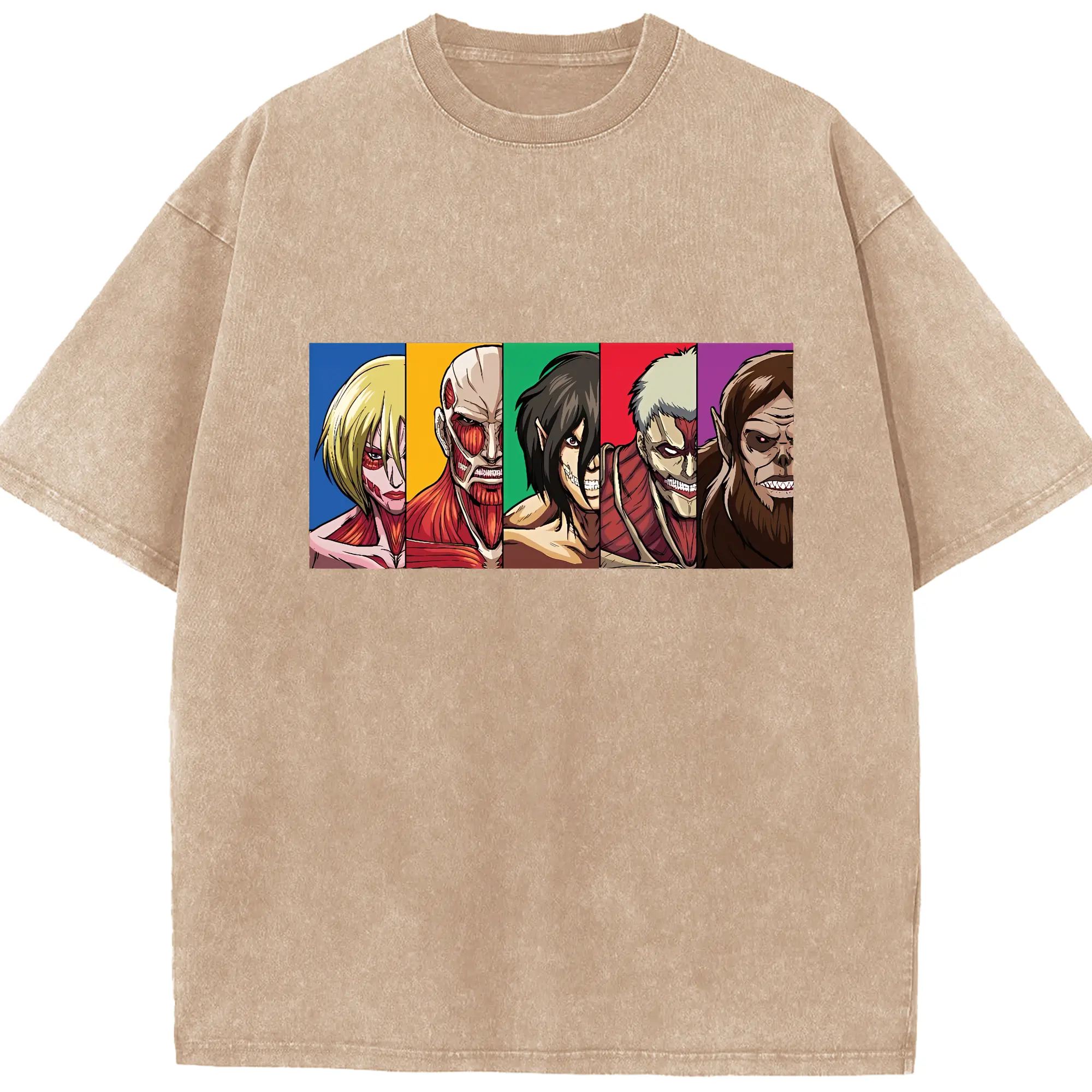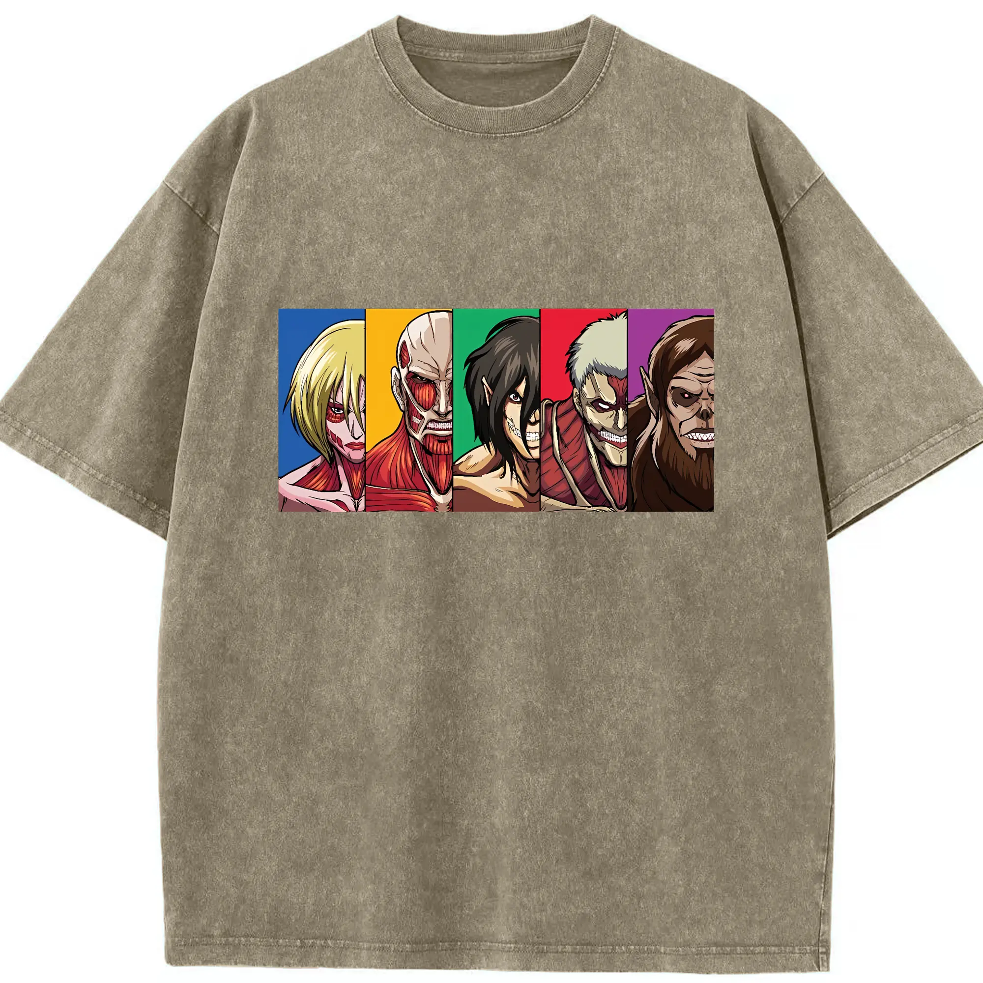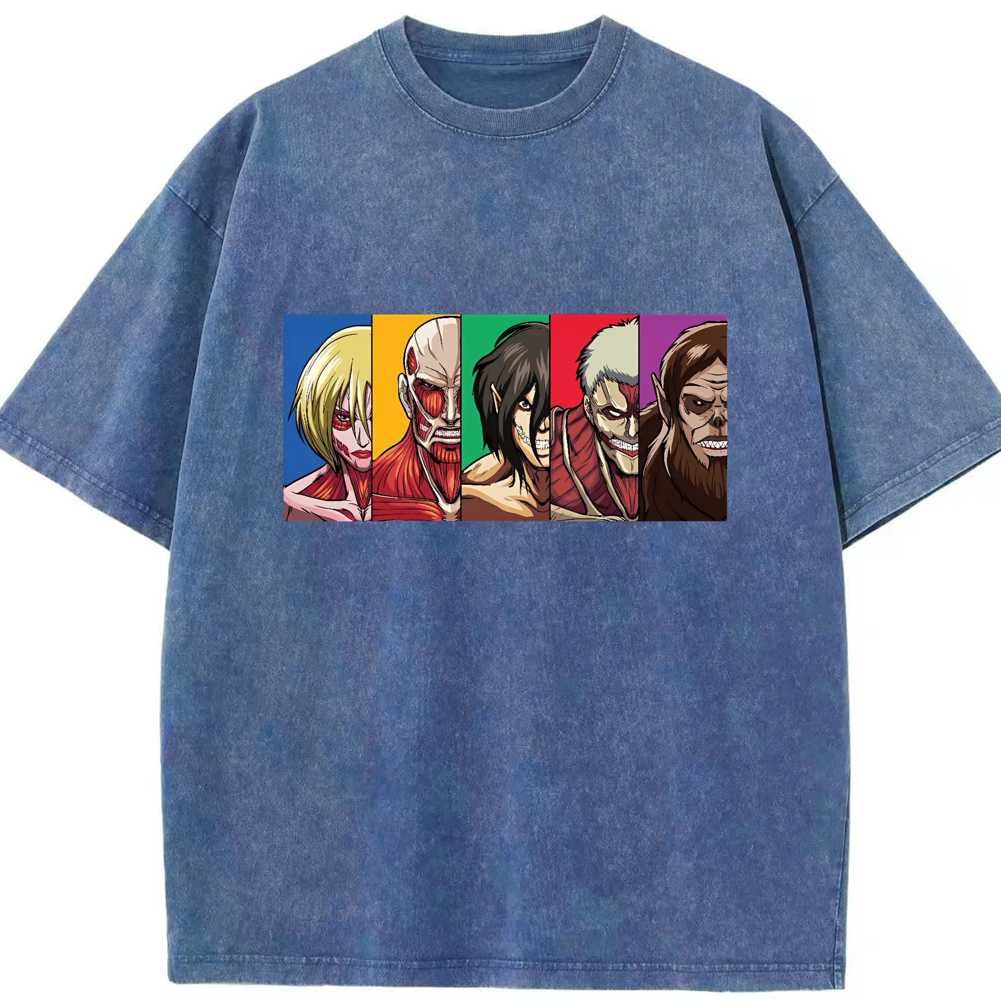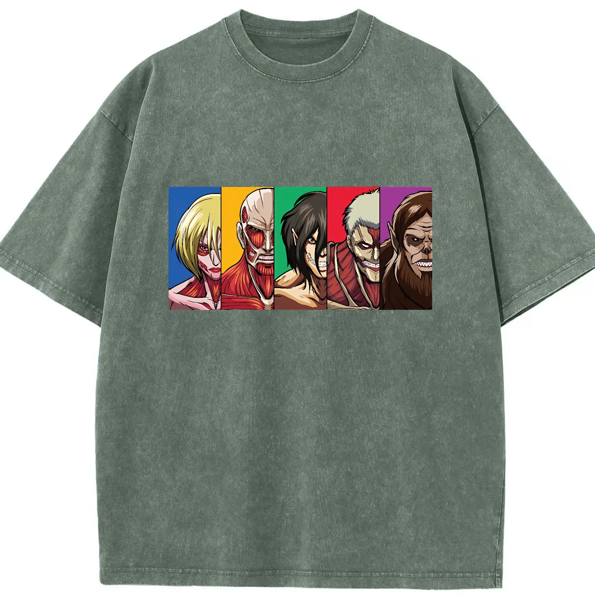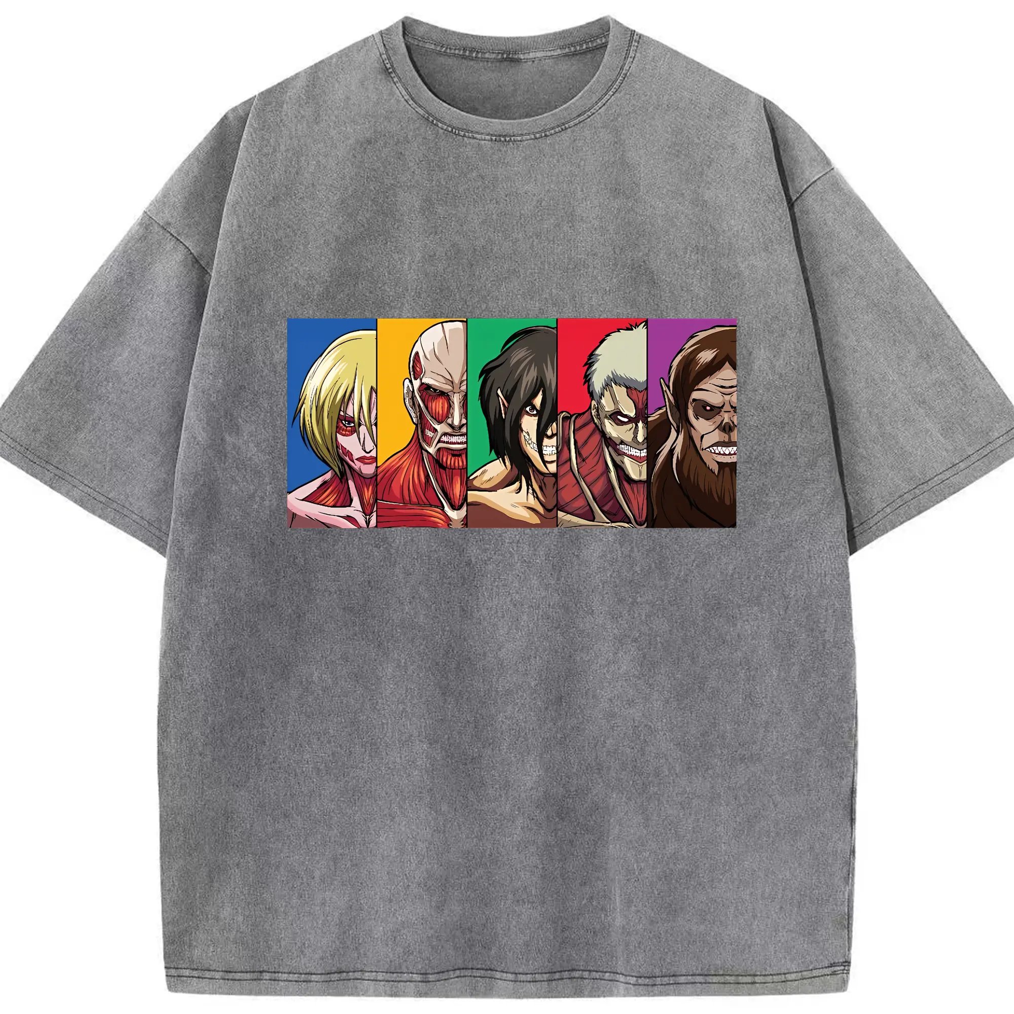 進撃の巨人 グッズ ミカサ・アッカーマン - 綿100% ヴィンテージ風 半袖Tシャツ ・ 背面プリント ・ 柔らか肌触り ・ 通気性 快適 ・ スポーツ カジュアル 外出用