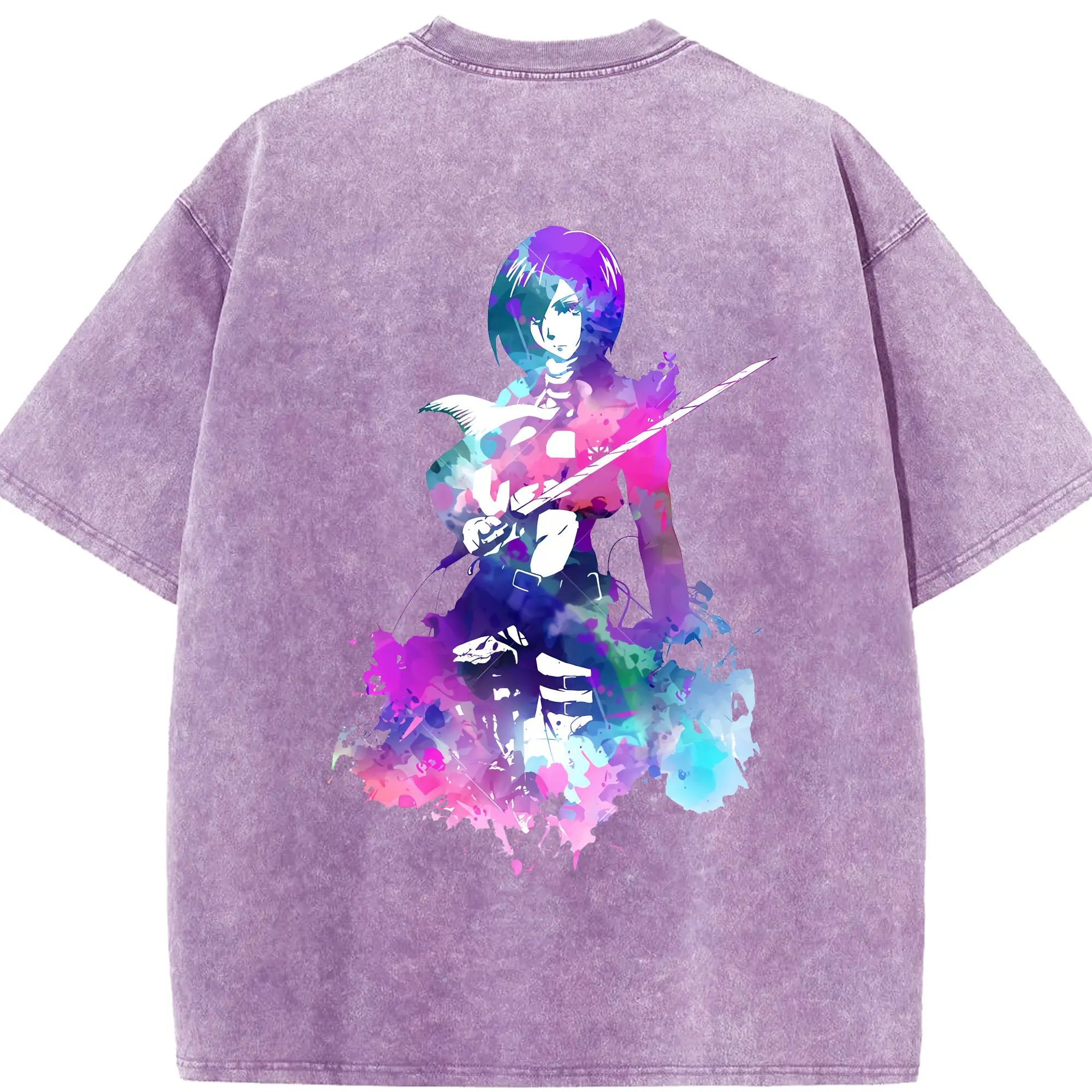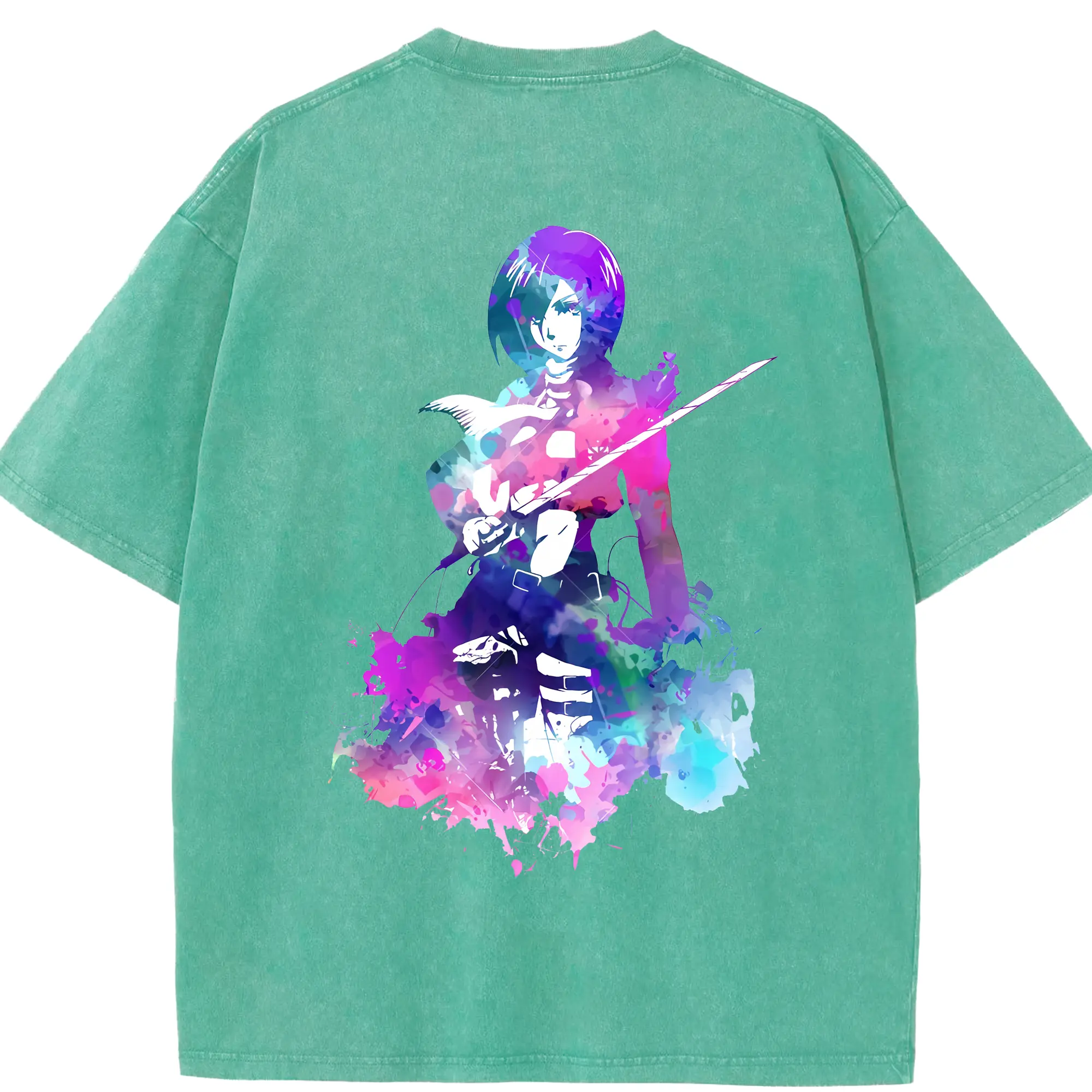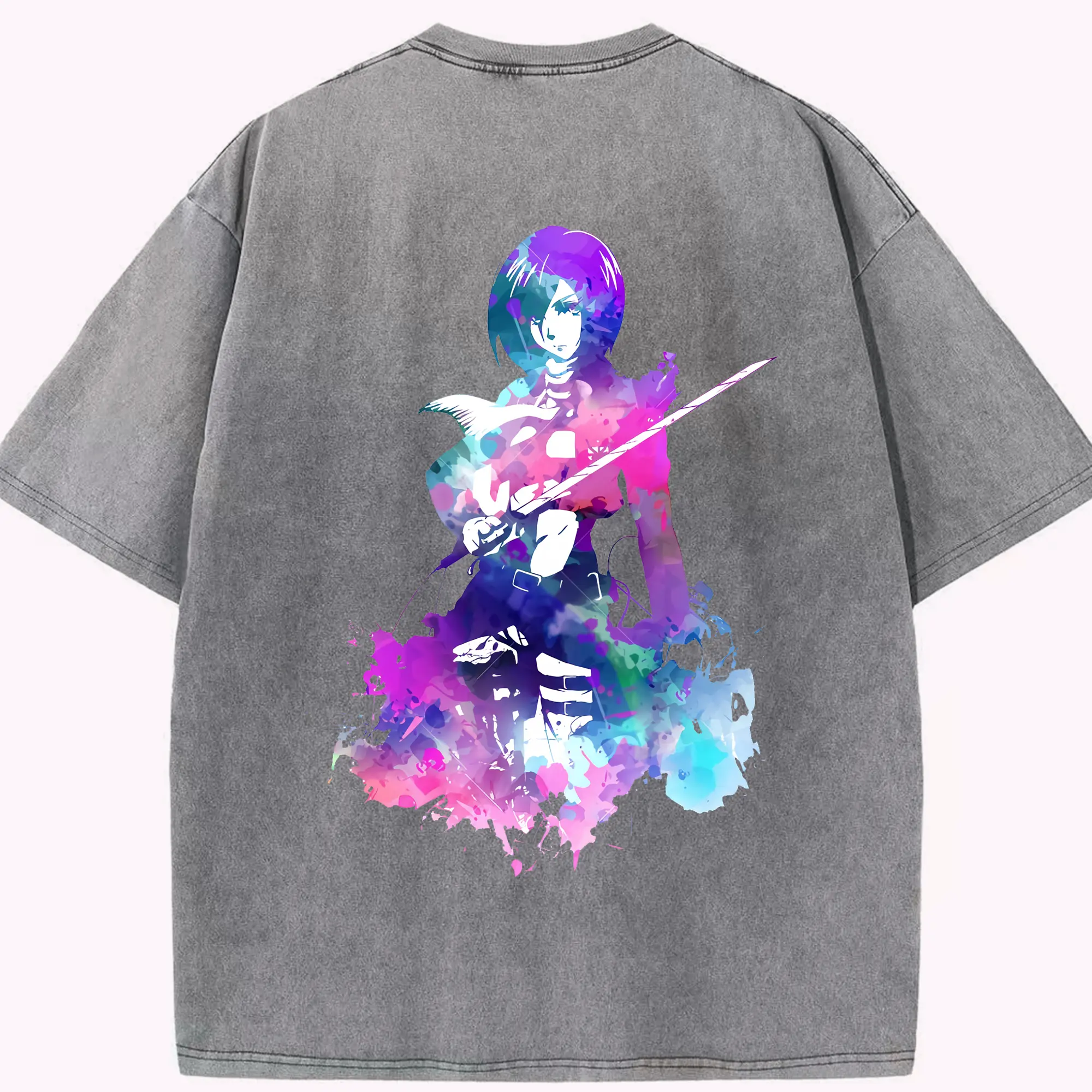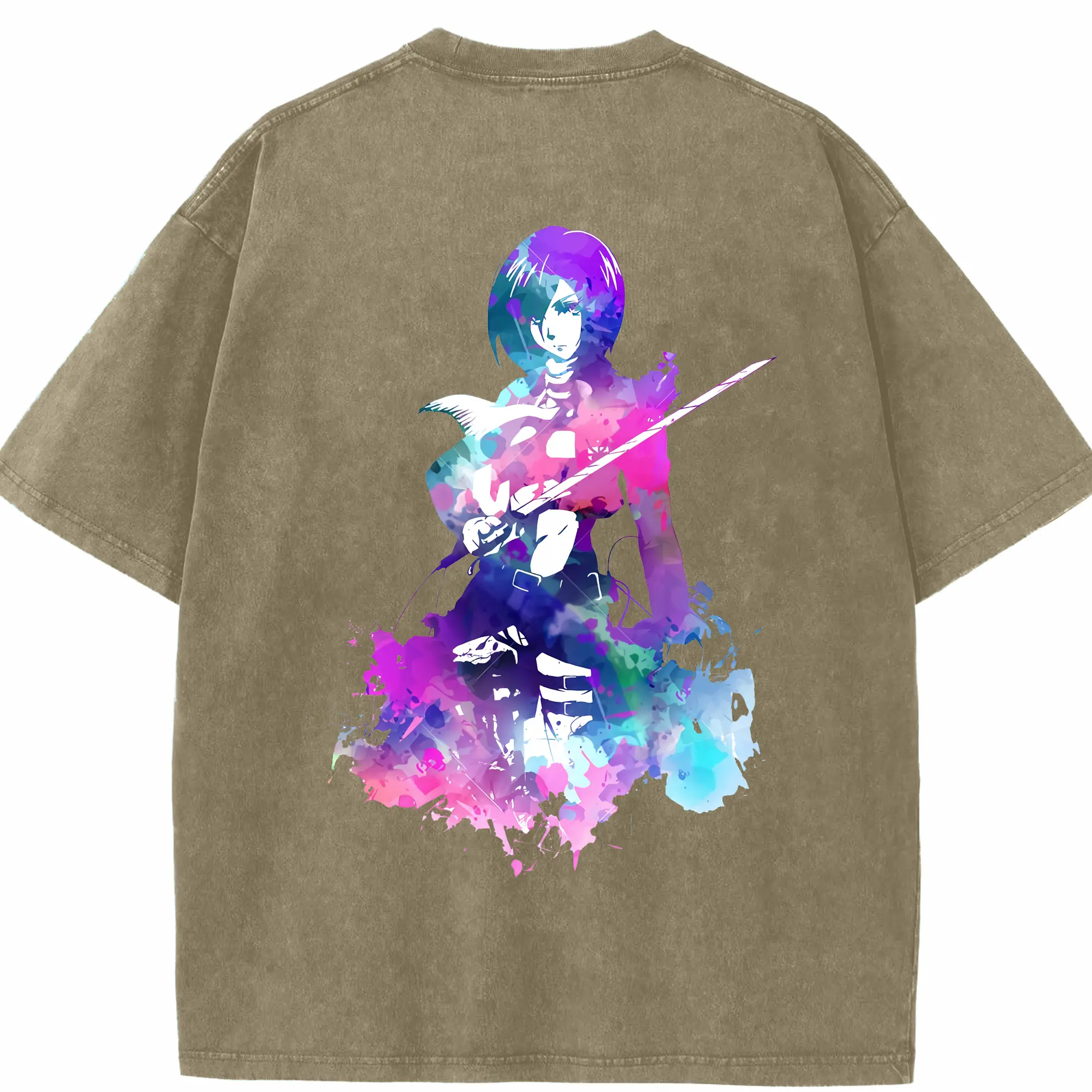 進撃の巨人 グッズ ミカサ・アッカーマン - 綿100% ヴィンテージ風 半袖Tシャツ ・ フロントプリント ・ 柔らか肌触り ・ 通気性 快適 ・ スポーツ カジュアル 外出用