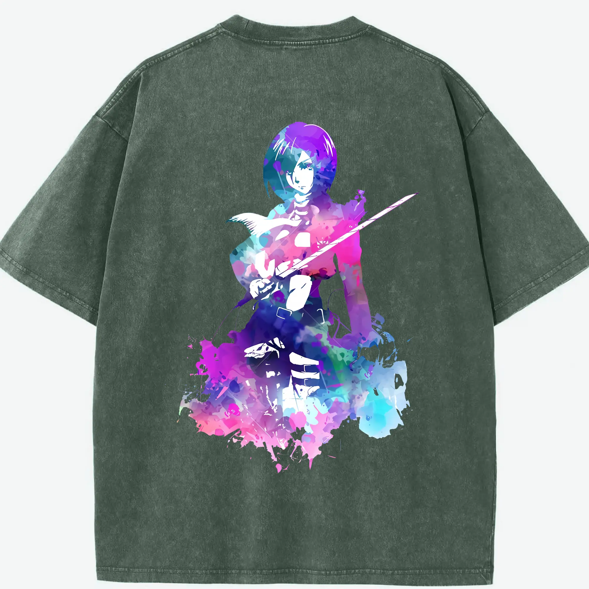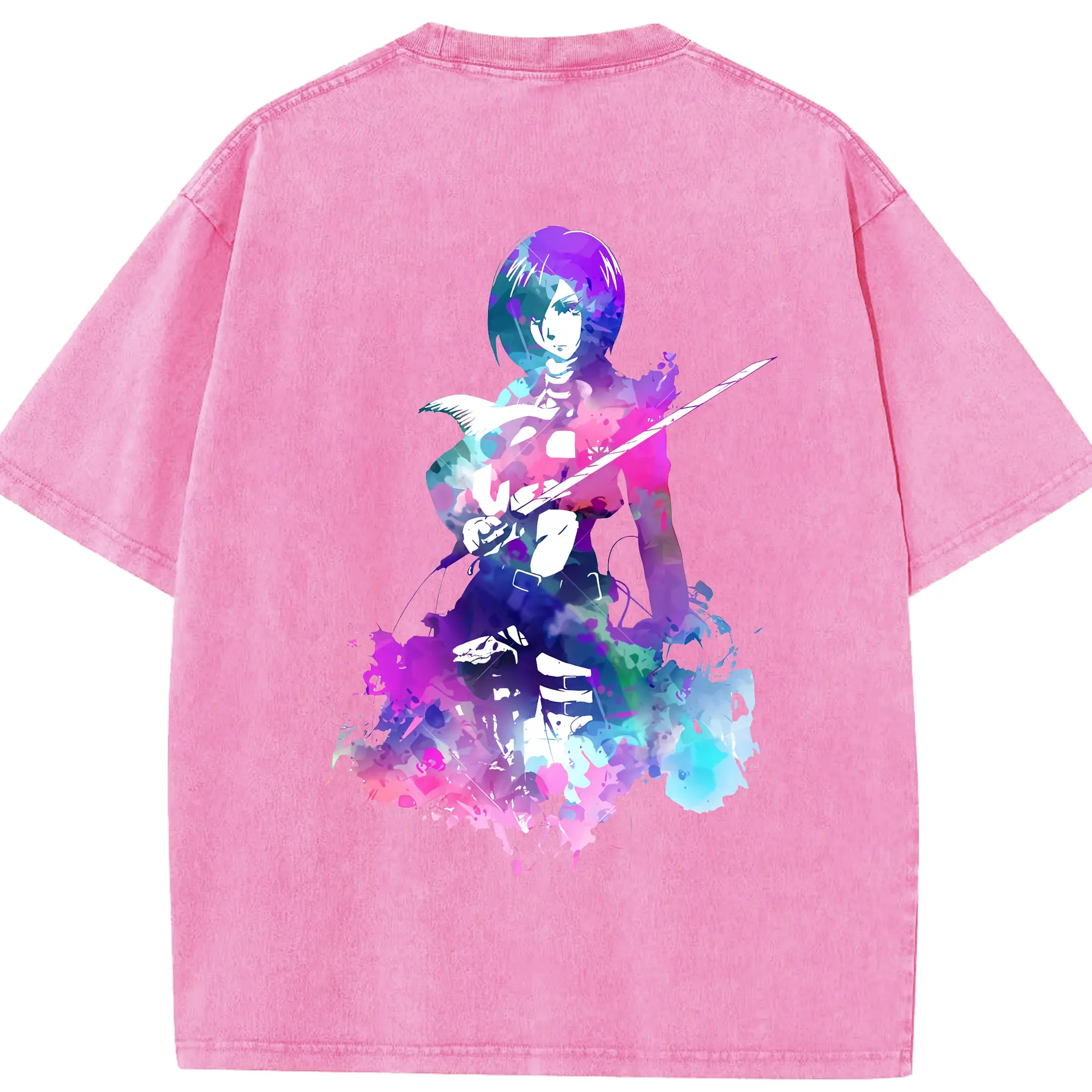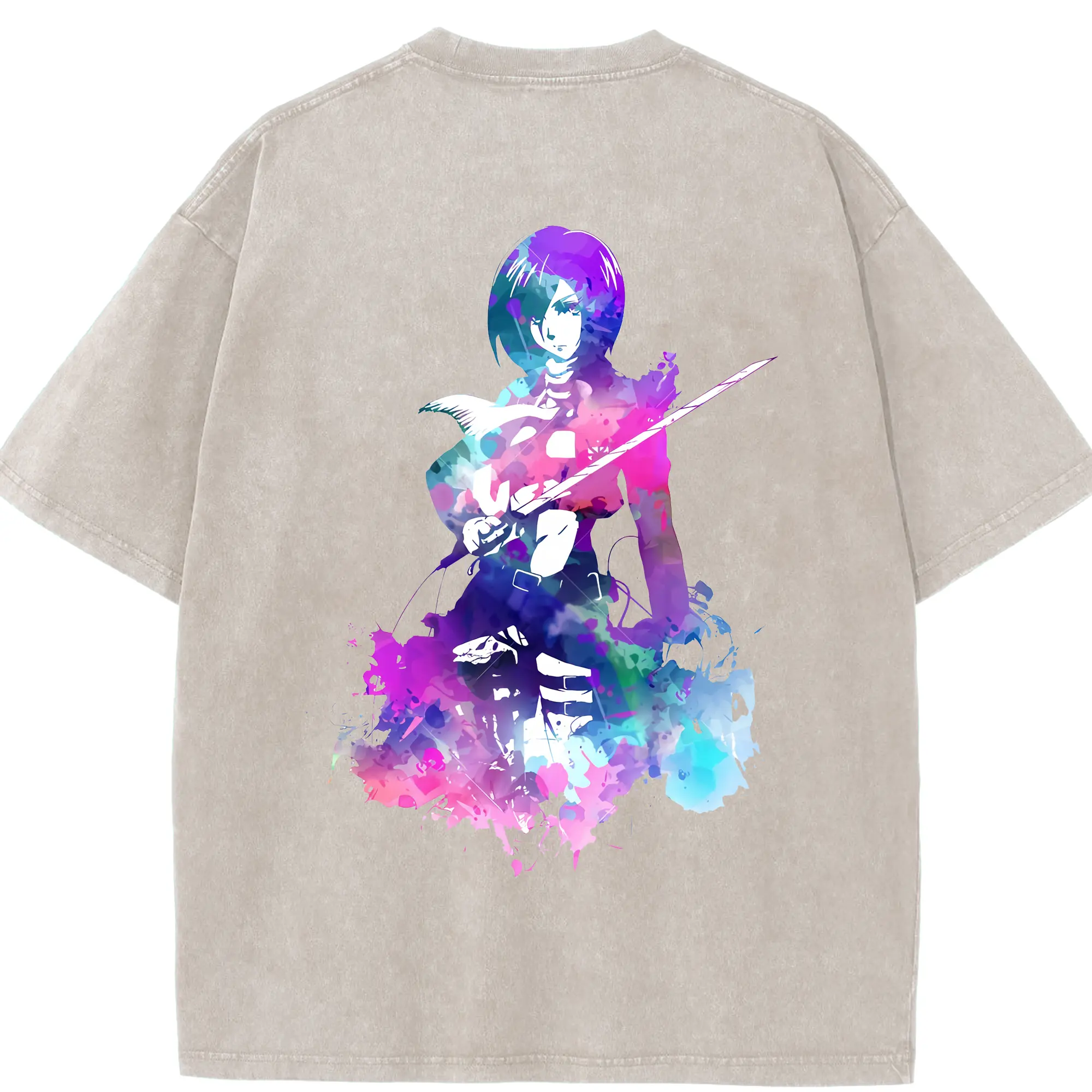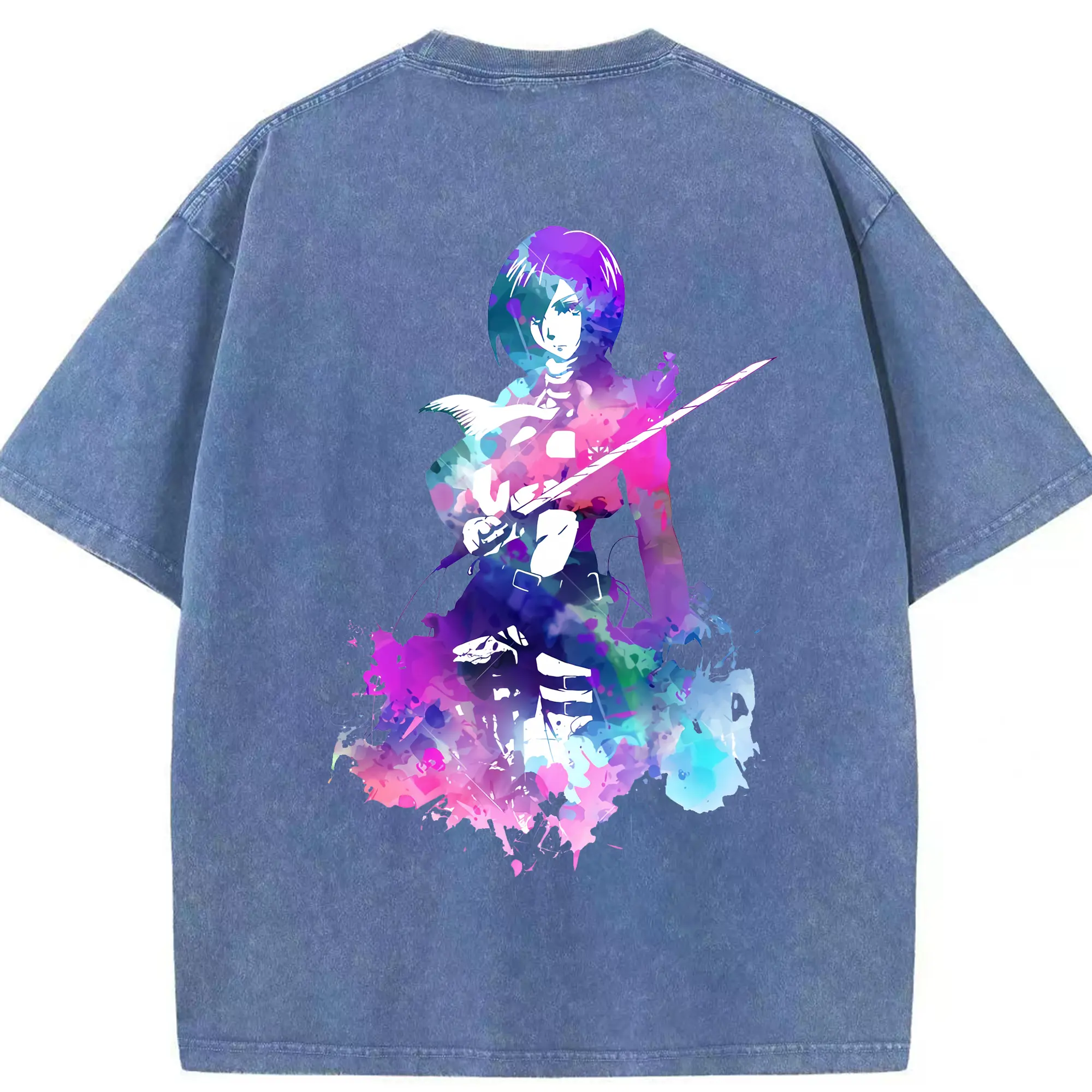 進撃の巨人 グッズ ミカサ・アッカーマン - 綿100% ヴィンテージ風 半袖Tシャツ ・ フロントプリント ・ 柔らか肌触り ・ 通気性 快適 ・ スポーツ カジュアル 外出用